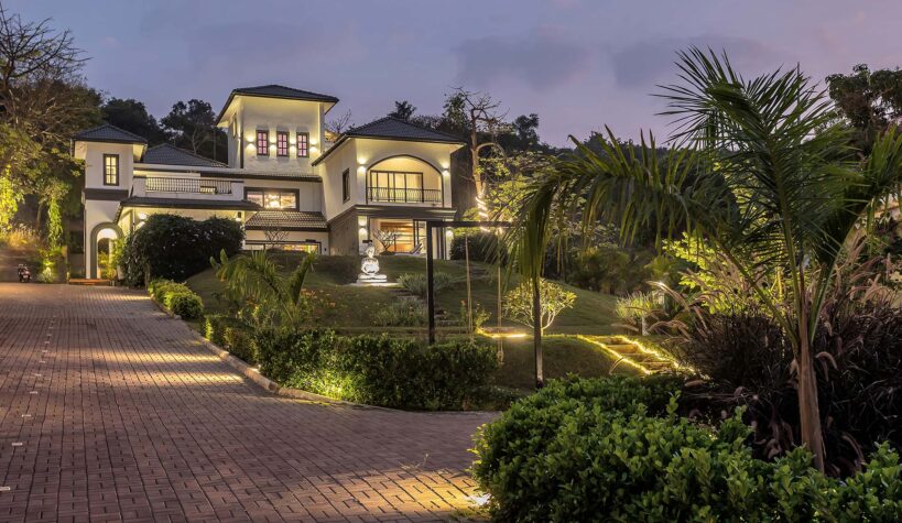 A blissful abode that comes with stunning hill views of Goa, Lavender Villa is perfect for those who want to explore popular attractions or bask in the tranquillity of Goa’s weather. Stepping inside, you’ll be greeted with rooms that have a unique infusion of rustic decor with modern amenities. The living room is an ideal sanctuary where one can enjoy in peace or jump straight into the pool with its direct access to the pool. The sprawling lawn that is spread over acres is ideal for those wanting to start their day with an active run or leisurely stroll. The idyllic setting of the villa makes it perfect for exploring the vibrant streets of Goa and shopping for various souvenirs. For those seeking solace indoors, the home theatre with a bar setup is the right place for you to enjoy timeless classics with popcorn. As the fun-filled day moves forward, one can relax in the spa and rejuvenate their senses. As the night unfurls the canvas of glistening stars, one can relish a glass of wine with their loved ones and enjoy a barbeque.