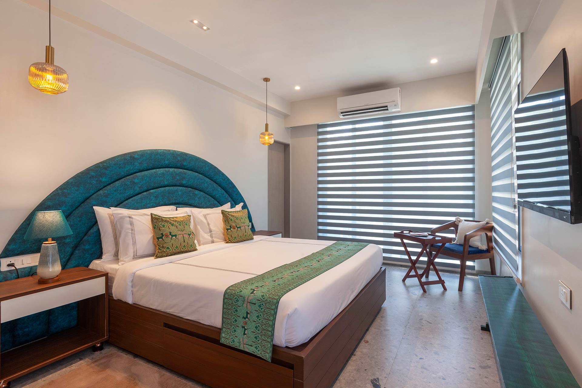 As well as letting in copious amounts of natural light, the glass slides lead out to a charming garden space with some seating for warm evenings. As evening falls, you can head to this garden space and have a scrumptious meal from the epic Anglo Indian Cafe & Bistro. A balmy evening by the pool with a chilled glass of wine paired with some mouth-watering Lime Chilli Prawns from the cafe would be a dream. If you’re a sky person, we can help you move this picnic up on the rooftop. Dine under the sunset hues while watching a panoramic view of Lonavala. After all, you need a magical spot to devour the irresistible culinary delights offered at this property.