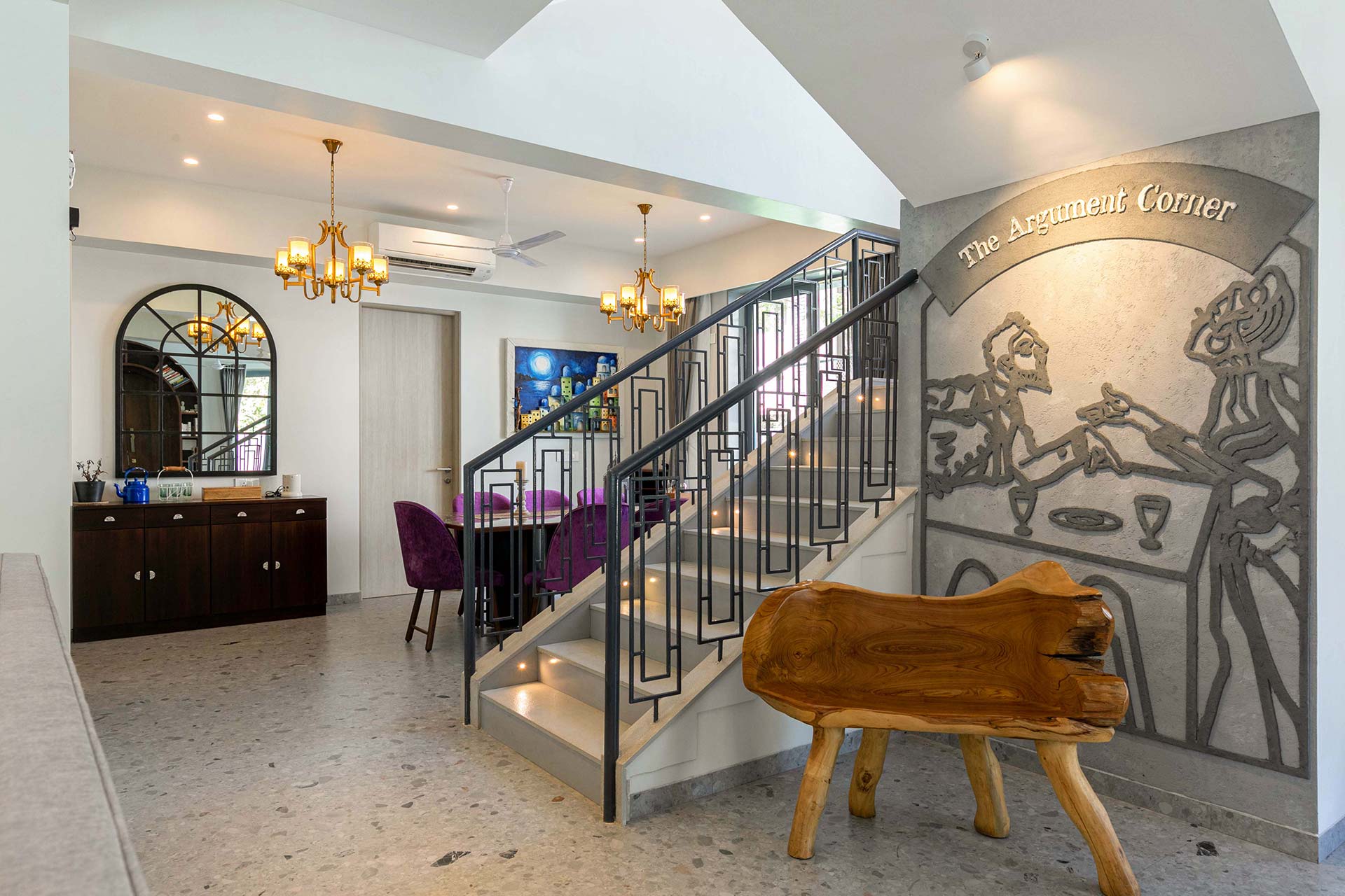 Setting the standards high, Le Arc combines serenity, wit and architectural elegance in a way that it’s the perfect, idyllic choice for anyone looking for a class-apart experience. With sweeping views of the hill-station of Lonavala, you find yourself in the home, gazing out at the horizon and letting your thoughts float away to the rhythm of the breeze flowing through the home. A witty piece of art – The Argument Corner is decisively set right by the entrance as you might have a difficult time choosing amongst the array of leisurely amenities starting right from the doorstep. Whether to watch your cinematic favourites as you lay on the cosy sofas, relish a delectable meal from the Anglo Indian Cafe & Bistro at the opulent 8-seater dining area or dive into the refreshing plunge pool that’s right by the living room – it’s going to be a tough choice, indeed! Each of the bedrooms either have direct access to the lawn or open up to a balcony with views and breeze that are no less than a whisper of solitude. After dark, when the sparkling moonlit sky lights upon the horizon, take the opportunity and let us set you an al fresco meal on the rooftop terrace.