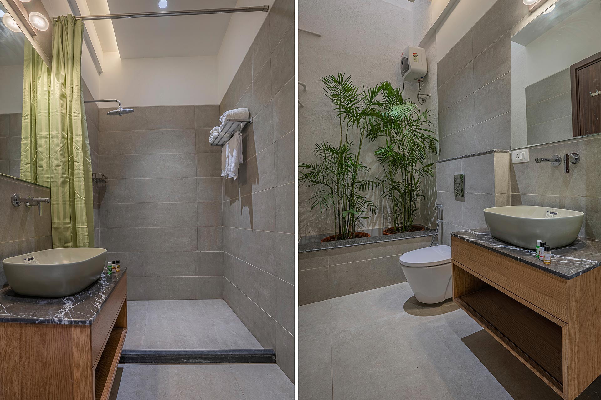 – All attached bathrooms have geysers, towels, and basic toiletries.