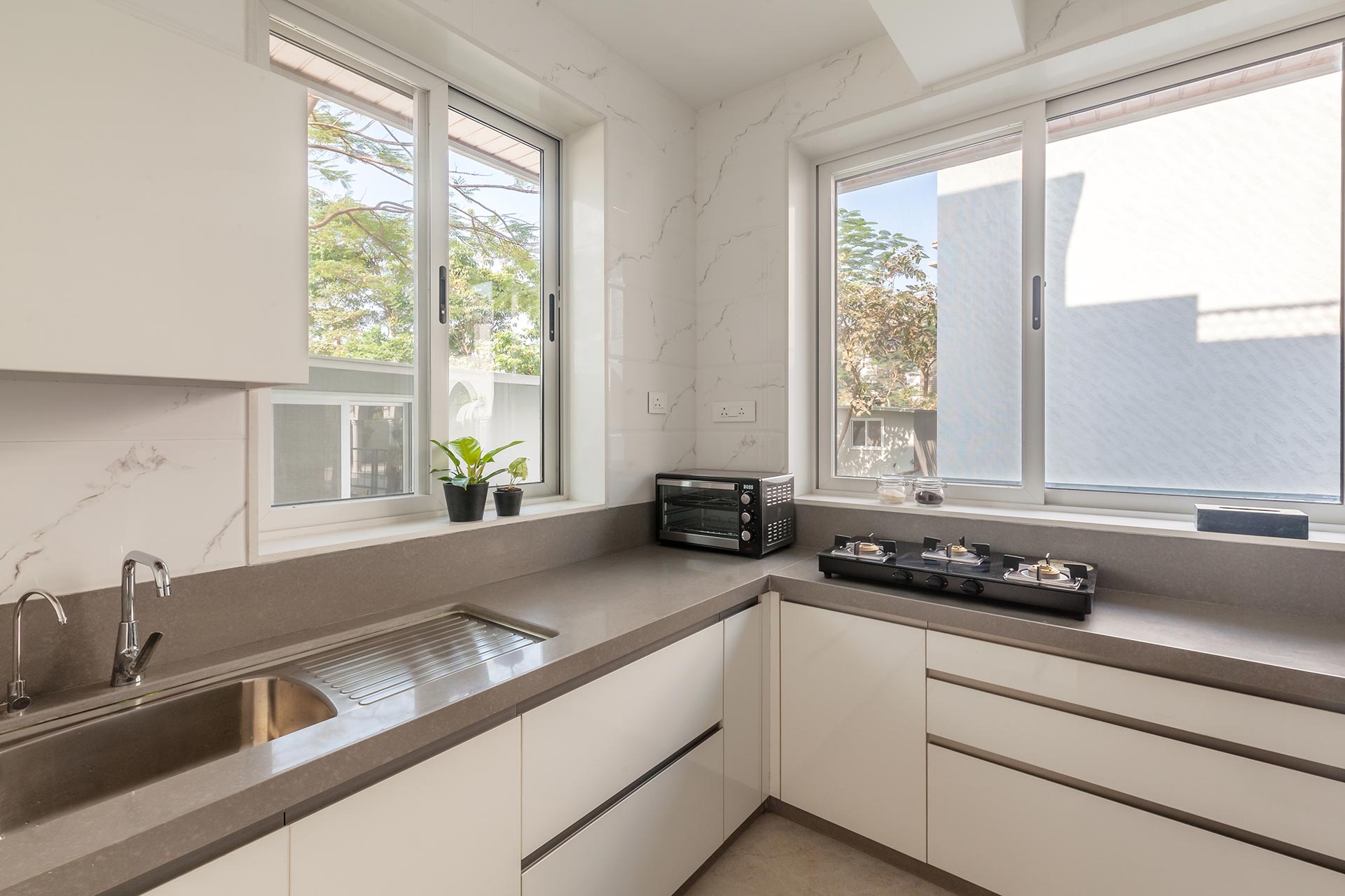 – It is equipped with a microwave, gas stove, oven, refrigerator, water purifier, toaster, induction plate and a mixer-grinder.