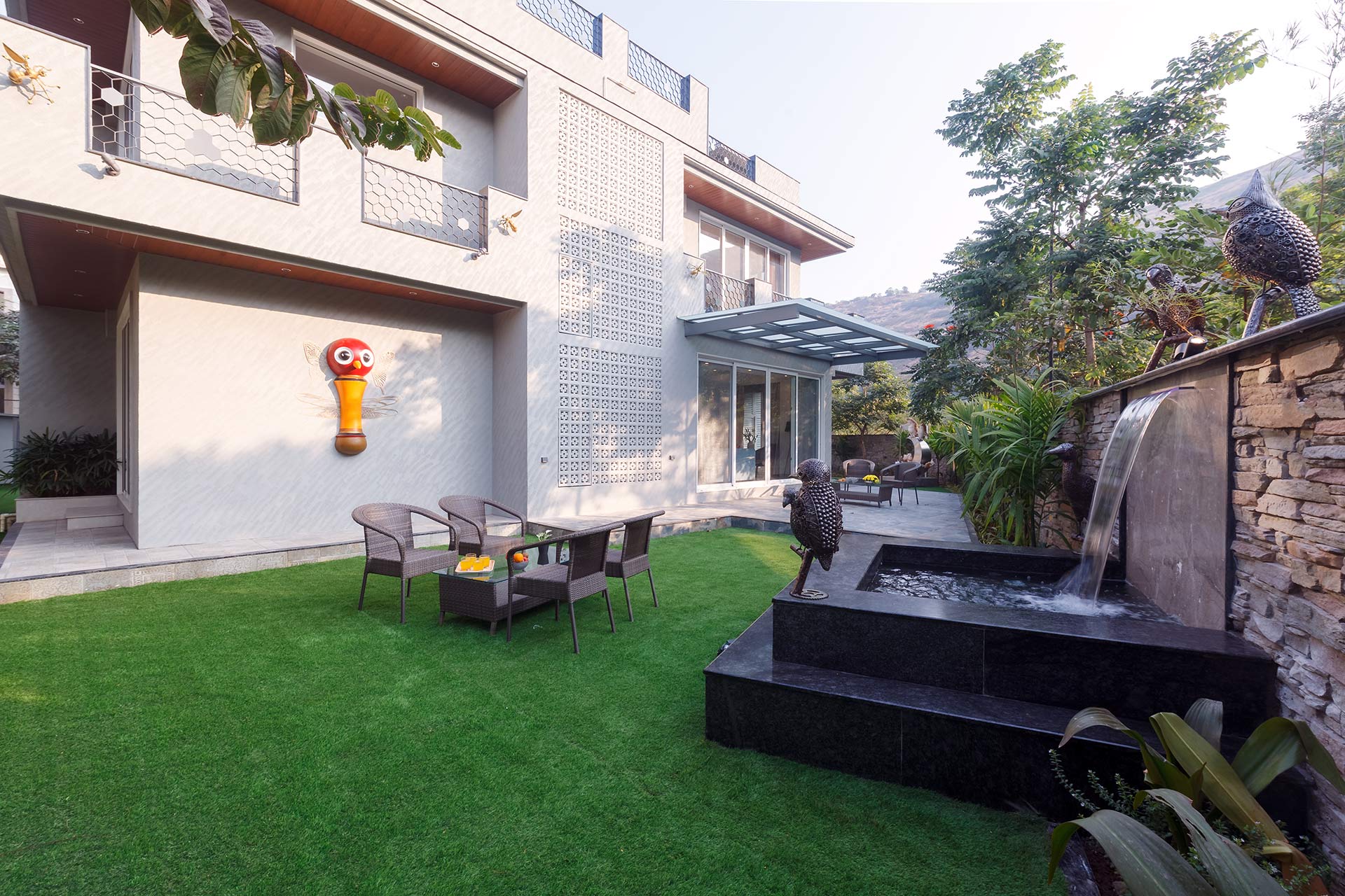 – On entering the huge facade of the property, the ‘Ullu De Patthe’ is an eclectic piece of art that is sure to catch your eye. This striking sculpture displays the parent owls seated on the edge of the crescent while their little owlets are attempting Yoga Asanas which is just so engrossing to look at.