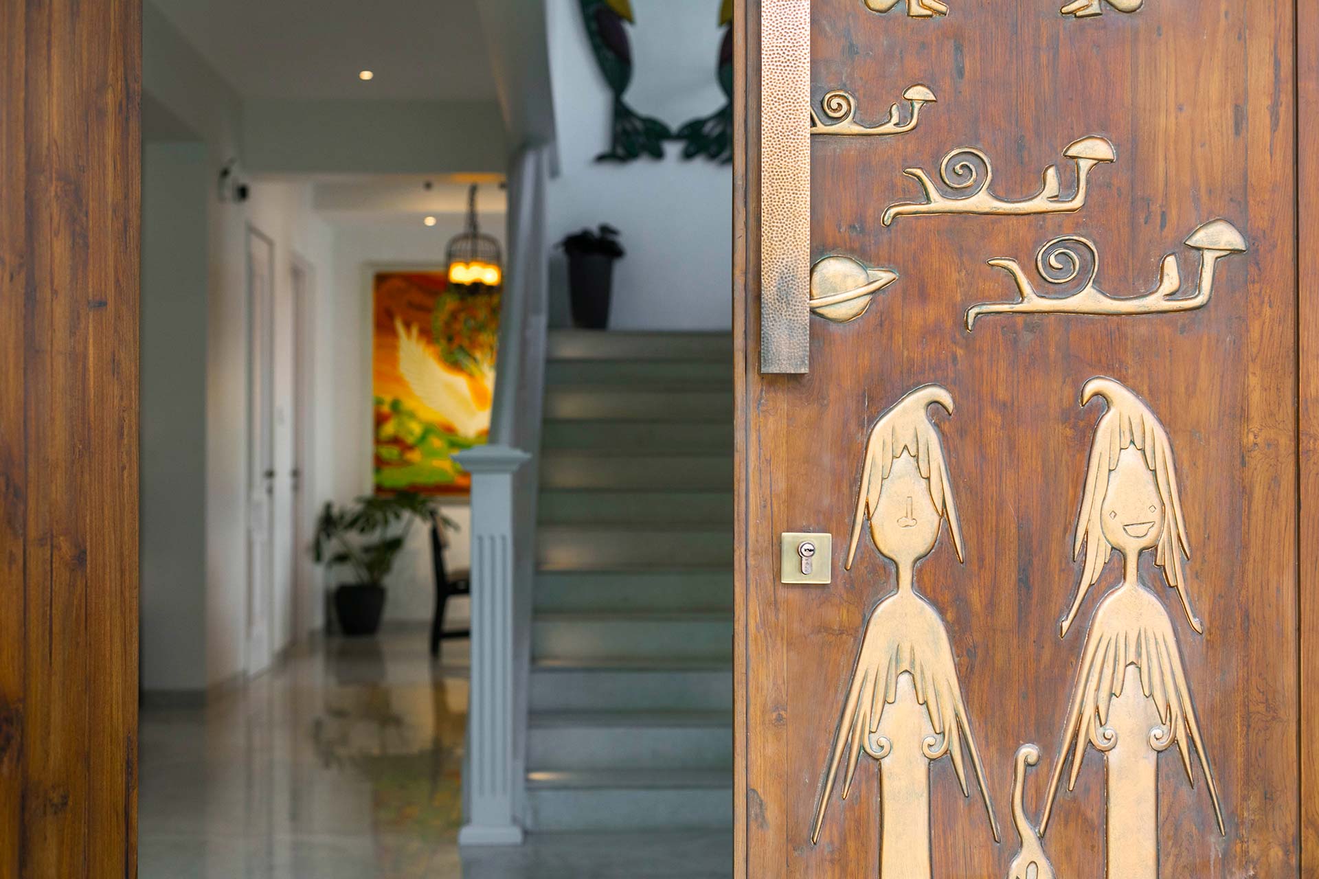 – Walk a little further and you’re at the door. And oh, the door! This thoughtfully designed door is something you wouldn’t be able to resist staring at for quite some time.