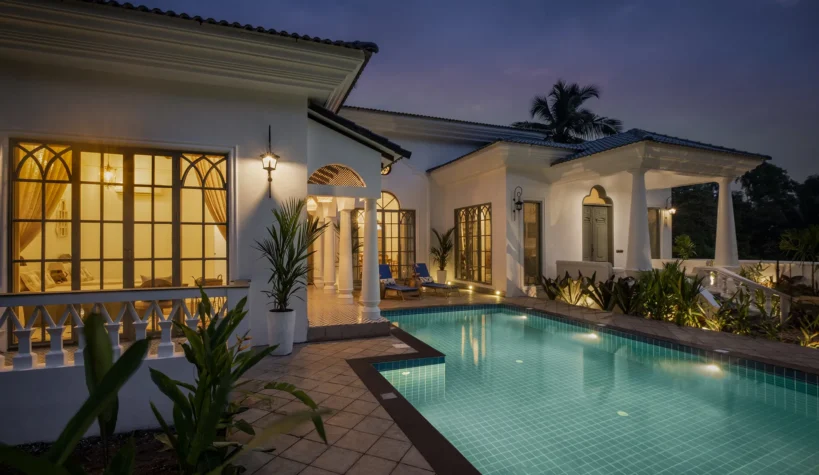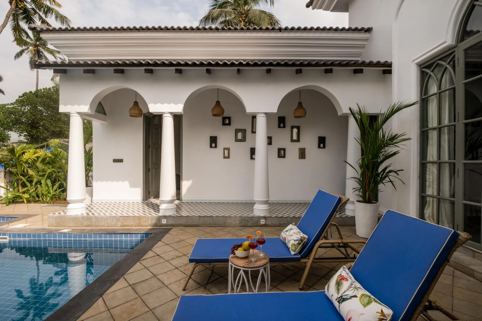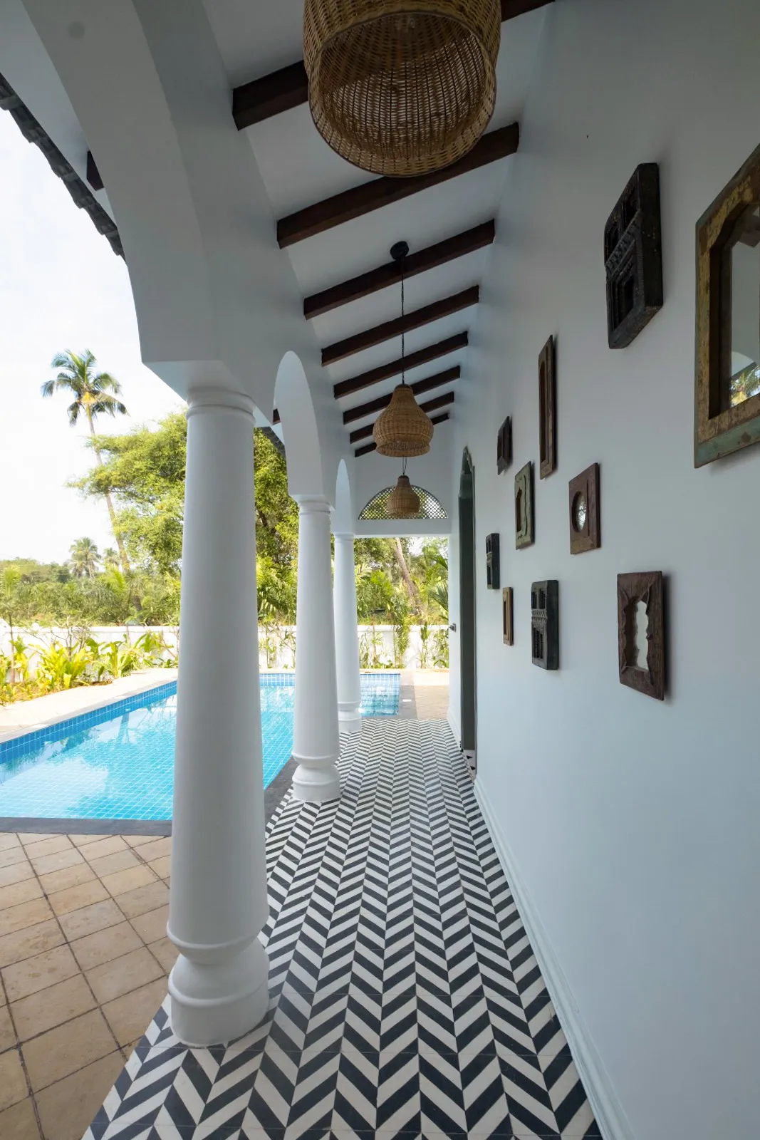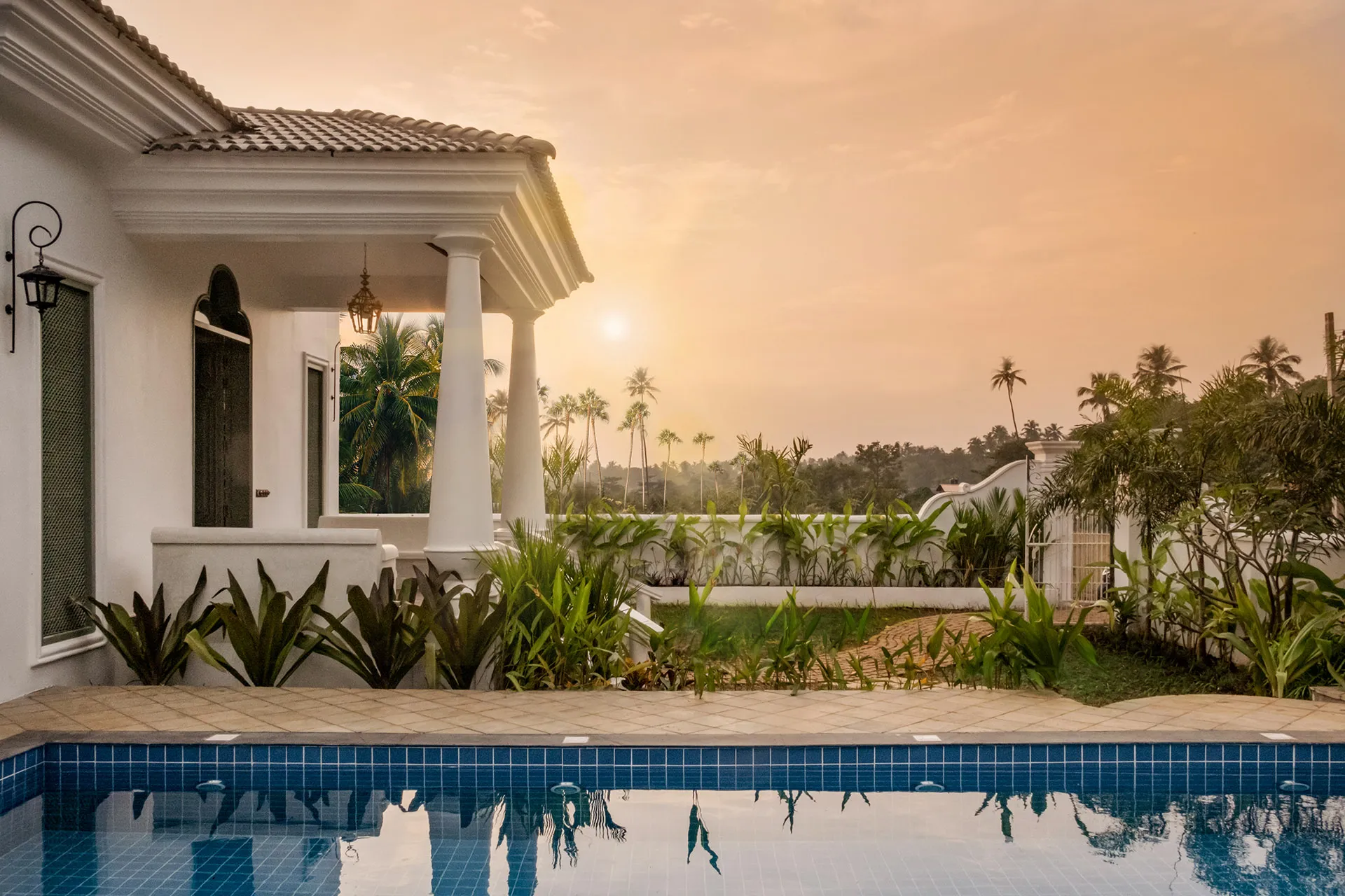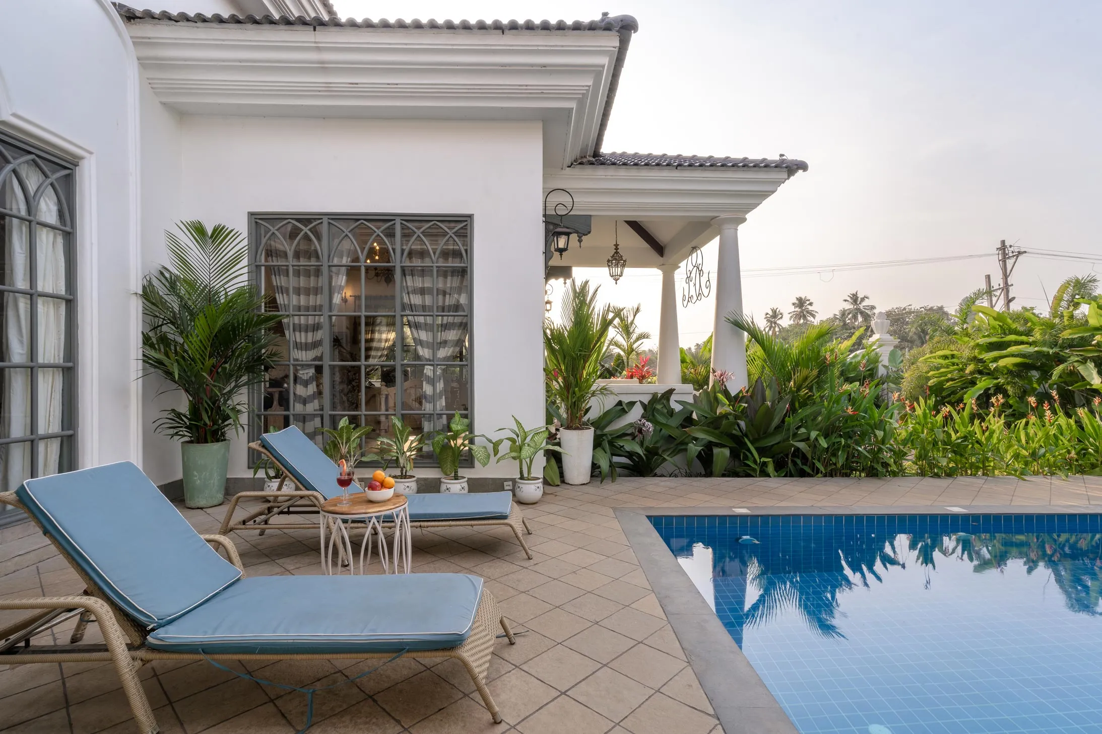 Step into your own private paradise as you enter the magnificent and luxurious Maison 9. Portuguese inspired architecture and vintage aesthetics blend harmoniously to offer a unique experience and bring the homeowner’s vision to life. A home built with love, every corner tells a unique story—from antiques collected from all over the world to traditional hand painted wallpapers and striking wooden carvings. With 6 spacious bedrooms, an opulent living and dining area, a delightful patio, lush lawns, and not one, but two serene private pools, Maison 9 is nestled near the serene Anjuna beach. Surrounded by picturesque paddy fields and offering awe-inspiring views, this residence is your perfect retreat, whether you seek pure relaxation or wish to host an intimate soiree with cherished ones. Anjuna itself is a vibrant tapestry, boasting local markets, chic eateries, a pulsating nightlife, and renowned beaches, catering to diverse tastes. Yet, should you prefer to revel in the villa’s allure, our dedicated Experiences team ensures an unforgettable stay. From exclusive restaurant pop-ups to delightful cocktail evenings, your desires become our curated experiences.