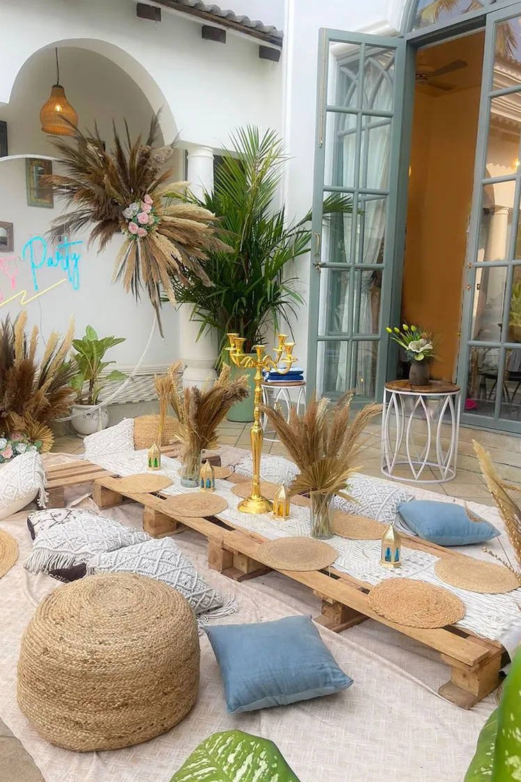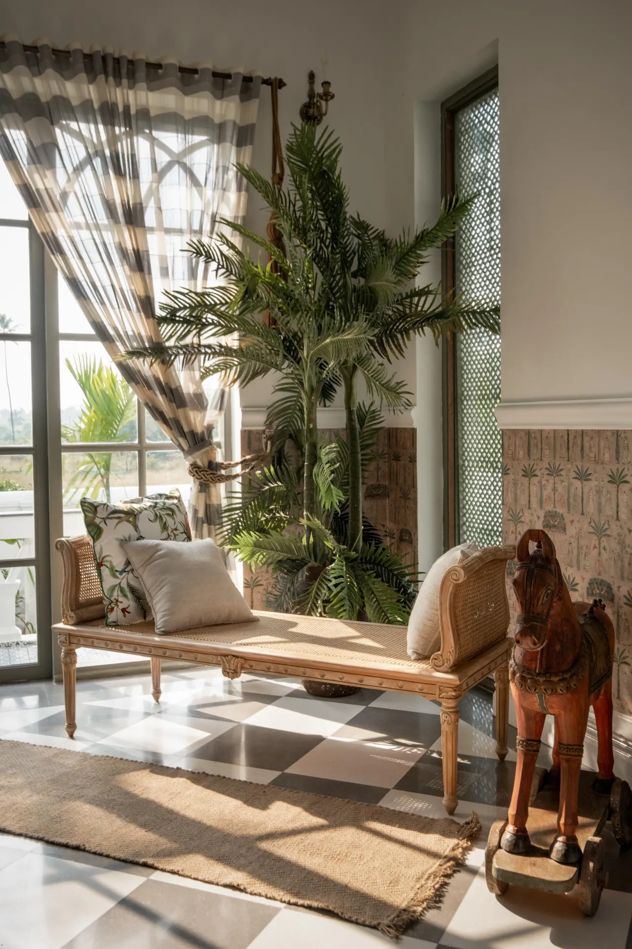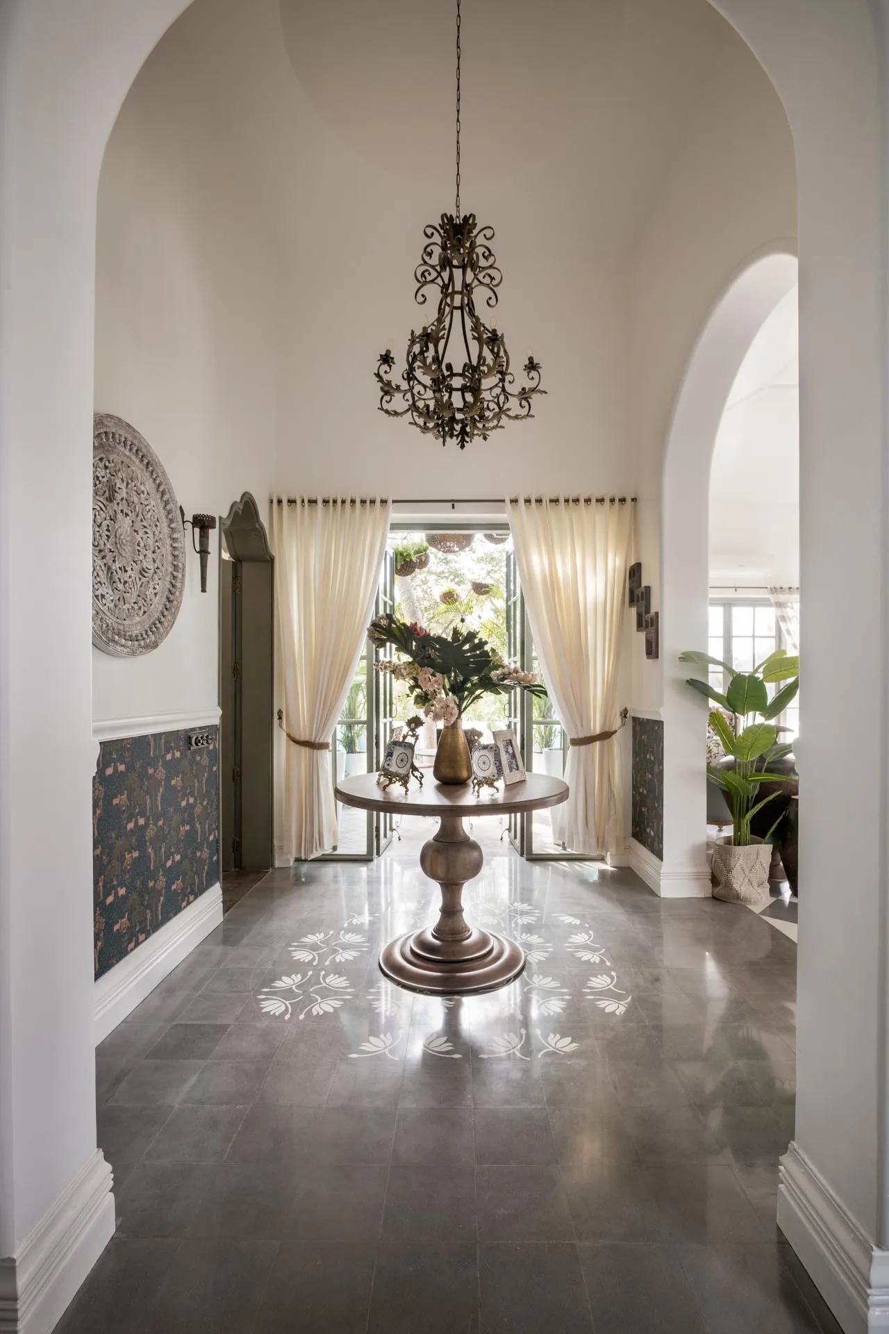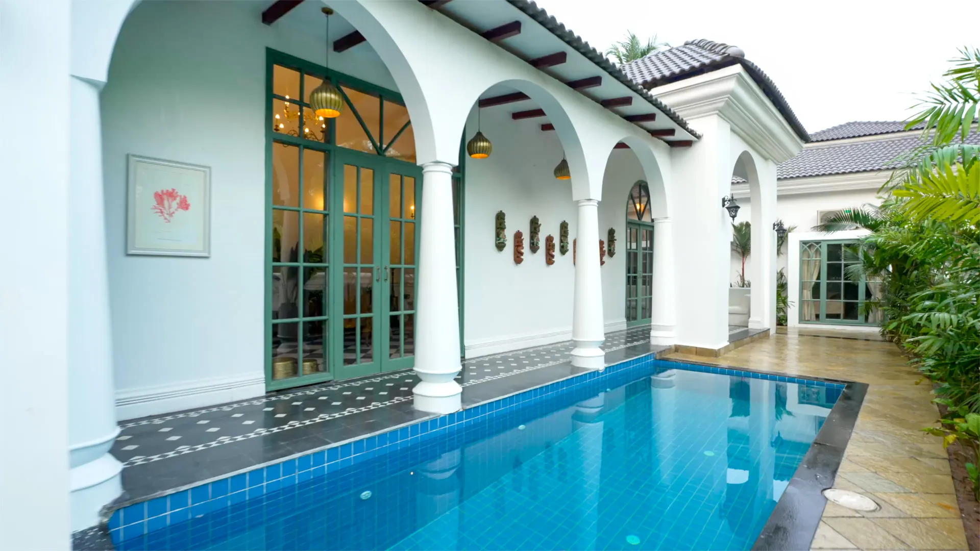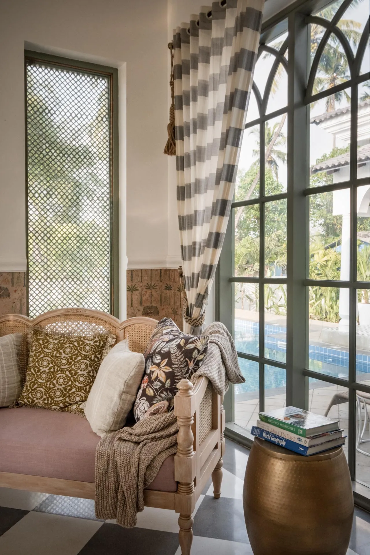 Step into your own private paradise as you enter the magnificent and luxurious Maison 9. Portuguese inspired architecture and vintage aesthetics blend harmoniously to offer a unique experience and bring the homeowner’s vision to life. A home built with love, every corner tells a unique story—from antiques collected from all over the world to traditional hand painted wallpapers and striking wooden carvings. With 6 spacious bedrooms, an opulent living and dining area, a delightful patio, lush lawns, and not one, but two serene private pools, Maison 9 is nestled near the serene Anjuna beach. Surrounded by picturesque paddy fields and offering awe-inspiring views, this residence is your perfect retreat, whether you seek pure relaxation or wish to host an intimate soiree with cherished ones. Anjuna itself is a vibrant tapestry, boasting local markets, chic eateries, a pulsating nightlife, and renowned beaches, catering to diverse tastes. Yet, should you prefer to revel in the villa’s allure, our dedicated Experiences team ensures an unforgettable stay. From exclusive restaurant pop-ups to delightful cocktail evenings, your desires become our curated experiences.
