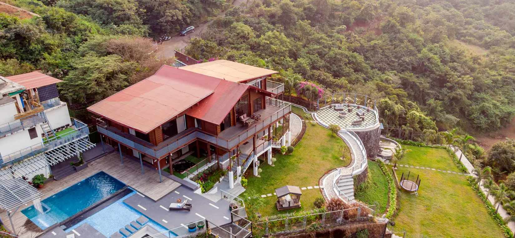 - Stroll through the expansive lawns, which feature a variety of trees like Mango, Guava, Banana and Spices.