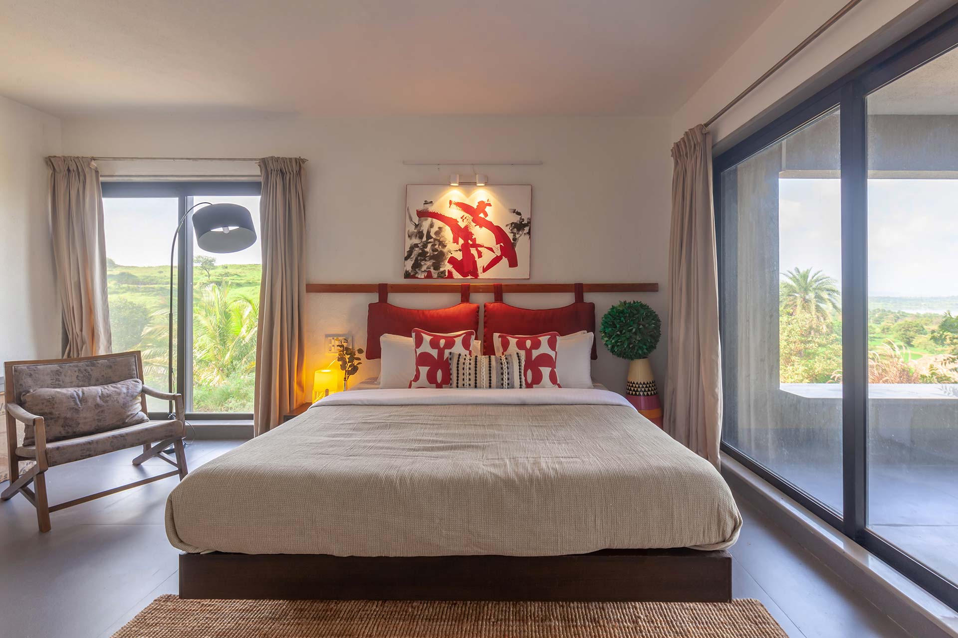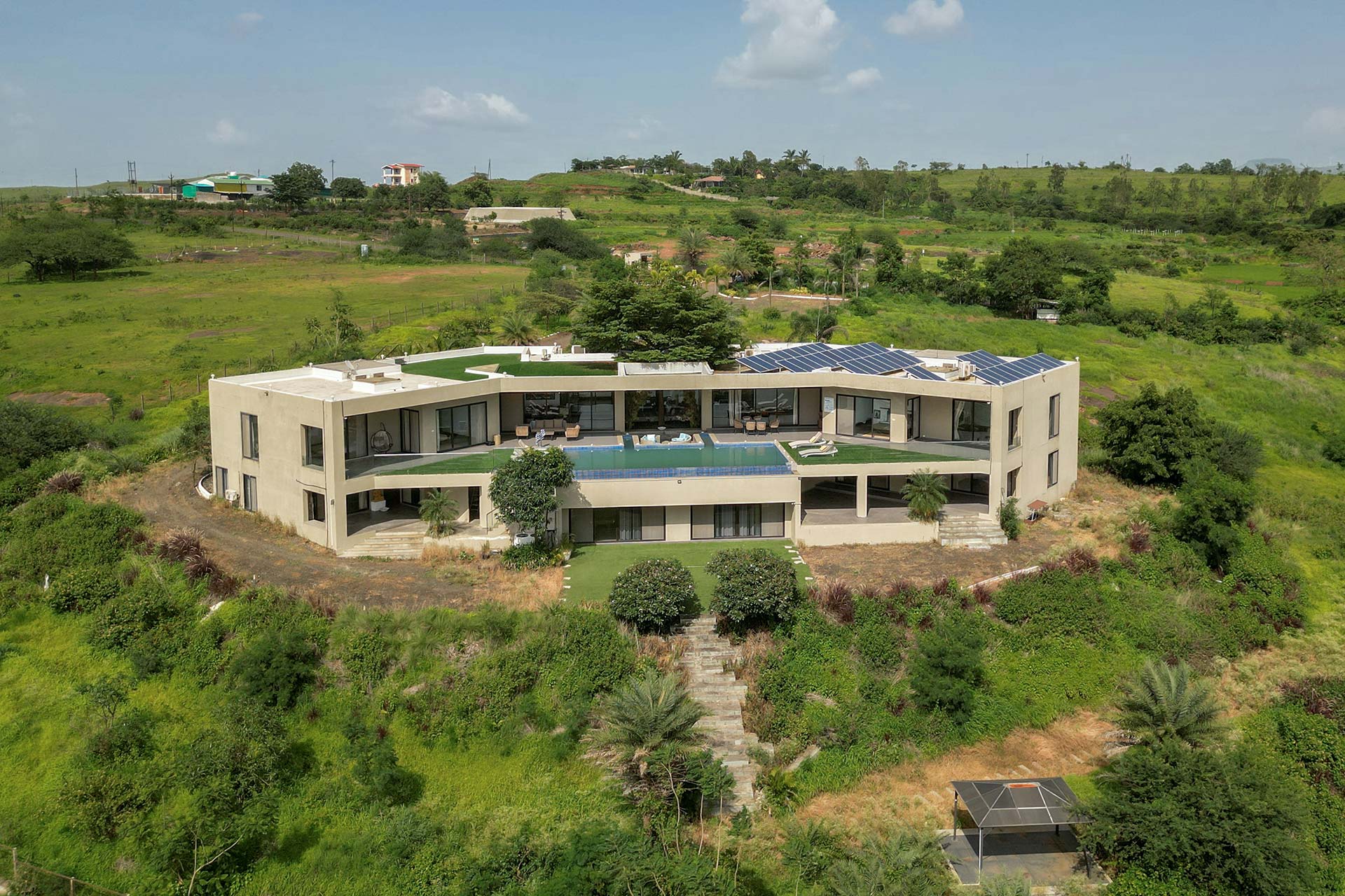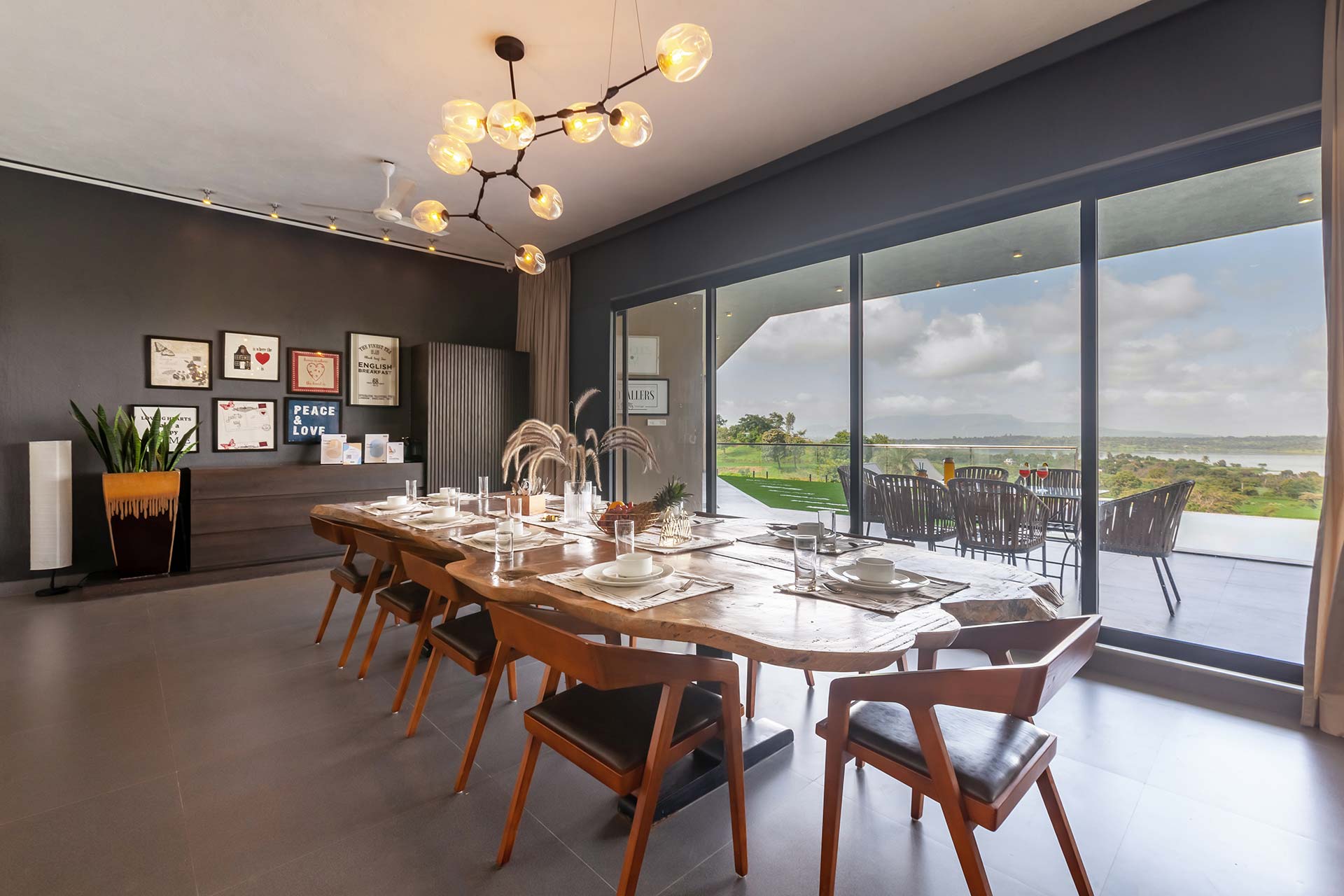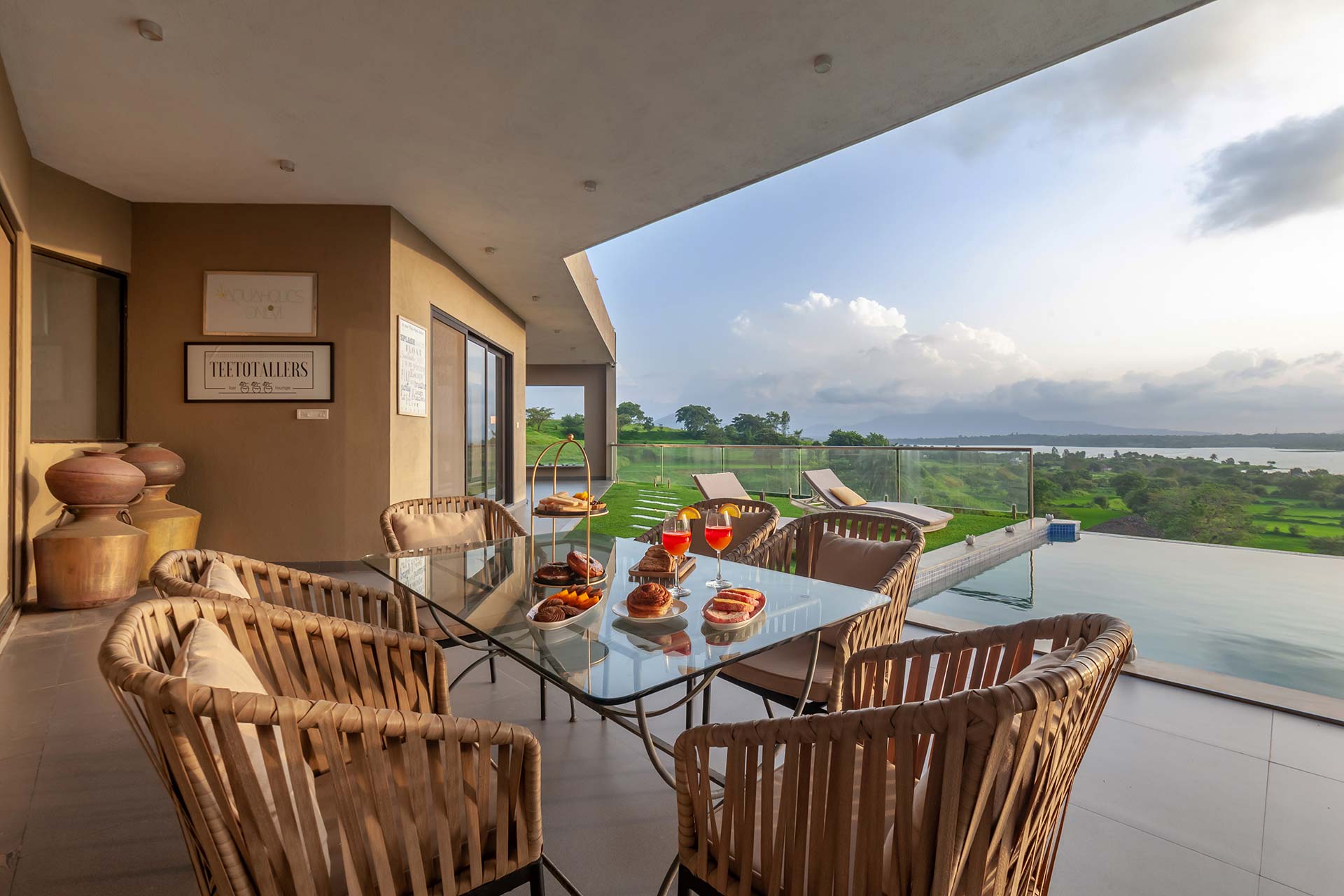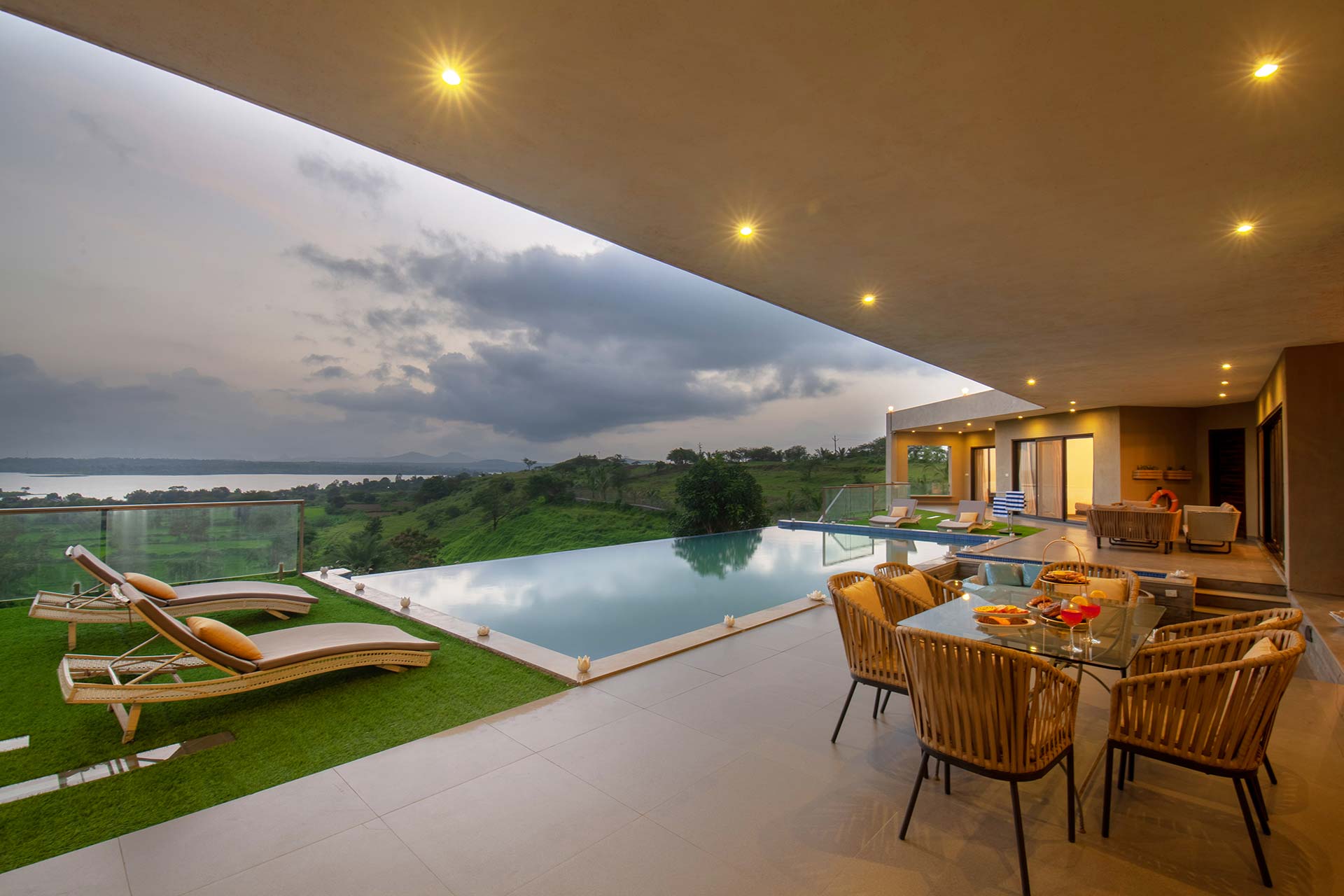 Luxe yet homely, modern yet earthy, and spacious yet cosy, this stunning holiday home in Nashik boasts every amenity imaginable, right in the palm of your hand. From the indoor courtyard on the premises of the property to the lush foliage outside, this home is nothing short of a paradise. The many sit-outs of the home are strategically placed; you can let your mind wander off to places unknown, as you embrace the unspoiled scenery. Disconnect from the otherworldly woes, enjoy a game of table tennis or carrom, spend quality time with your loved ones or simply savour a hot cup of coffee on the deck, whilst soaking the views of the lake – here, the simple pleasures in life take centre stage.