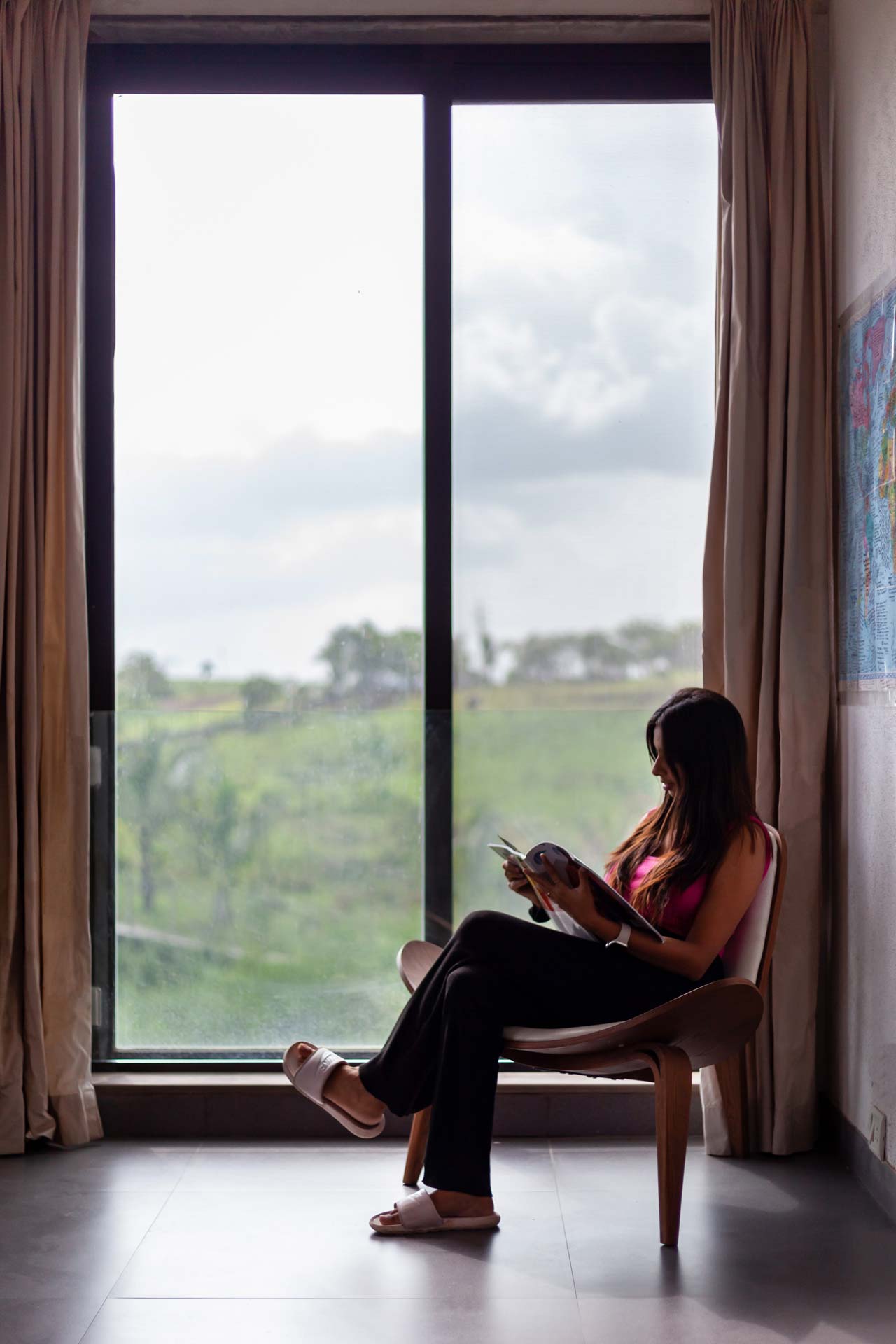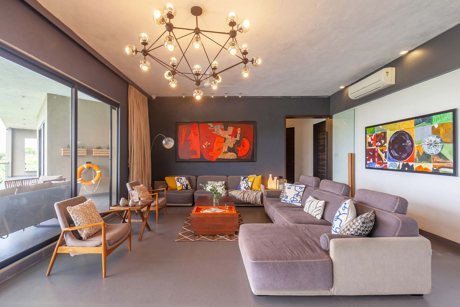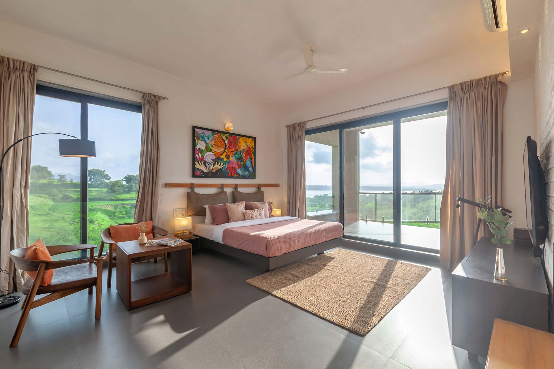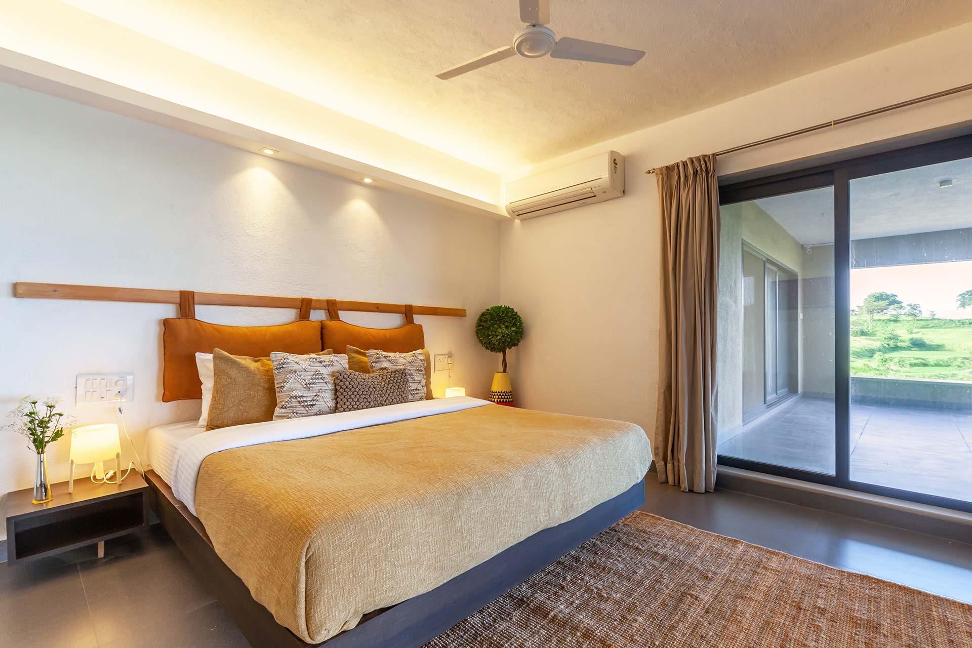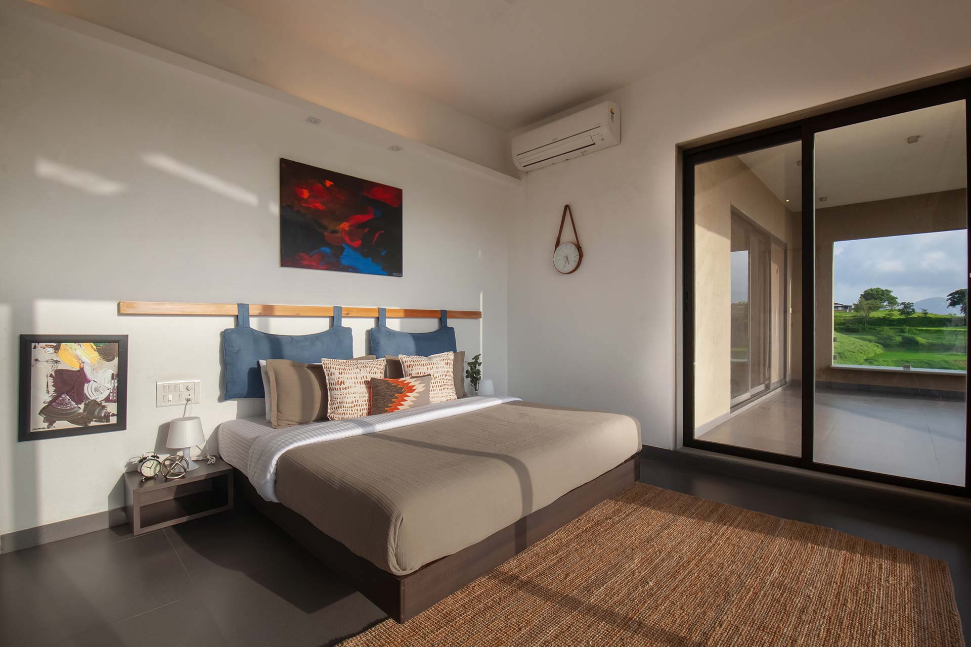 Luxe yet homely, modern yet earthy, and spacious yet cosy, this stunning holiday home in Nashik boasts every amenity imaginable, right in the palm of your hand. From the indoor courtyard on the premises of the property to the lush foliage outside, this home is nothing short of a paradise. The many sit-outs of the home are strategically placed; you can let your mind wander off to places unknown, as you embrace the unspoiled scenery. Disconnect from the otherworldly woes, enjoy a game of table tennis or carrom, spend quality time with your loved ones or simply savour a hot cup of coffee on the deck, whilst soaking the views of the lake – here, the simple pleasures in life take centre stage.