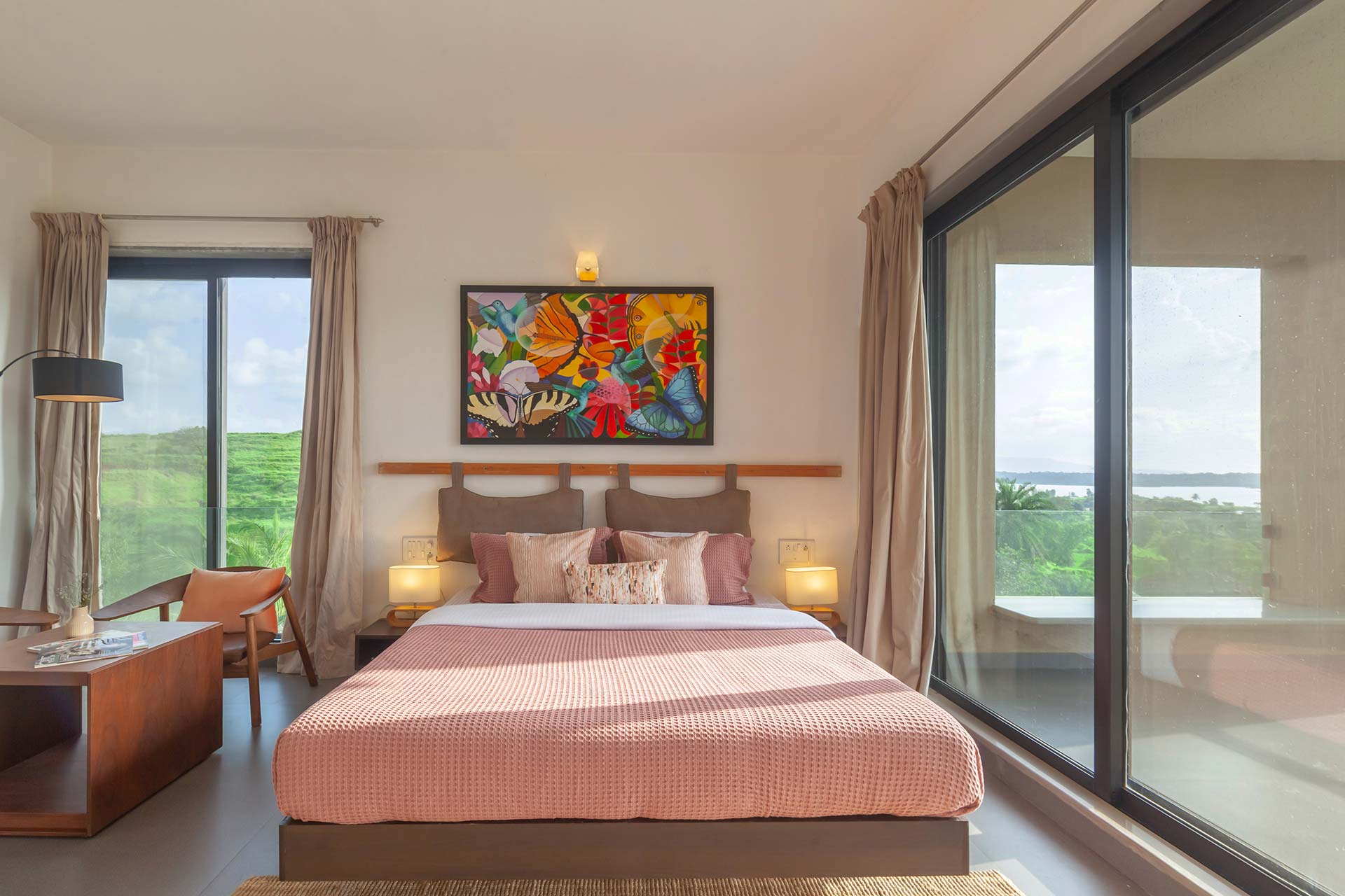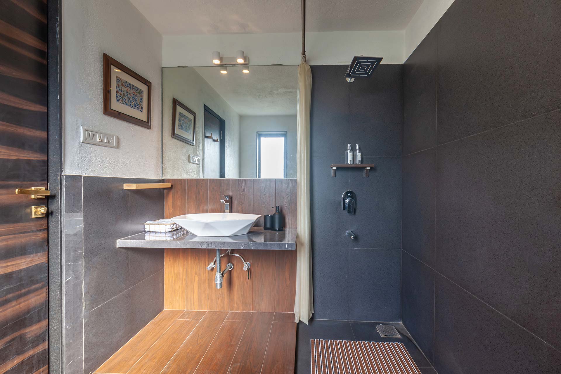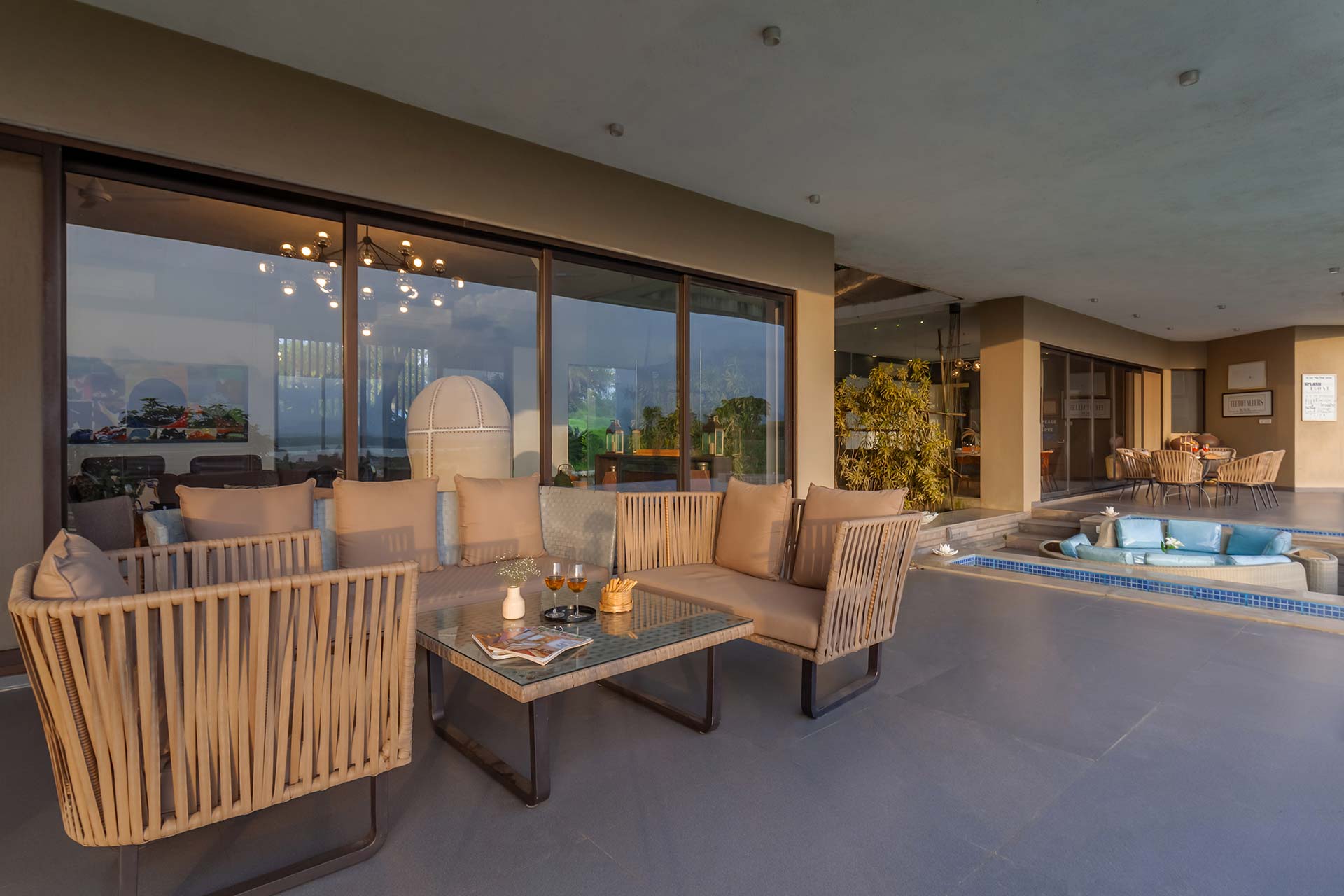 – Beautifully crafted indoor spaces, featuring a blend of contemporary furnishings and wooden accents