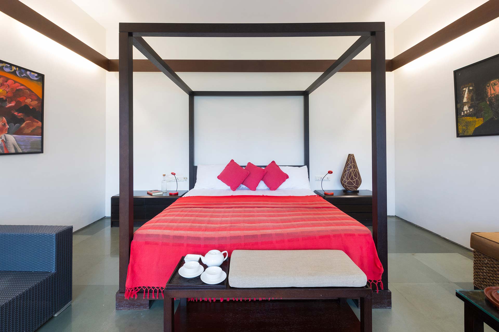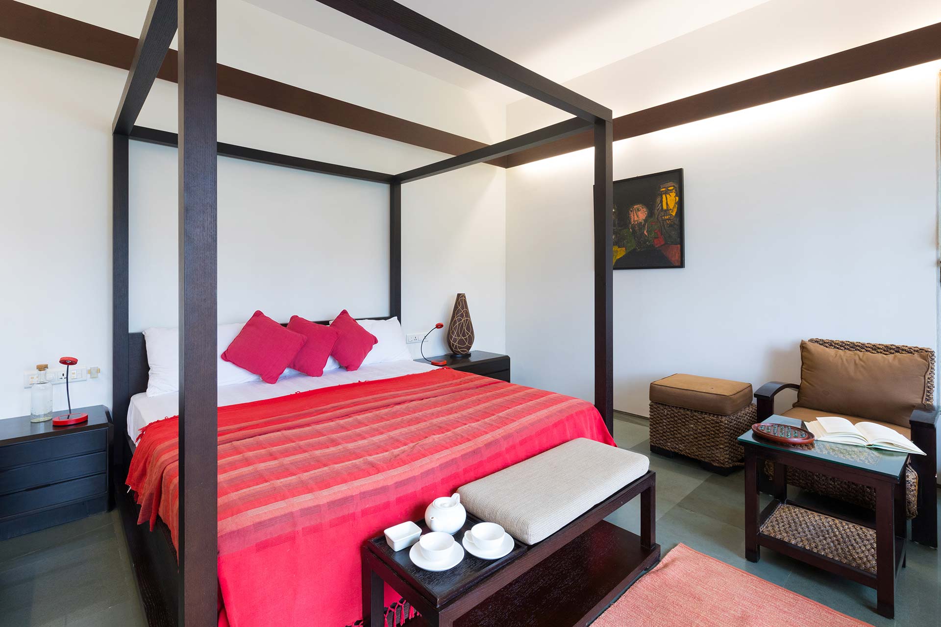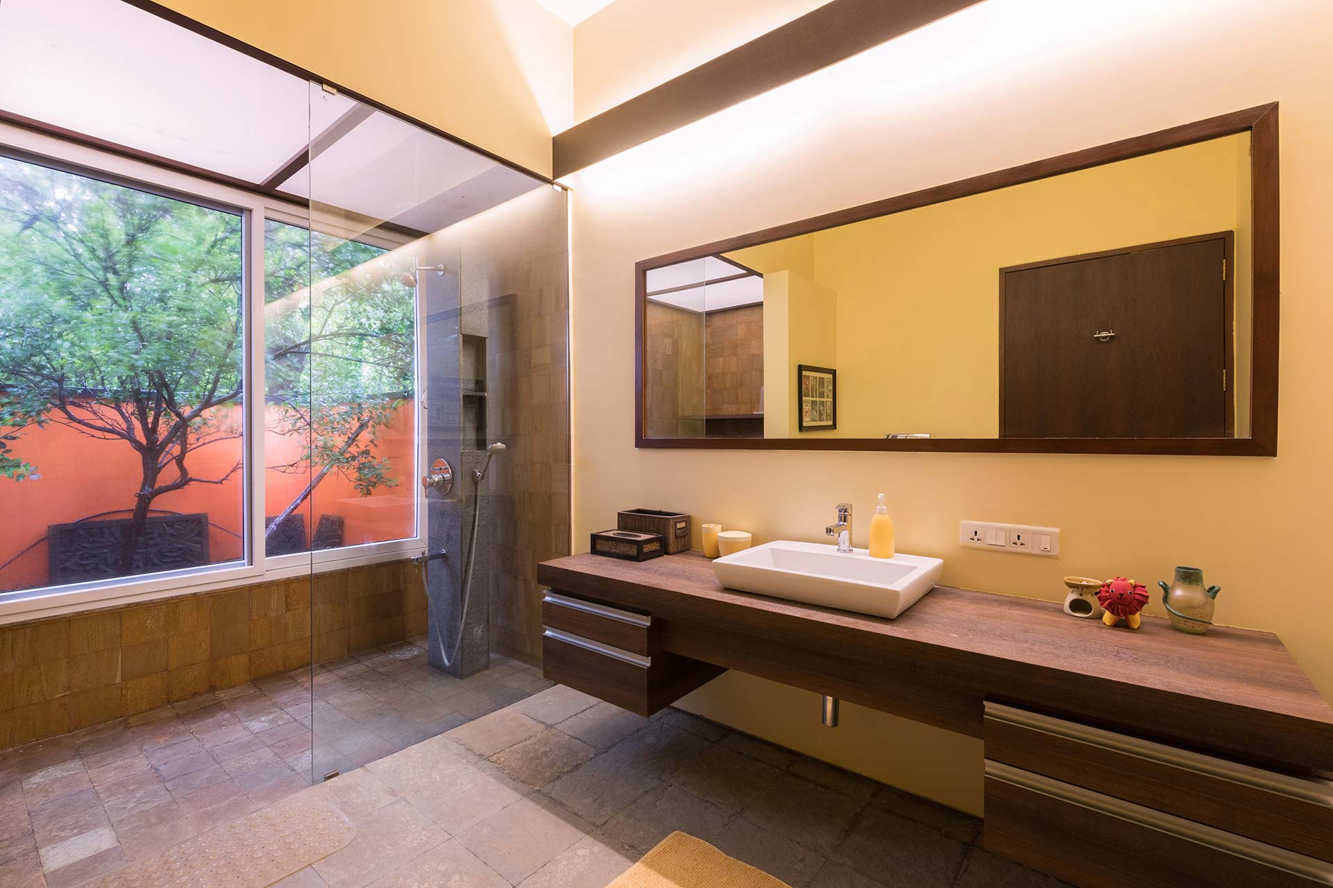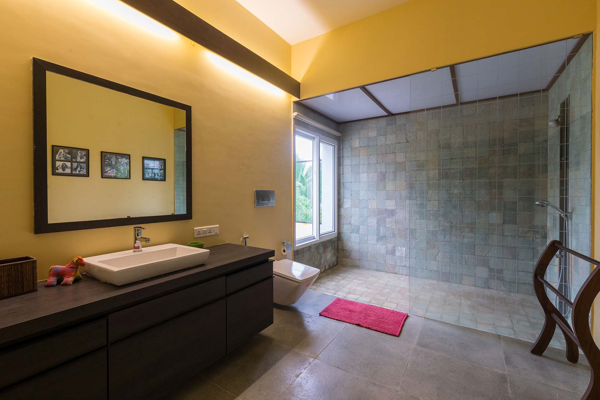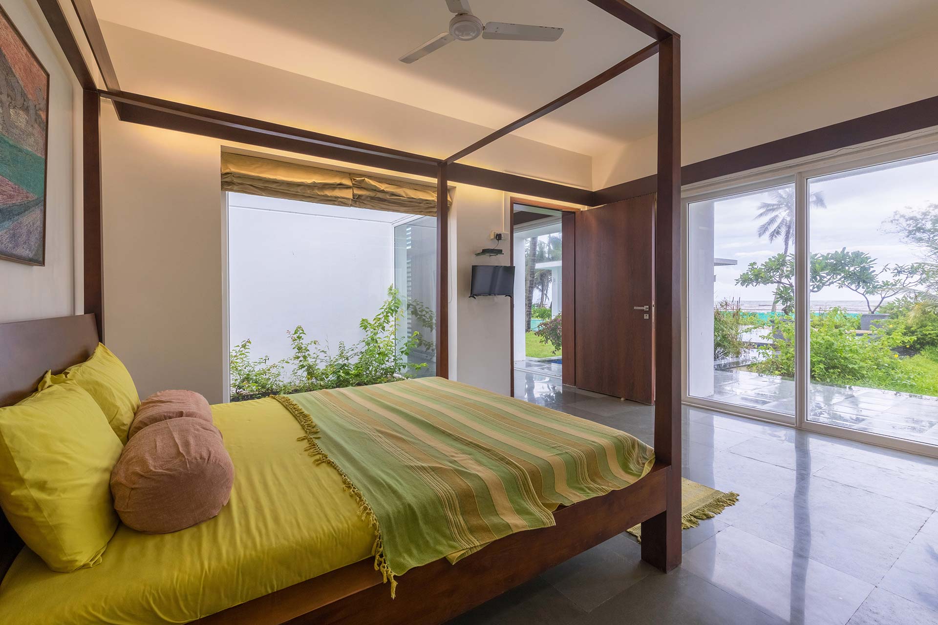– There are 4 bathrooms in the villa – 3 attached & 1 common bathroom.