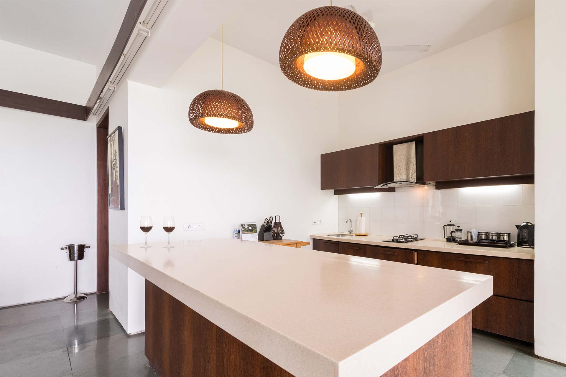 – It is equipped with a microwave, gas stove, oven, refrigerator, water dispenser, toaster, induction plate and a mixer-grinder.