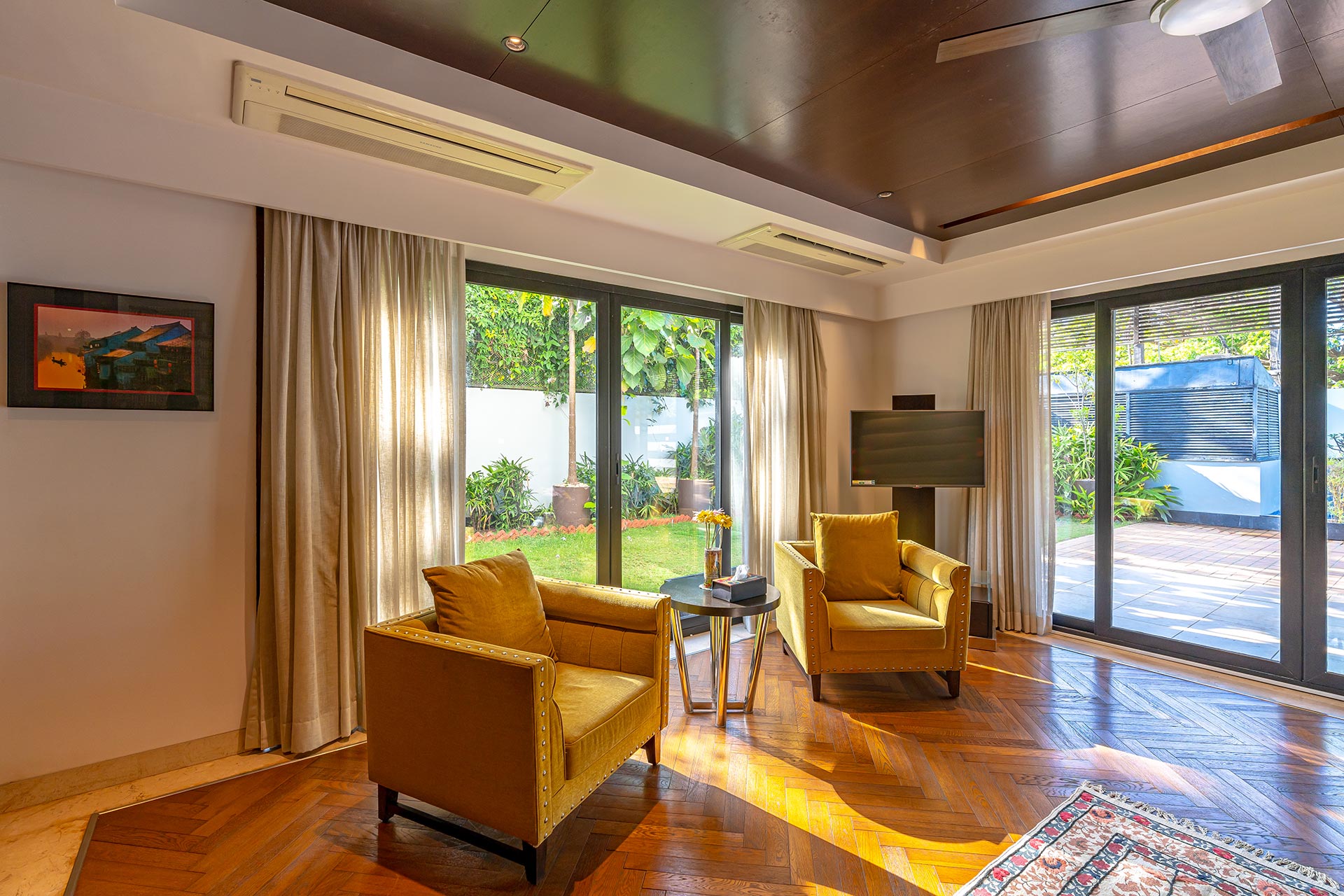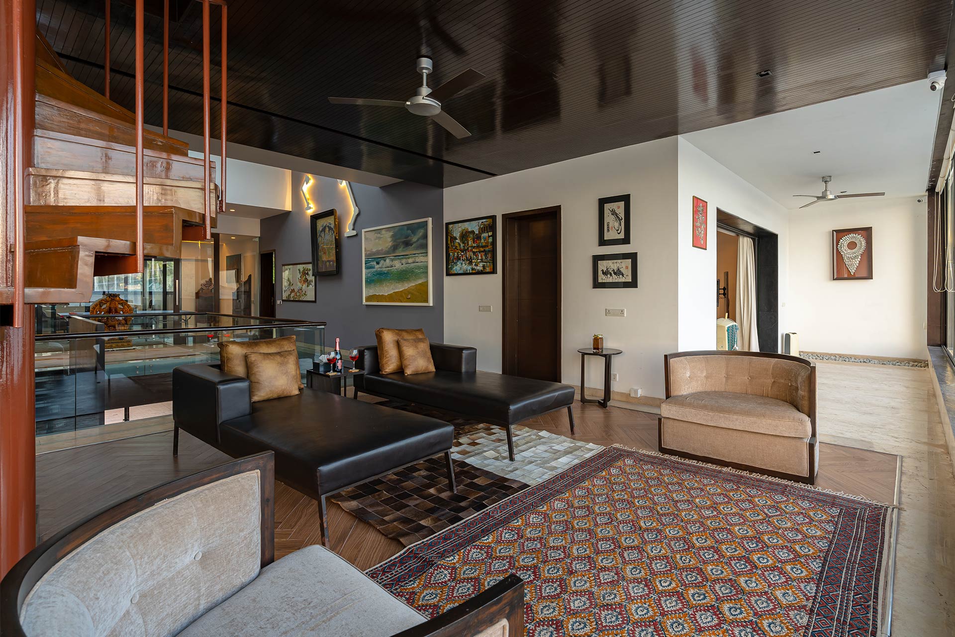Tucked away in the charming neighbourhood of Reis Magos, Oceanic Sunsets is an idyllic Goan retreat in every sense – a perfect balance of utmost seclusion, yet offering the convenience of accessibility. It poses as the perfect break from the urban clamour and is nowhere near the quintessential Goan holiday; it is calm, it is soothing and it is the most serene getaway, only 15-minute ride from Candolim Beach. This lavish holiday home is a seamless melange of all luxuries imaginable – a private sea-facing infinity pool, a manicured garden and a curated collection of indoor games – only to name a few. It boasts a melange of sprawling indoor spaces and modern conveniences, making it perfect for spending quality time with your loved ones.