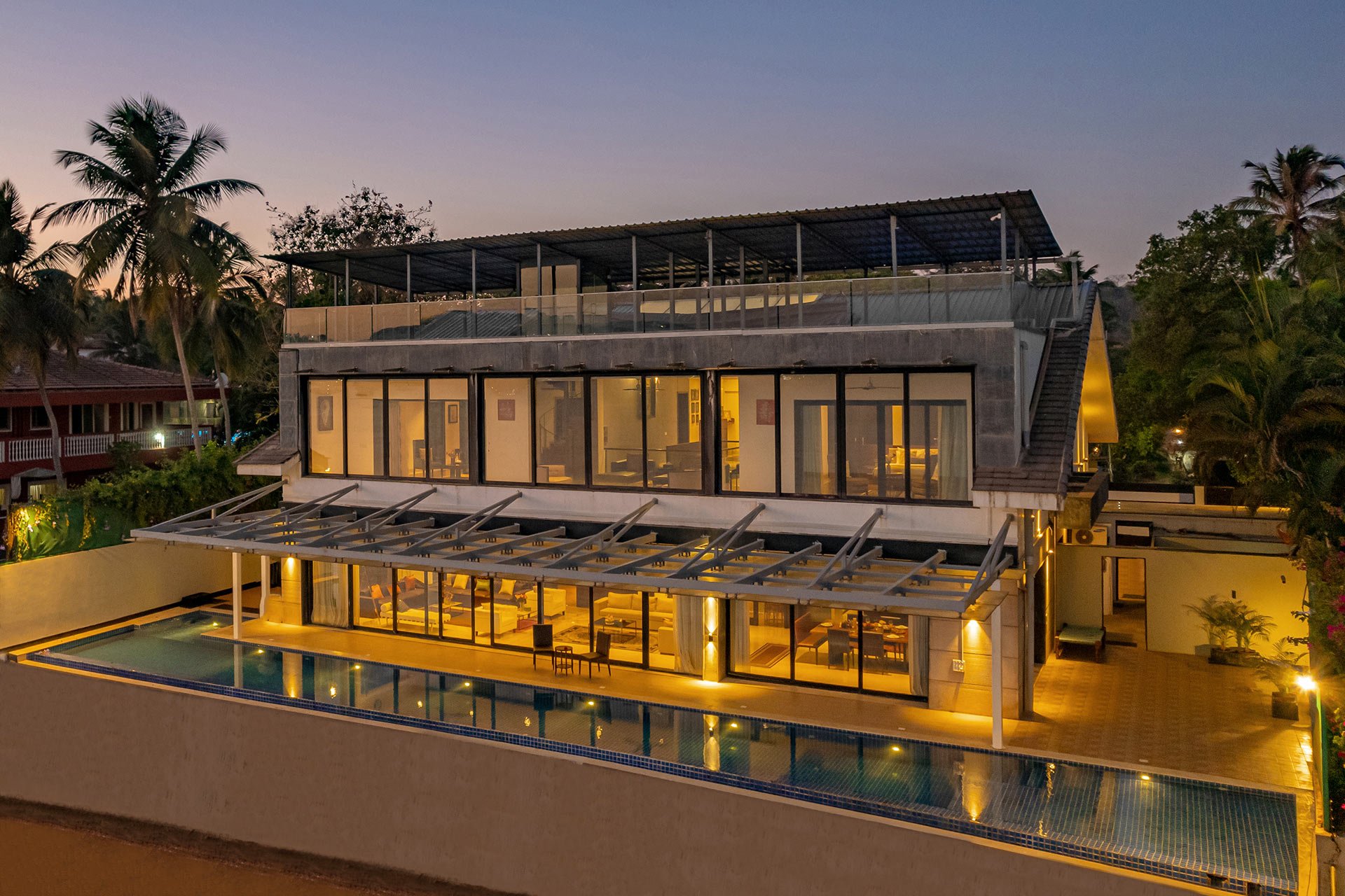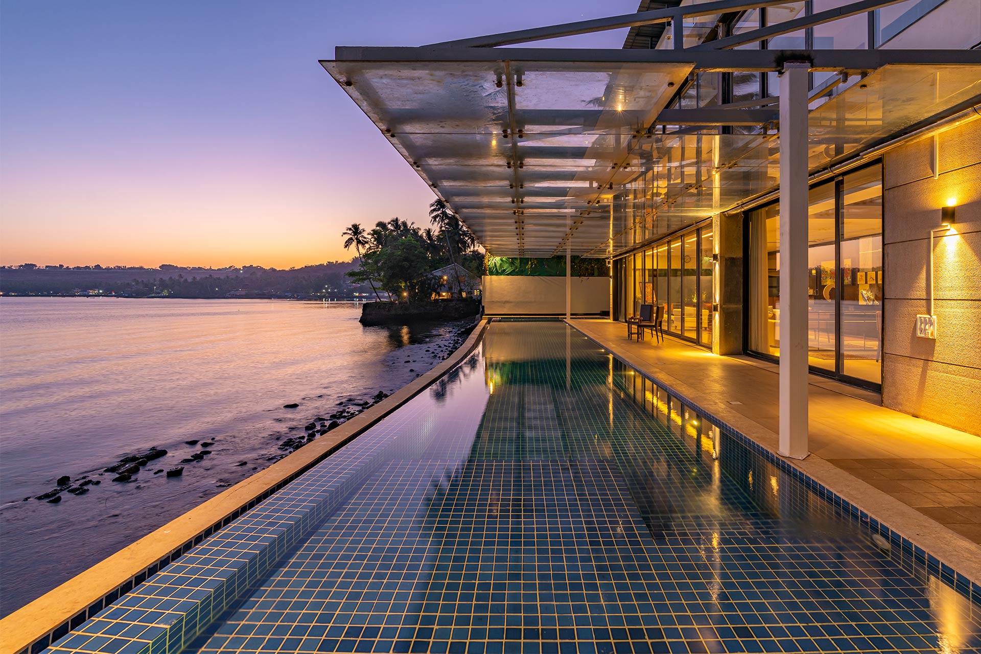 Facing the serene Mandovi River, Oceanic Sunsets is the definition of a typical, laidback Goan getaway. Promising to be a blissful getaway engulfed in endless serenity and lush foliage. Days here begin with a leisurely stroll in the gardens. The entire property is facing the river, ensuring absolutely stunning views of the surrounding scenery. Bask in the morning sun and relax on the loungers. Gather your loved ones and play indoor games like cards, table tennis and ludo. The many nooks in the property make for a perfect hangout spot. Reserve the evenings for a relaxing dip in the private infinity pool and soak in the stunning sunsets of Goa. Devour a delicious barbecue spread. Go home relaxed, rejuvenated and with a bag of memories.