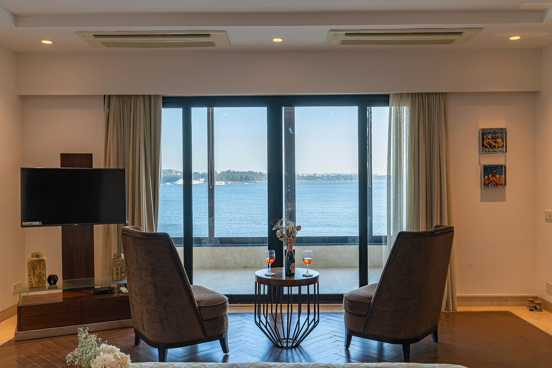 – Splendid panoramic views of the pristine Mandovi River and the clear skies