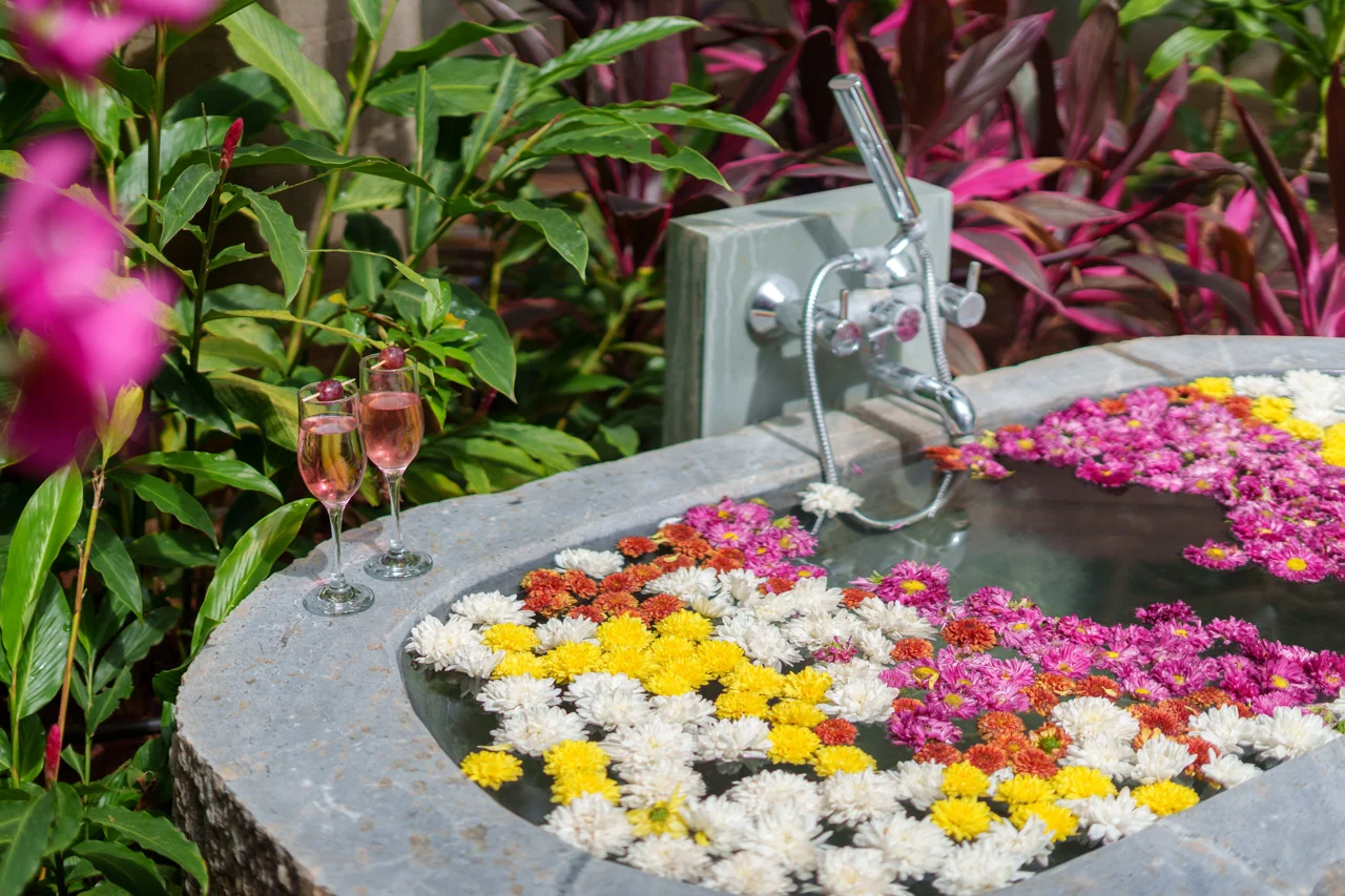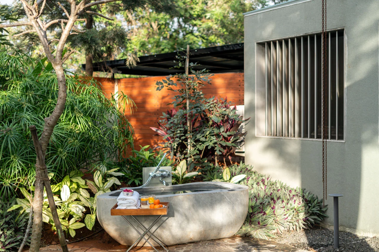 Ensuite Bathroom with an open-to-sky Bathtub.