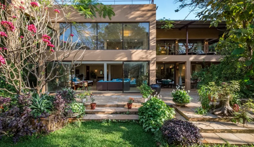 A stylish 4-bedroom pool villa surrounded by dense foliage in Alibaug. An outdoor pool, patio with foosball, table tennis and carrom arrangements, floor-to-ceiling living space, luscious home-cooked delicacies, guided treks, and all crafts a serene escape.