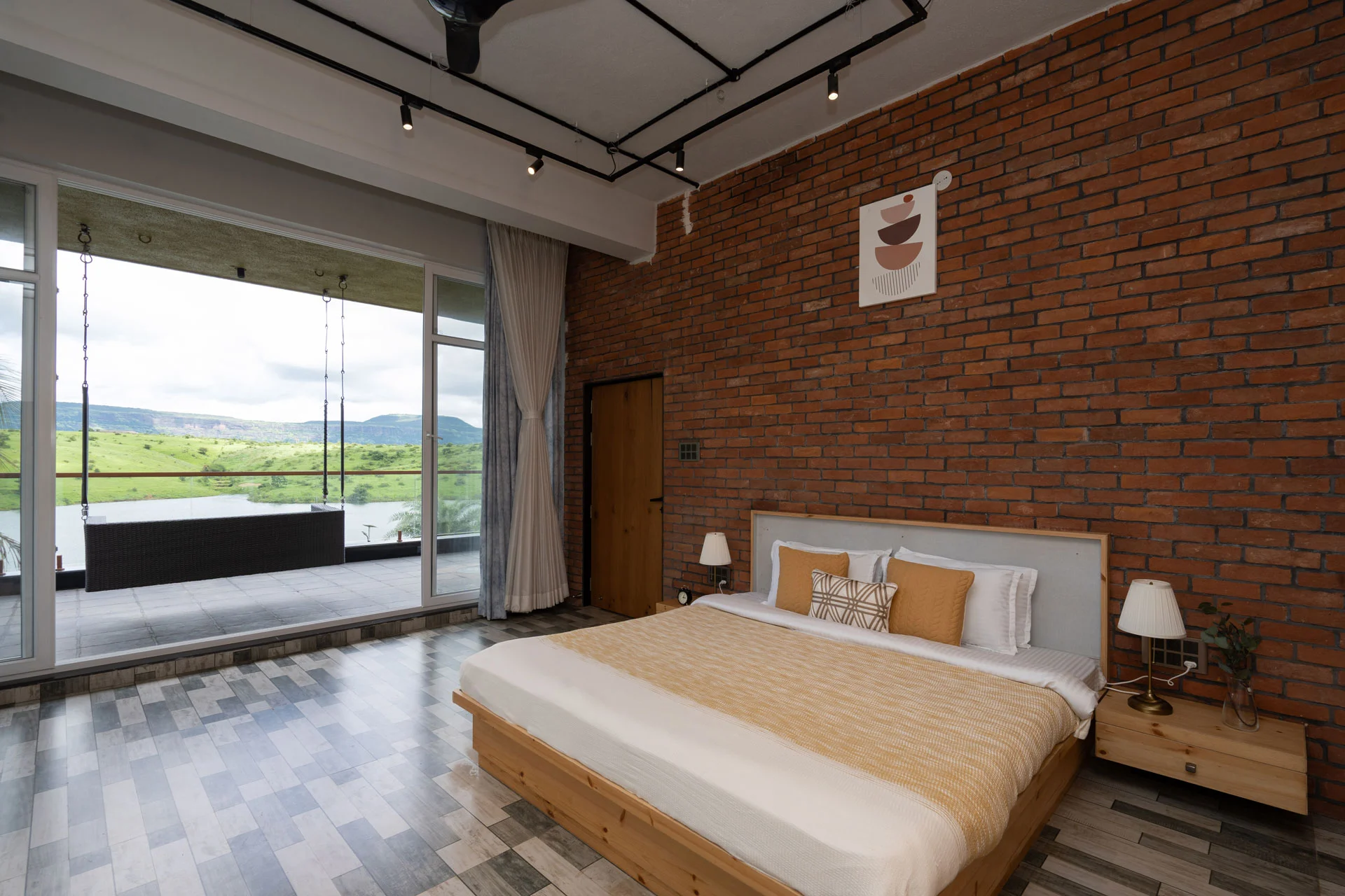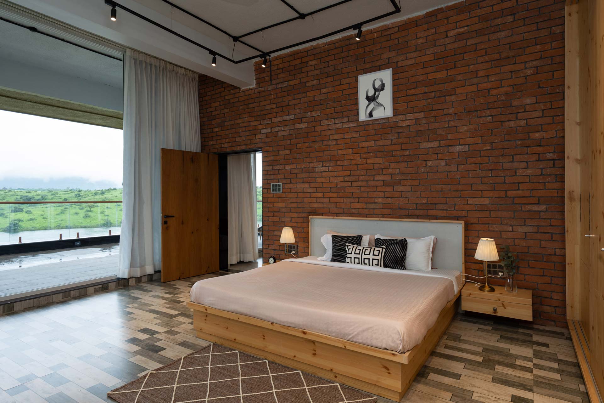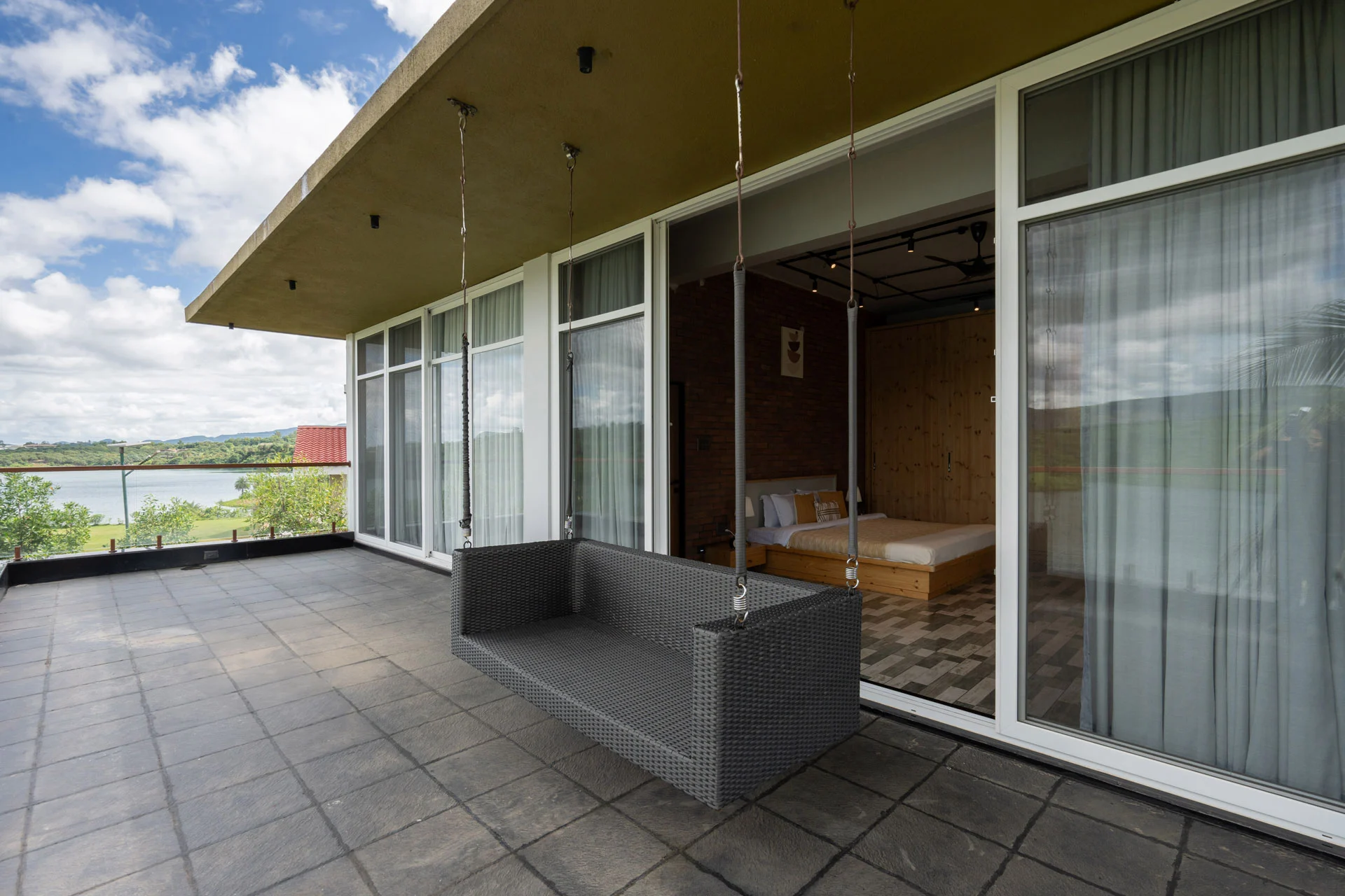 This ground-floor master bedroom opens up to a balcony facing the magnificent river.