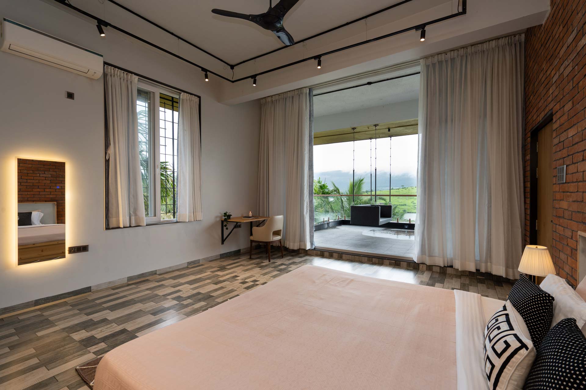 It offers a multitude of lavish amenities including an AC, extra mattress, working station, WiFi and wardrobe.