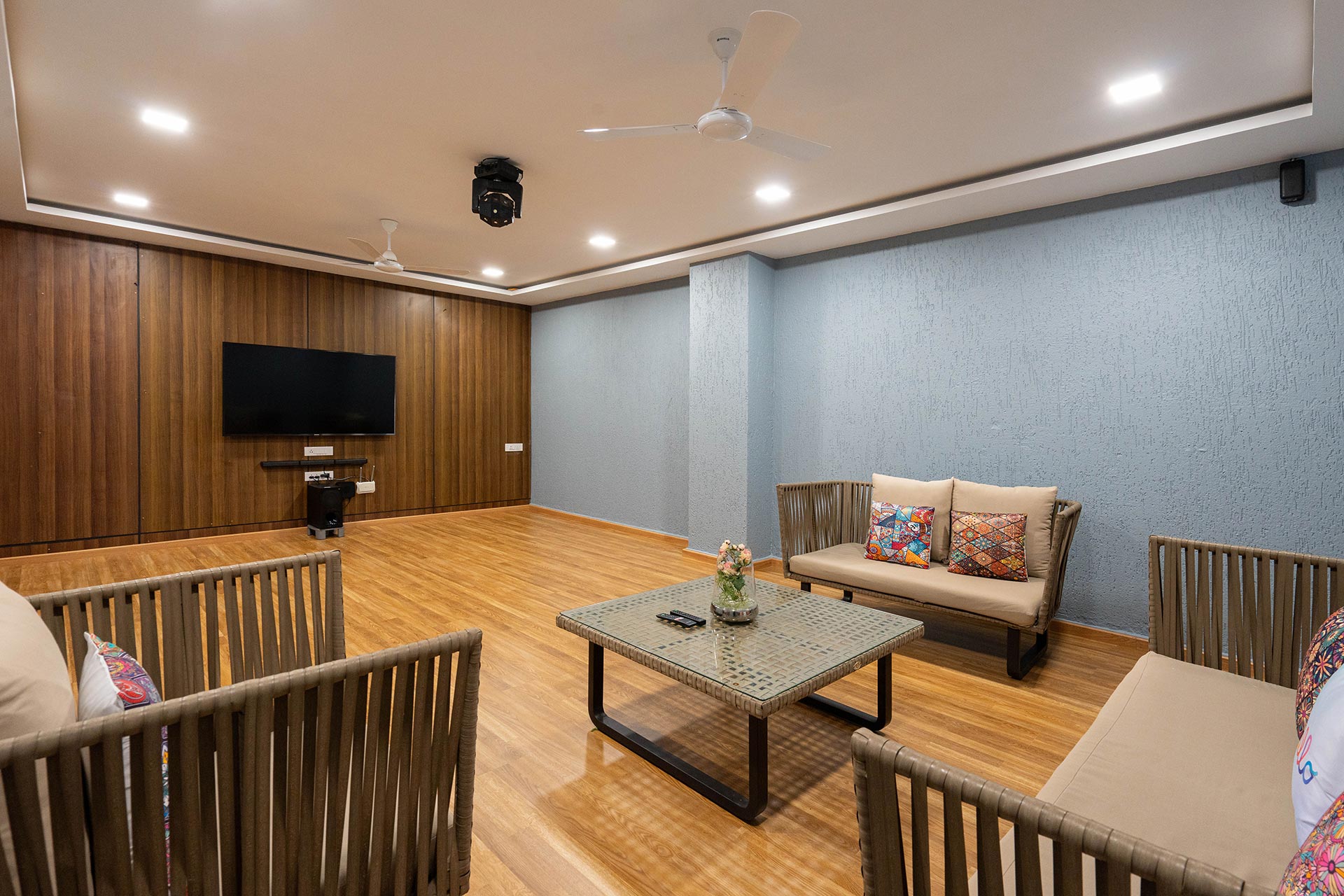 Rosso offers a striking blend of contemporary interiors and decor that perfectly complements its elegant facade. Nestled amidst lush greenery, the villa boasts a spacious lawn that’s not just a feast for the eyes but also ideal for fun games or group yoga sessions, allowing you to connect with nature while enjoying your stay. For entertainment, look no further than the stunning theatre-cum-disco room. Here, everyone can immerse themselves in a world of music, movies, and dancing, ensuring that there’s never a dull moment.