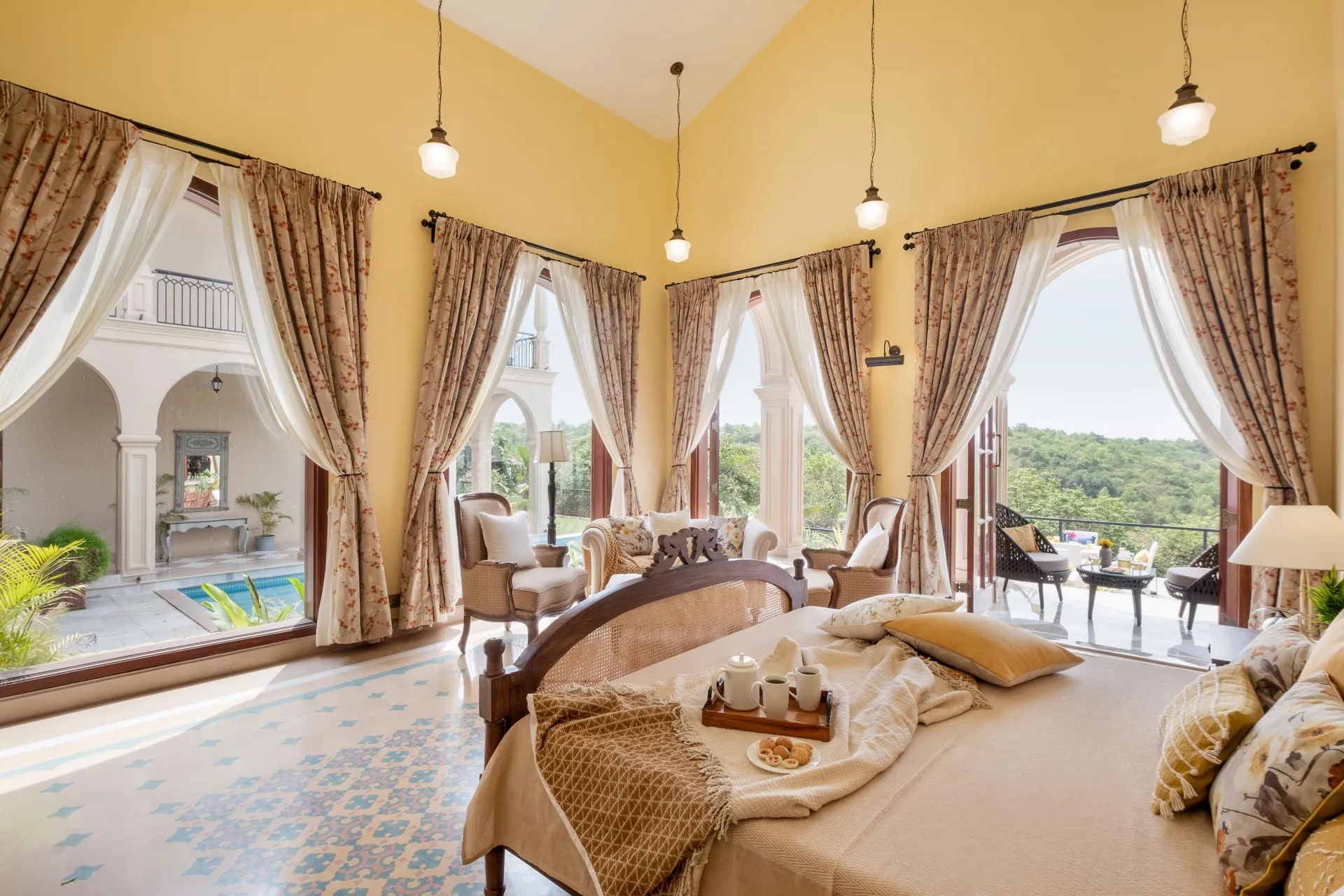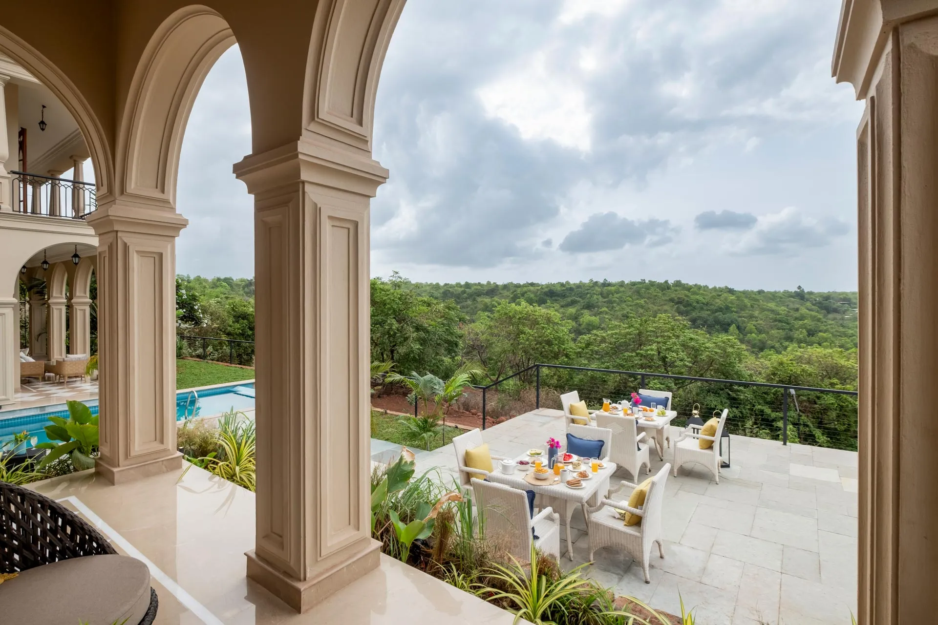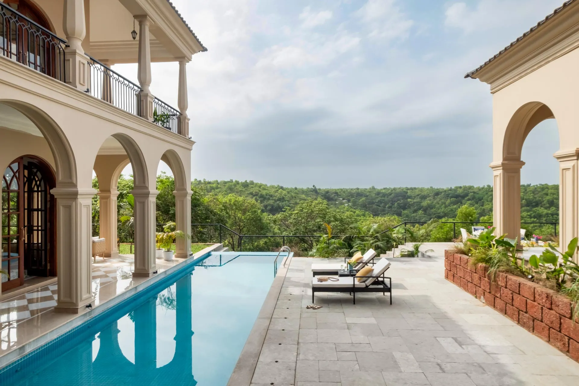 Part of an exclusive community of luxury villas sitting atop the hills of Mandrem, Sacri Borod Hill 7 offers stunning views of the sea and the verdant green surroundings. With five spacious bedrooms, a games room and a chic living and dining room, this grand Mediterranean style home is ideal for large groups, all year round. Choose to unwind by the beautiful private pool, the many sit-outs or the serene balcony; enjoy a tipple or two at the terrace bar as the sky puts on a spectacular show.