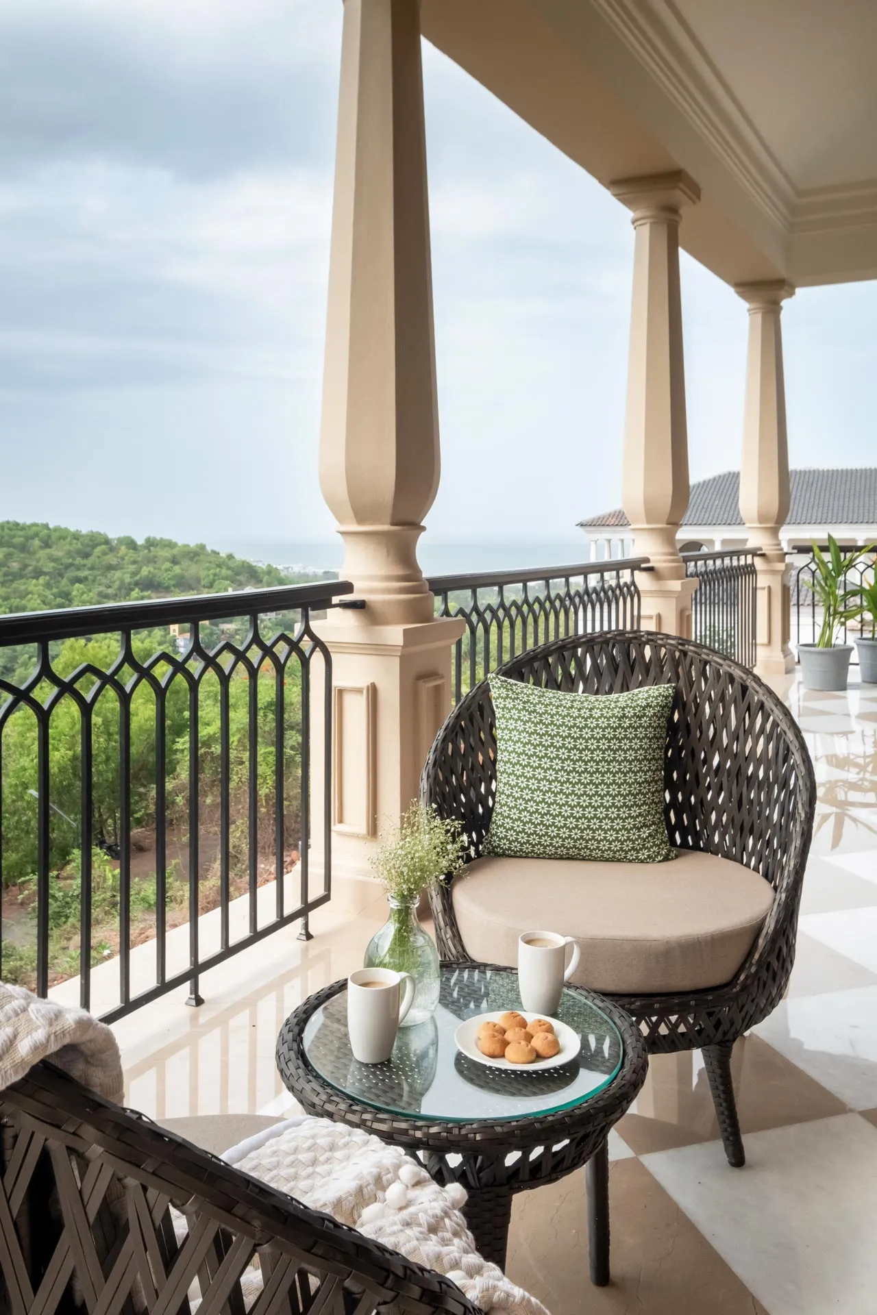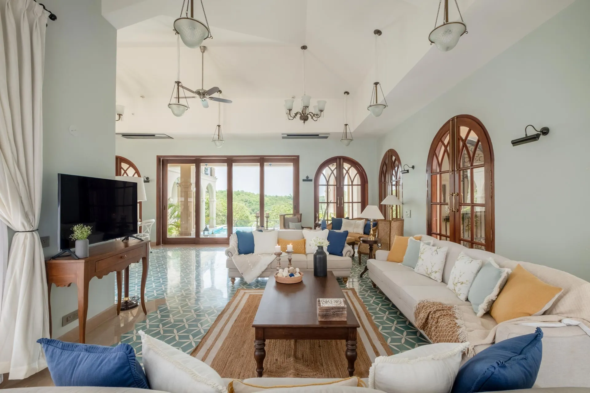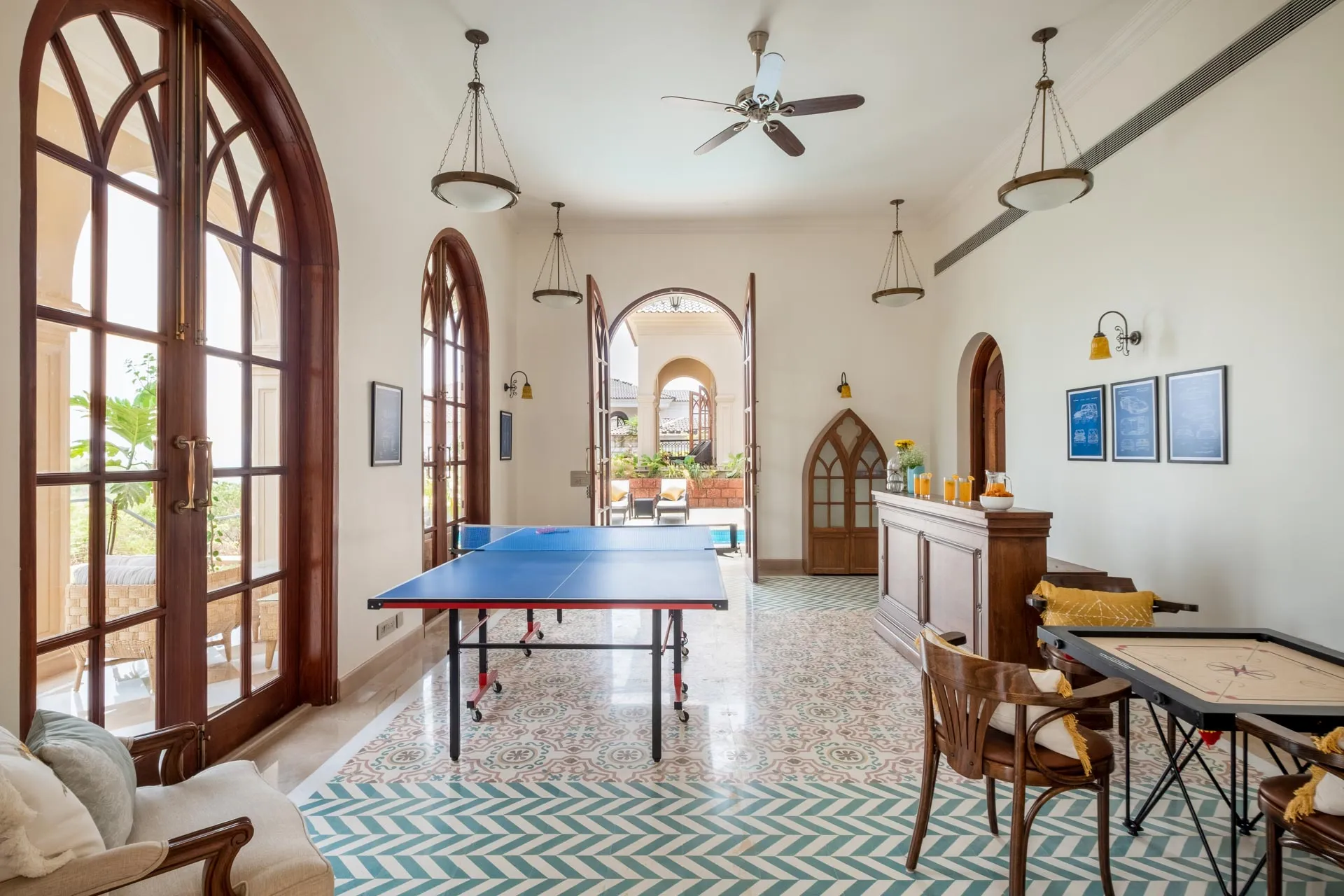 Part of an exclusive community of luxury villas sitting atop the hills of Mandrem, Sacri Borod Hill 7 offers stunning views of the sea and the verdant green surroundings. With five spacious bedrooms, a games room and a chic living and dining room, this grand Mediterranean style home is ideal for large groups, all year round. Choose to unwind by the beautiful private pool, the many sit-outs or the serene balcony; enjoy a tipple or two at the terrace bar as the sky puts on a spectacular show.