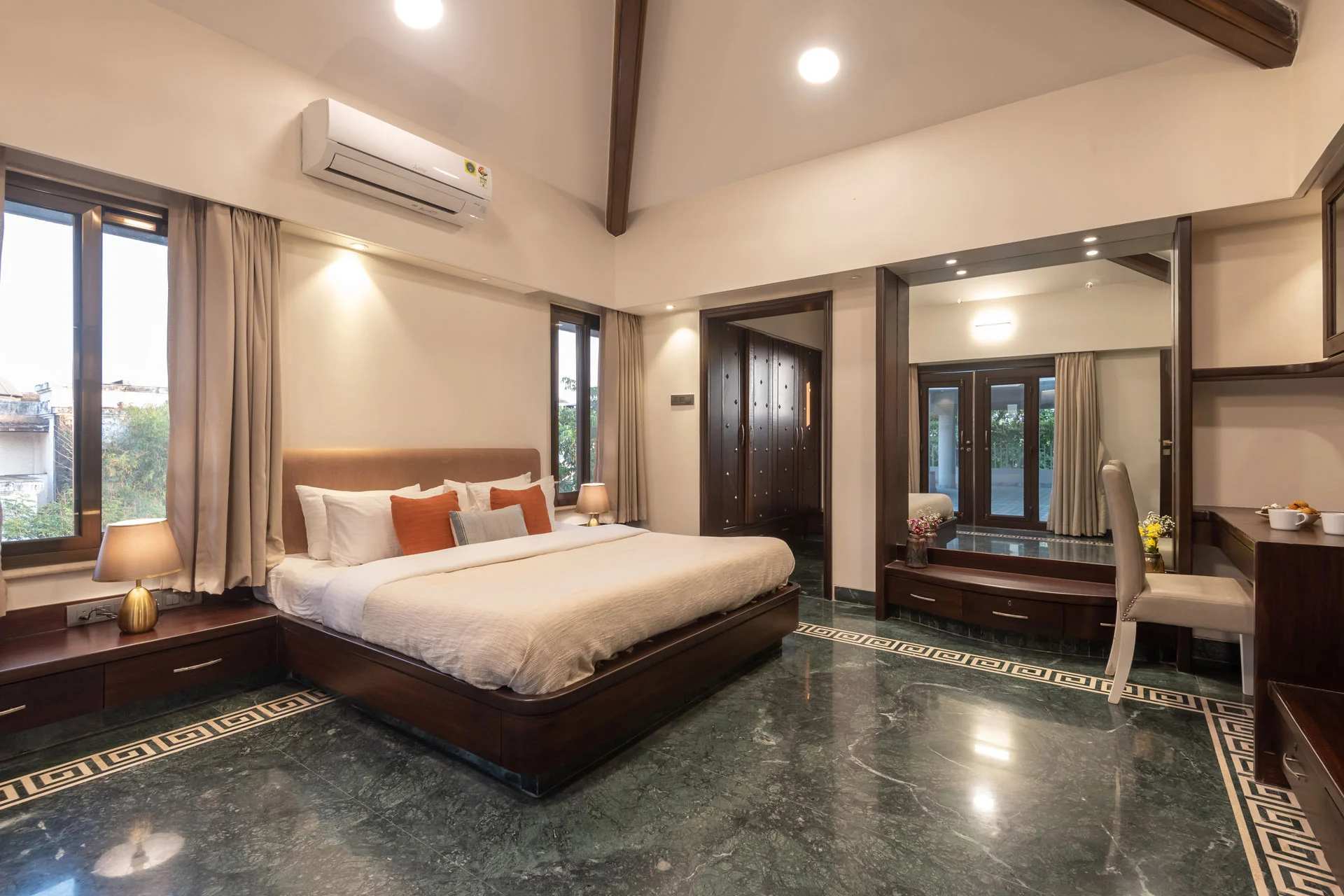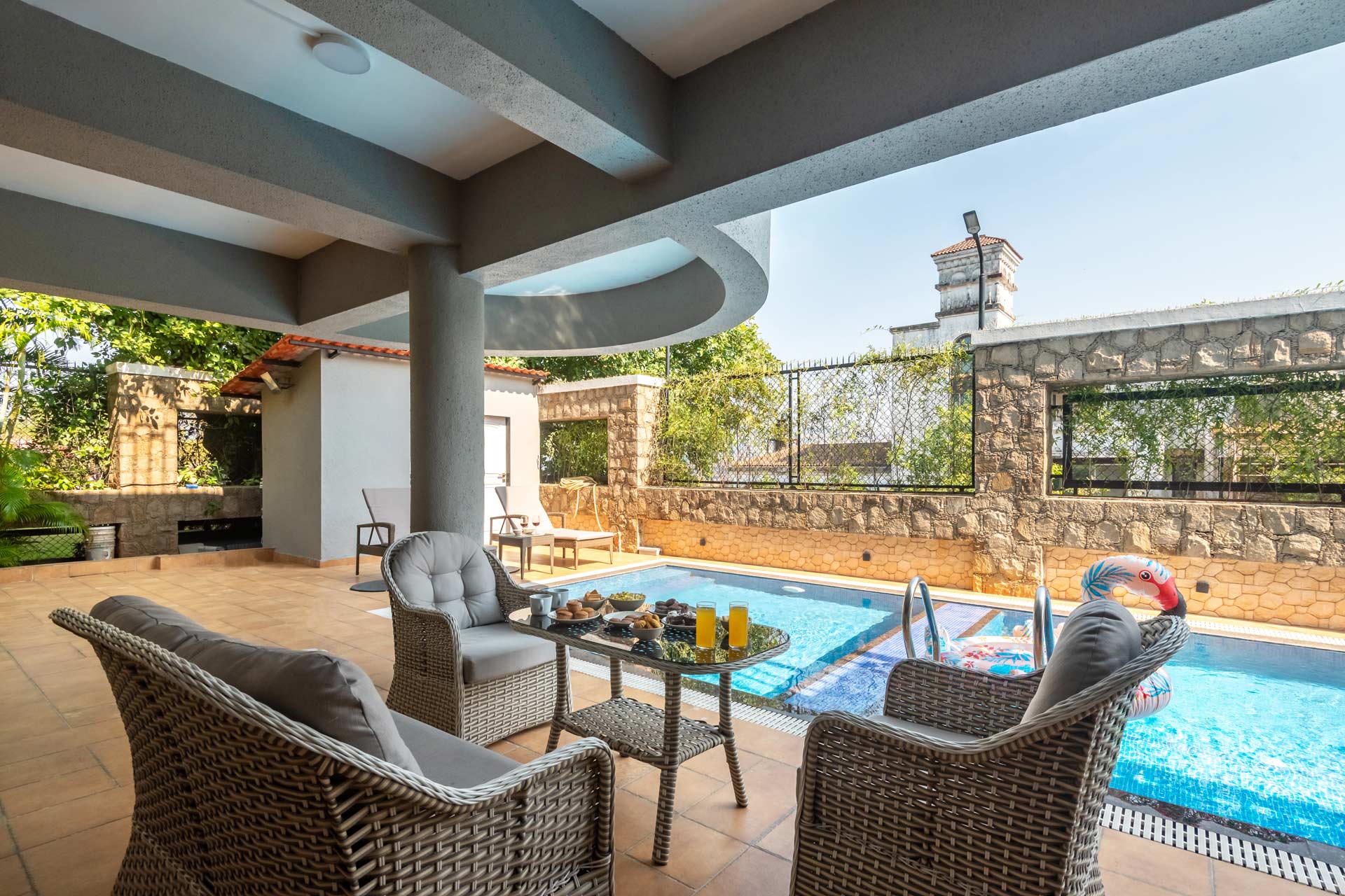 “Seraphim” exudes grace, and “Peak” speaks to the pinnacle of luxury—and at Seraphim Peak, you get both in spades. Perched at one of Lonavala’s highest points, this stunning retreat offers infinite valley views that redefine breathtaking. If you thought Lonavala was your ideal weekend getaway, Seraphim Peak will convince you to upgrade that to a luxurious staycation. With a grand facade that feels like stepping into a modern-day castle, this villa promises more than just a room—it offers an experience. The outdoor pool, with its panoramic vistas, is the perfect spot for indulgent swims or epic poolside parties. Think vibrant sundowners with your crew, where the worries of the world melt away.