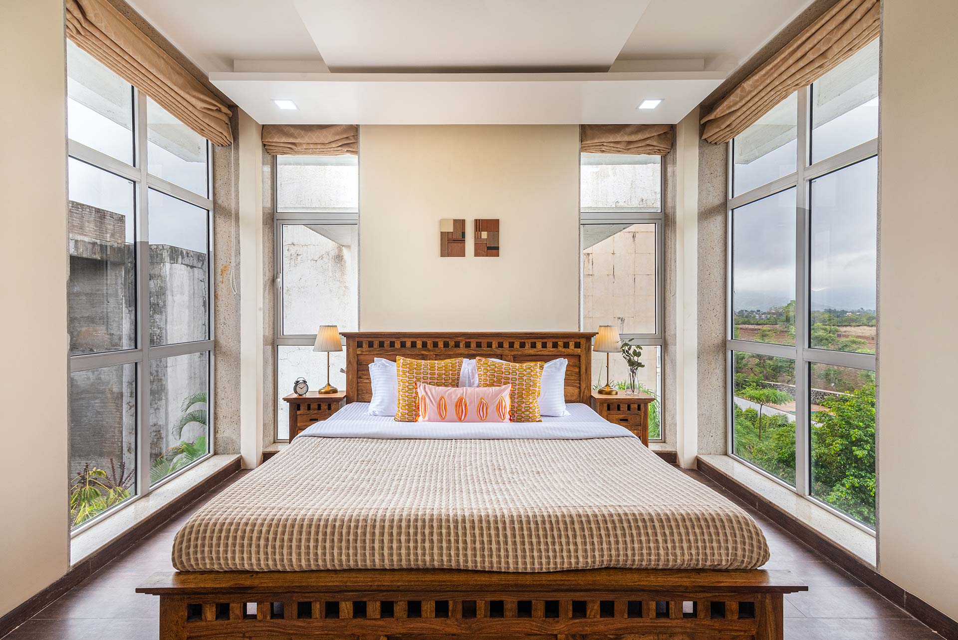 A fusion of modern architecture and luxury, Sierra Skies is a villa that exudes coziness and tranquility. Draped in the vibrant hues of Lonavala and cozy interiors that provide warmth, this holiday home guarantees a refreshing stay. This 5 bedroom villa is  tastefully designed to provide comfort and contentment with chic and cozy interior that will make your stay more special. The swimming pool on the terrace is perfect for rejuvenating with your loved ones. Sierra Skies offers stunning views of the mountains that can also be enjoyed from the swimming pool.