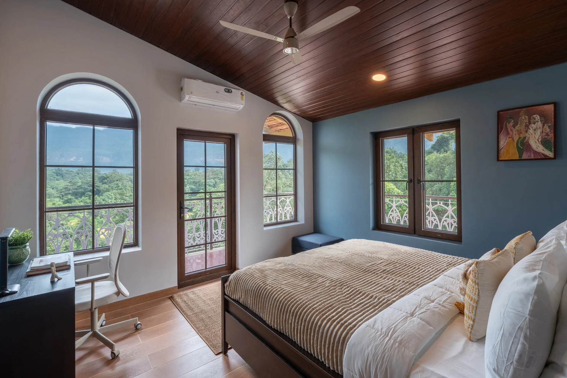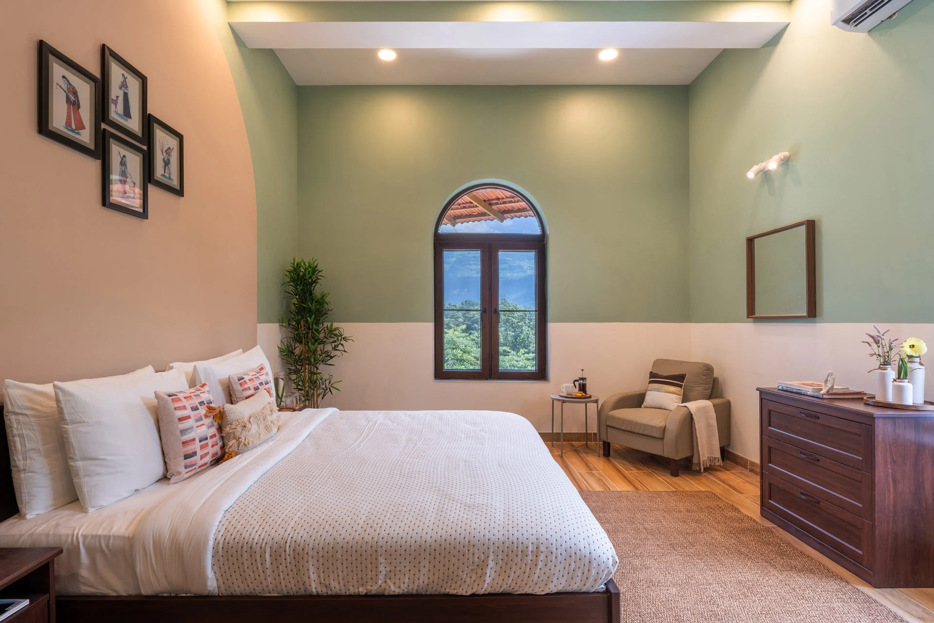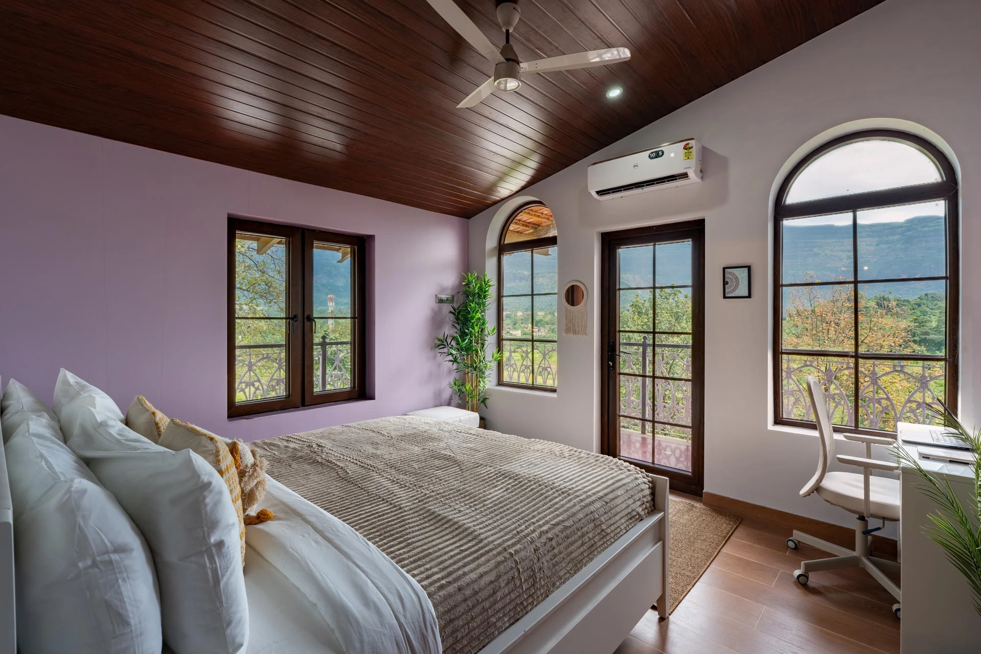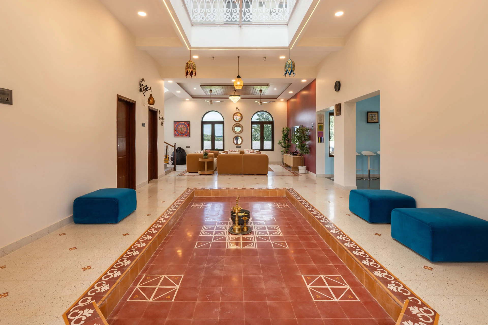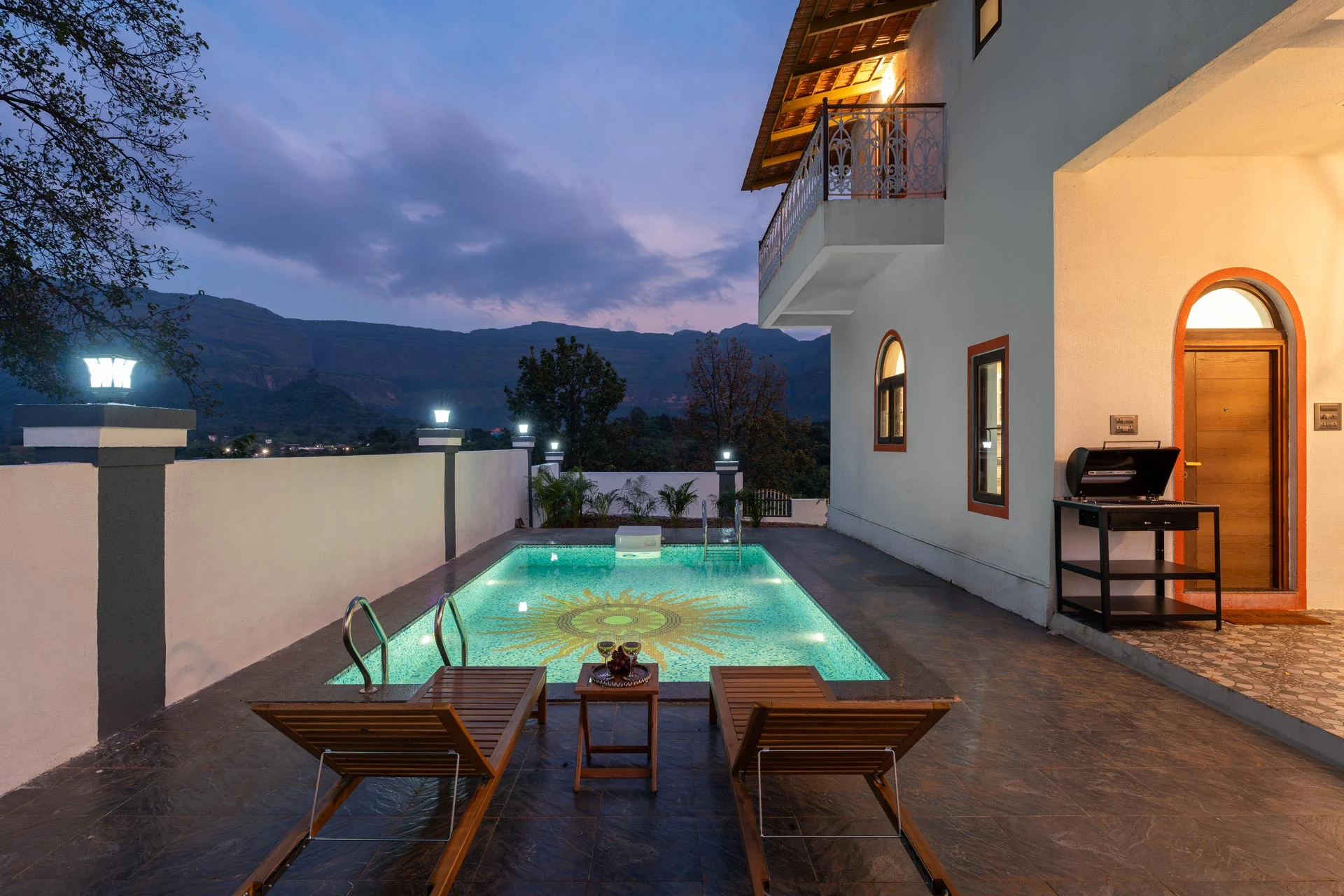 Sreelakam, a 4-bedroom villa in Karjat, offers an idyllic escape surrounded by lush forests and rolling hills. The residence features earthy interiors with a touch of elemental grandeur, blending natural textures and refined elegance. Guests can unwind by the private pool and open deck, where the calm of nature sets the perfect tone for relaxation. The manicured lawn with inviting sit-outs provides a peaceful space to pause and take in the scenery, while the terrace area offers a breathtaking panoramic backdrop. With plenty of recreation options, including indoor games and board games, Sreelakam ensures every moment is filled with ease and enjoyment – a true reflection of Karjat’s slow-paced charm.