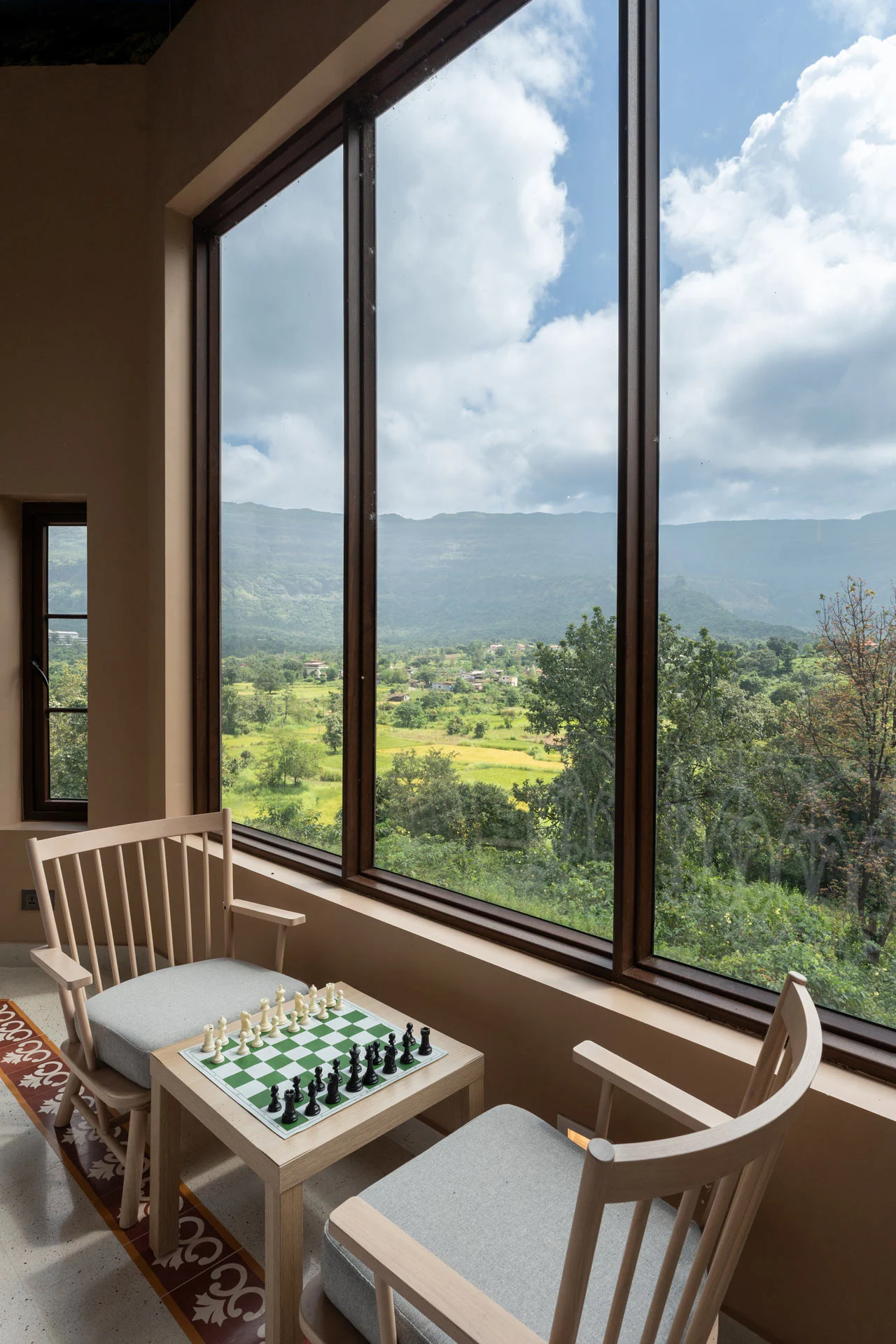 Afternoons invite a little friendly competition with board games, laughter echoing through the villa’s airy spaces. As evening arrives, the setting turns magical — a table laid out for al fresco dining under the open sky, the mountains silhouetted in the fading light. Between its natural backdrop and thoughtful comforts, Sreelakam offers more than just a stay — it’s a day well-spent, unfolding gently in the heart of Karjat’s calm countryside.