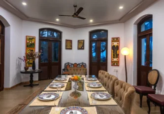 This 6-bedroom pool villa by Akshi Beach in Alibaug exudes old-world charm. Palm-lined shores, caressing sea breeze, ornate Parsi furniture, an in-house library, home-cooked delights—all for a quintessential Alibaug getaway.