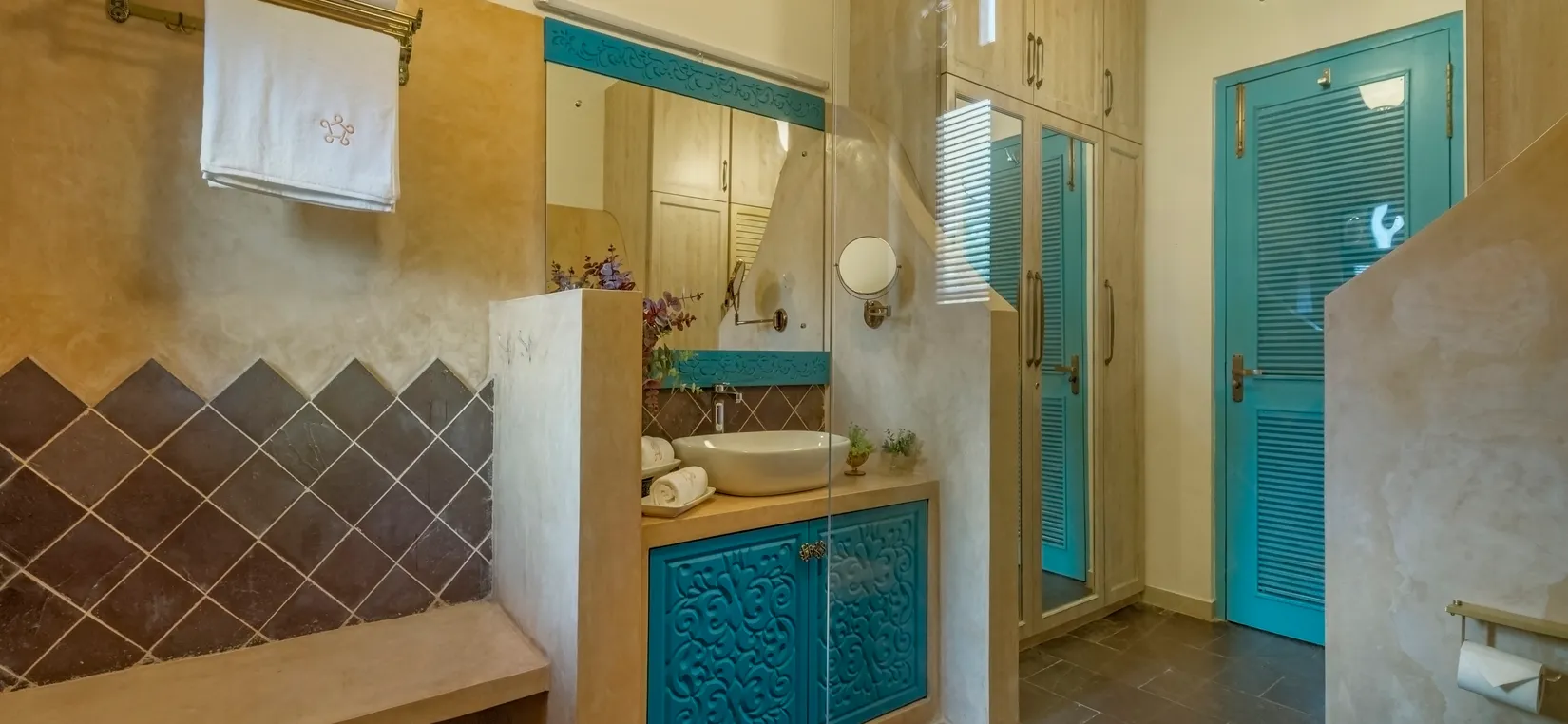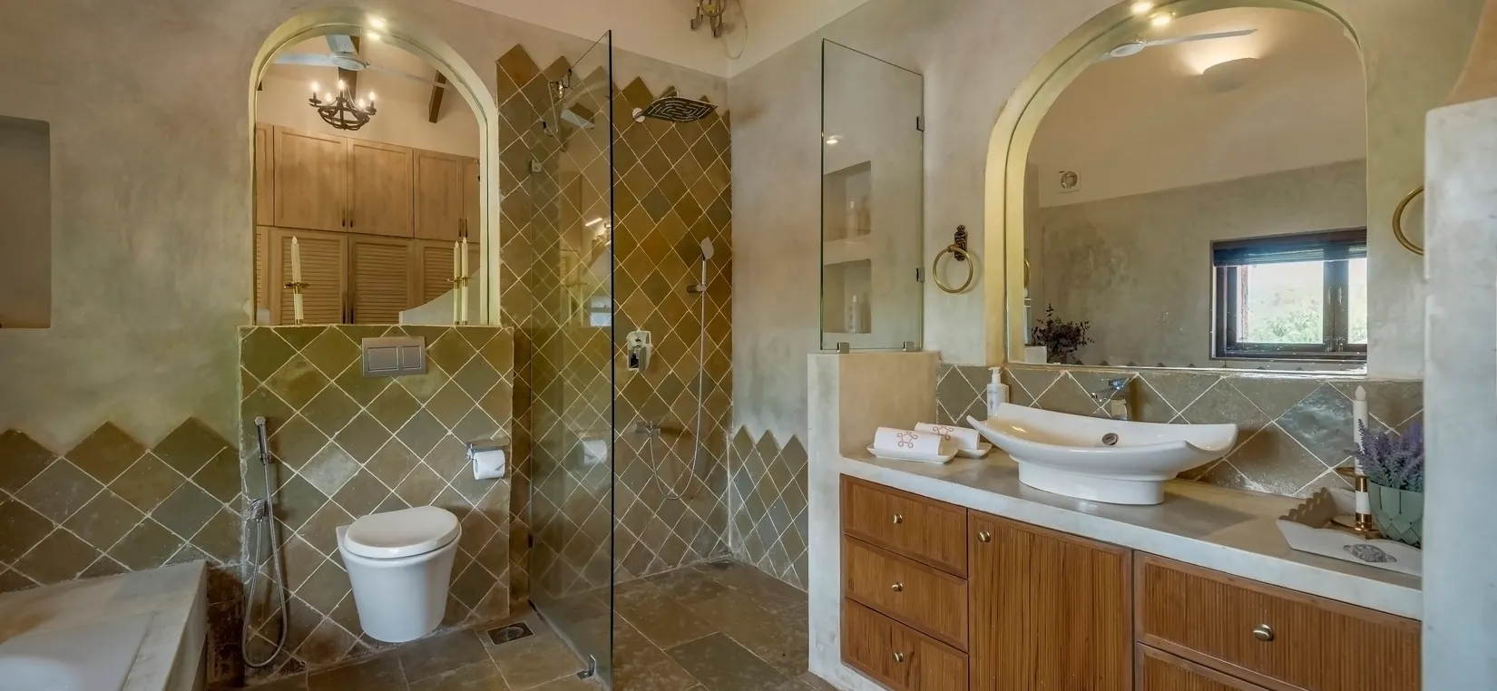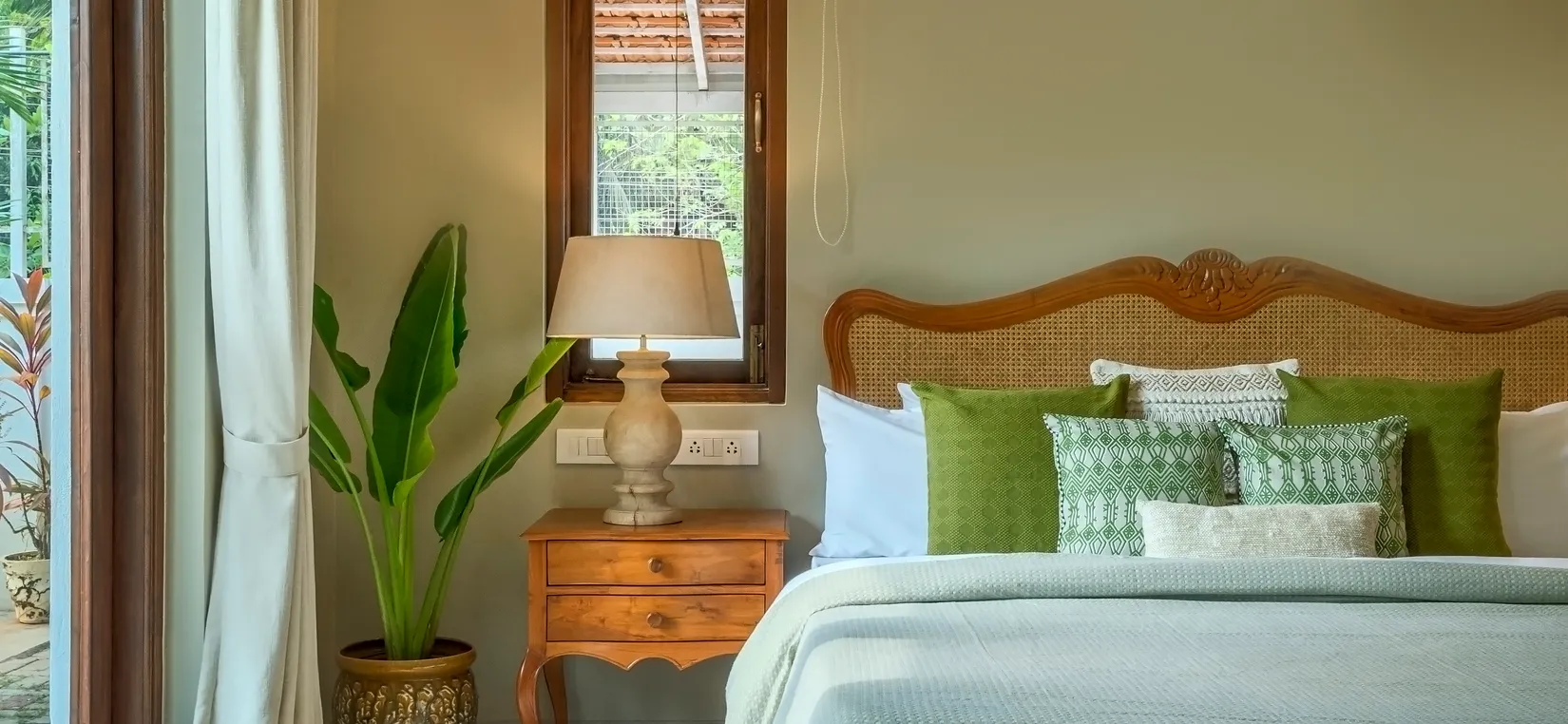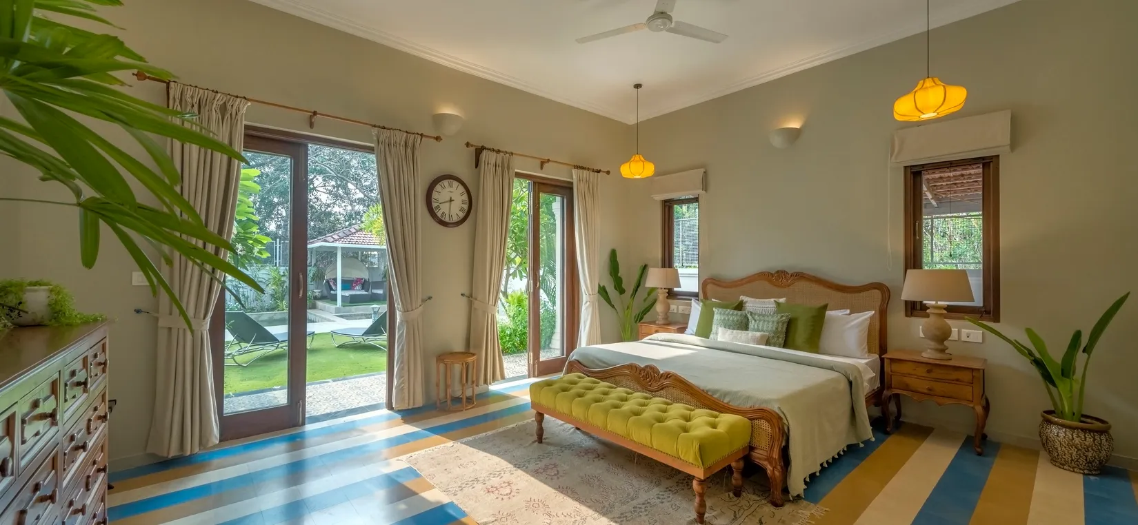 Each bedroom is thoughtfully designed with luxurious furnishings, soft linens, and warm décor elements—creating a peaceful sanctuary after a day of exploring Goa’s lively attractions.