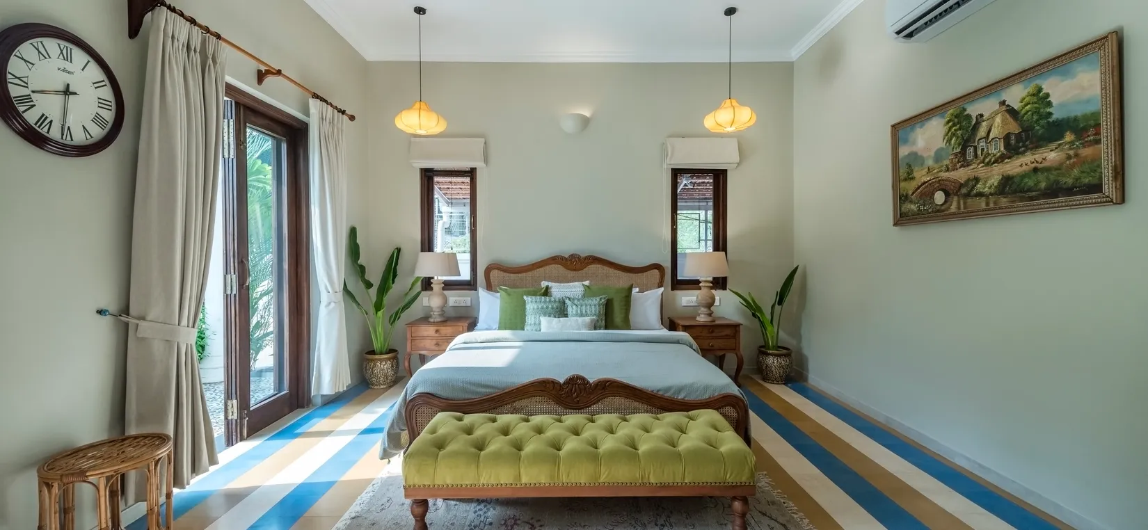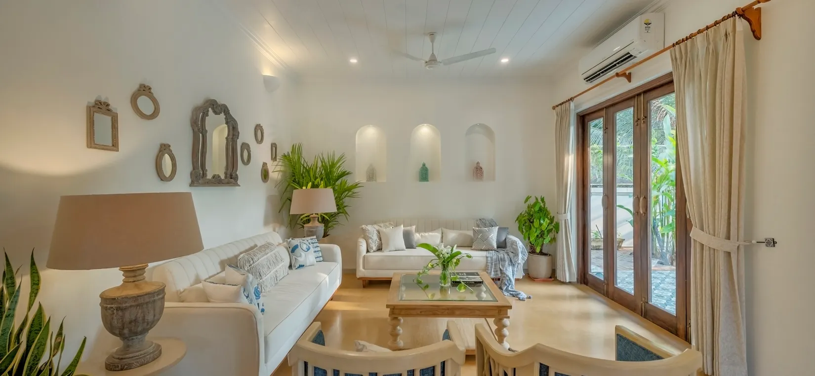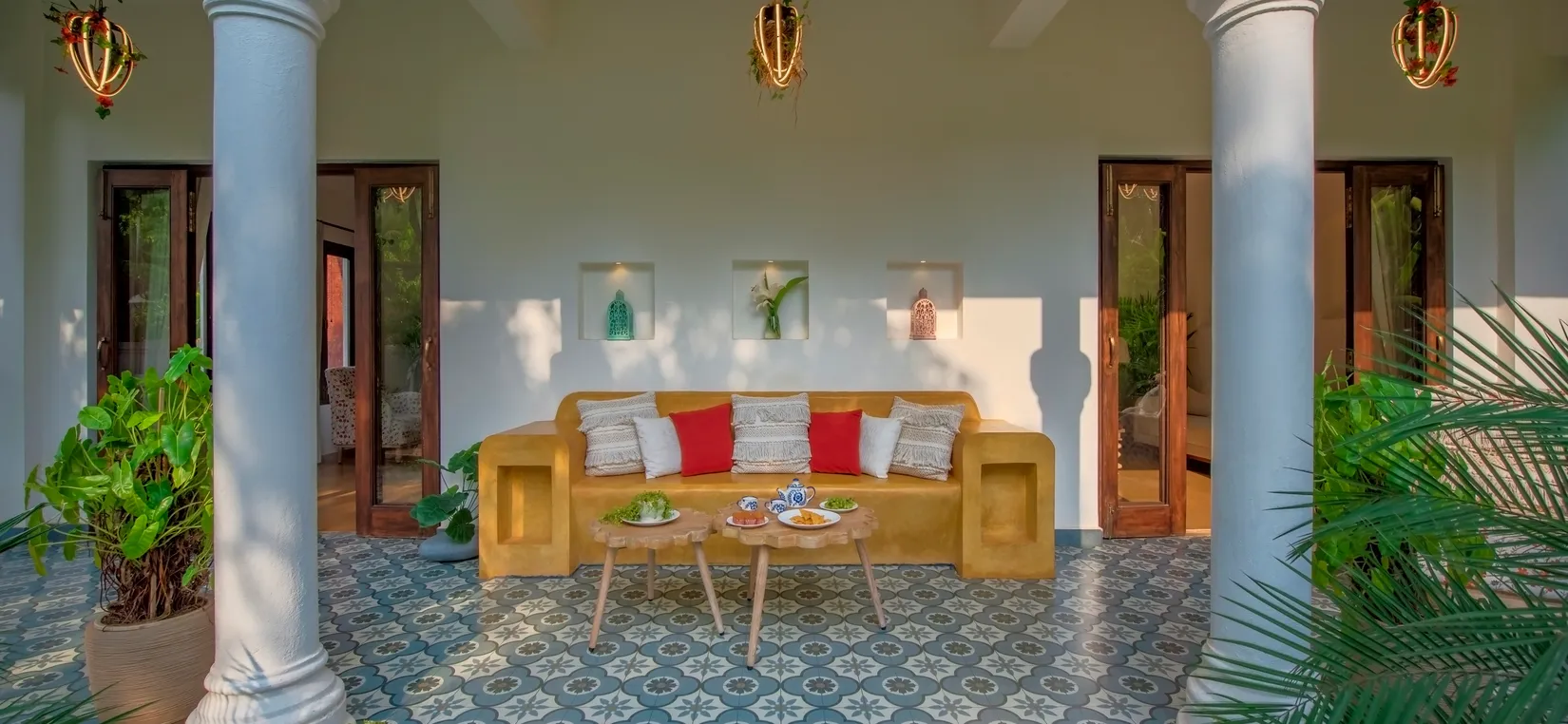 Sweet Mango is a serene 4-bedroom luxury villa located in the peaceful village of Parra, North Goa. With artistic interiors, calming colours, and bespoke design details, this villa offers an inviting and soulful escape. Spread across two beautifully curated floors with two cozy living rooms, it is perfect for long conversations, leisurely afternoons, and intimate gatherings.