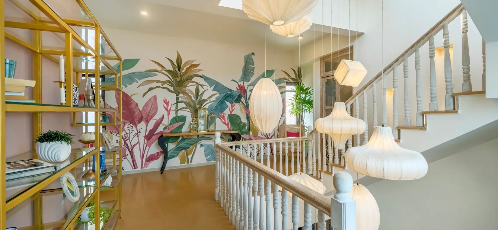 A short flight of stairs leads to three ensuite bedrooms, each with its own private balcony.