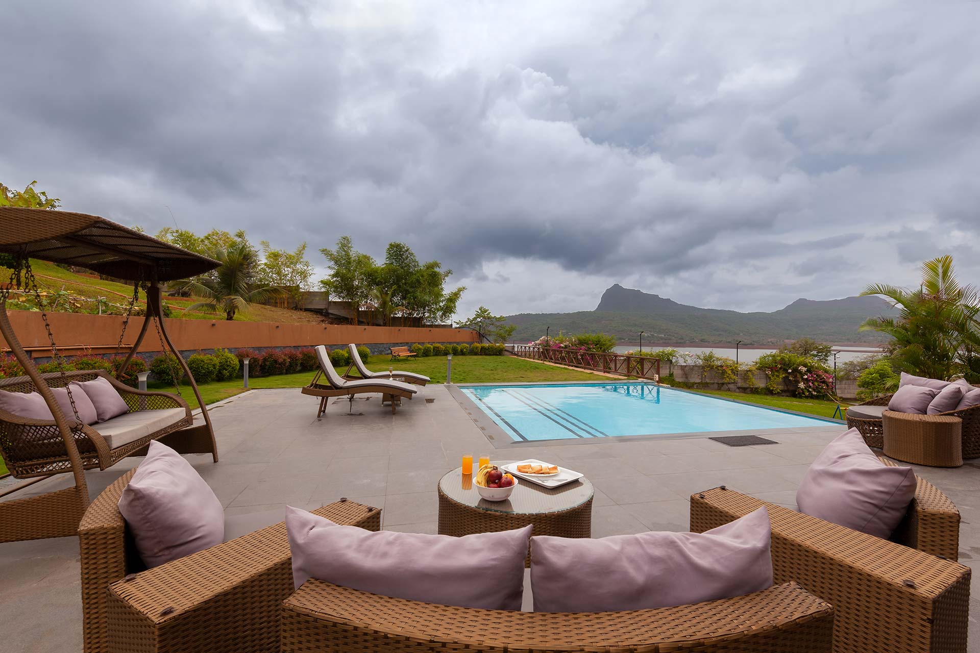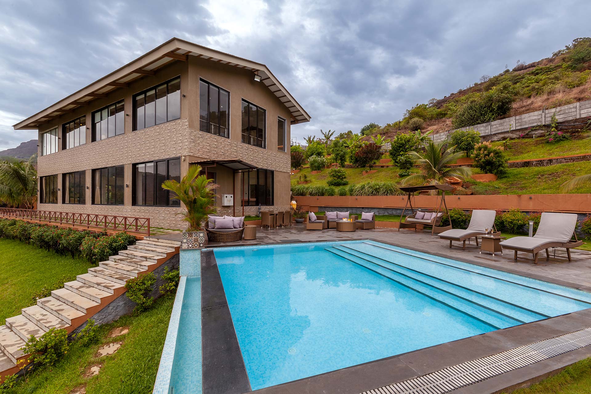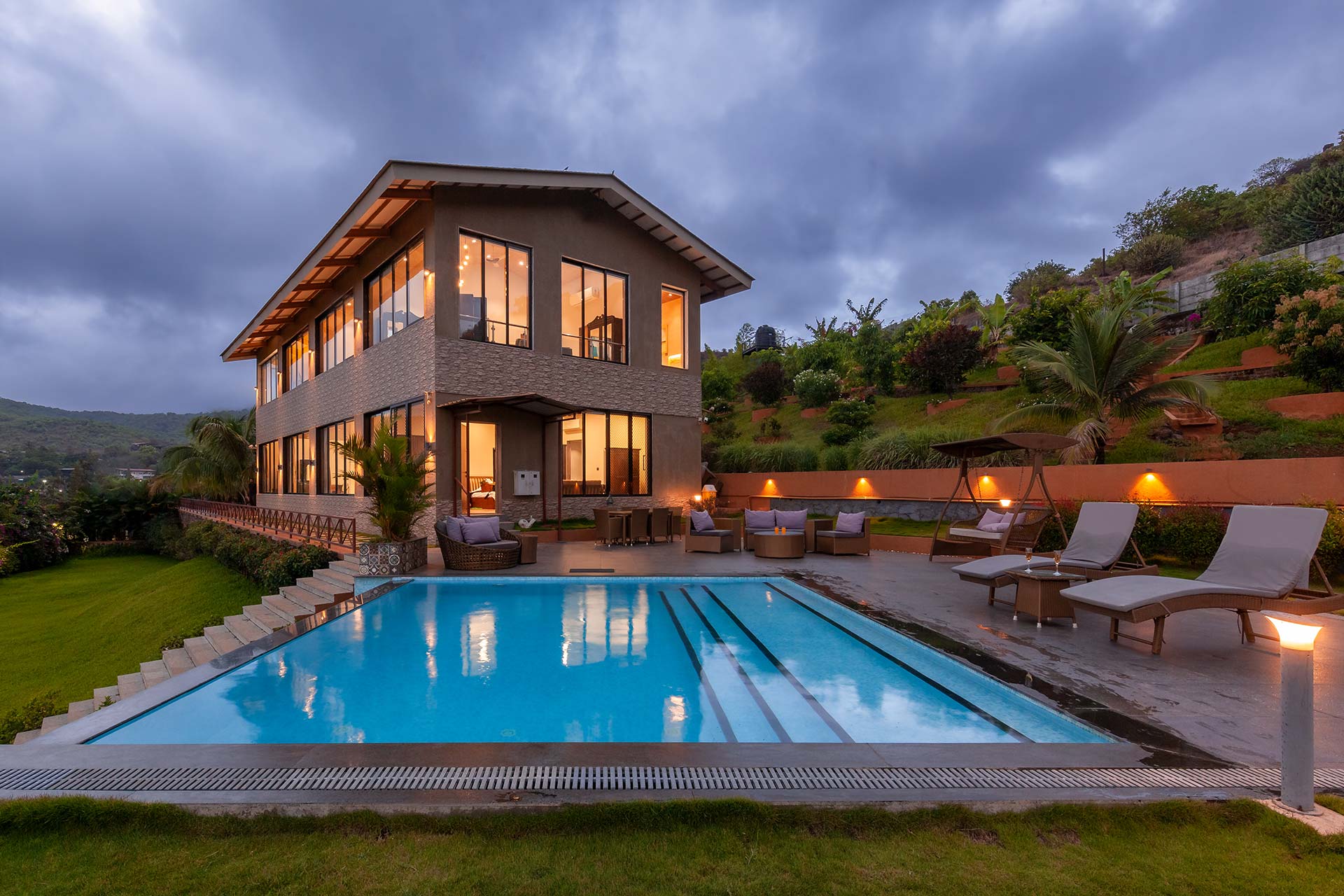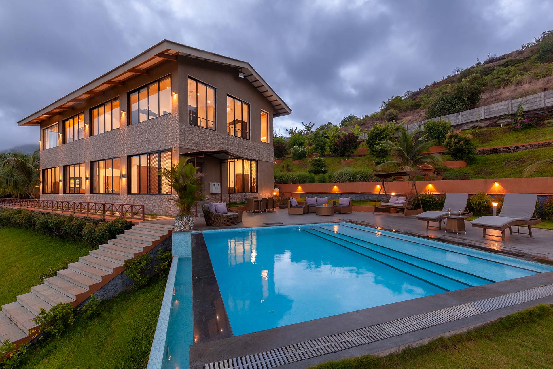 Nestled amidst the unending views of the rising peaks, the calming waters, and lush greenery, Terra Nova is a modern home dripping with luxury. The mornings here begin with sweet birdsongs, swaying trees and refreshing breeze. Start your day with a brisk morning walk in the well-tended gardens, as you savour the misty air. Enjoy a game of badminton or cricket. Devour an elaborate breakfast spread amidst nature. Gather your loved ones and play indoor games like cards and ludo. Reserve the evenings for a relaxing soak in the temperature-controlled swimming pool, whilst soaking in the soothing landscapes of Pawna. Relax and unwind by the deck, and snuggle with a book to read. Go home with a bag of memories.