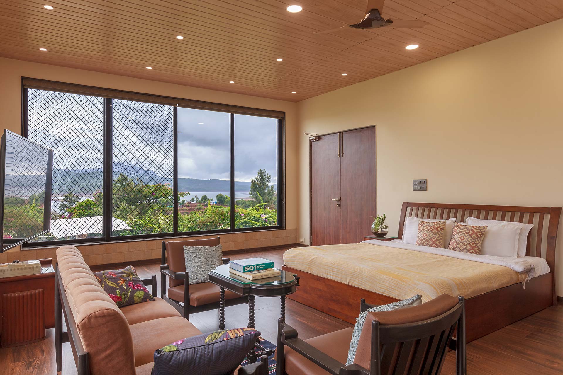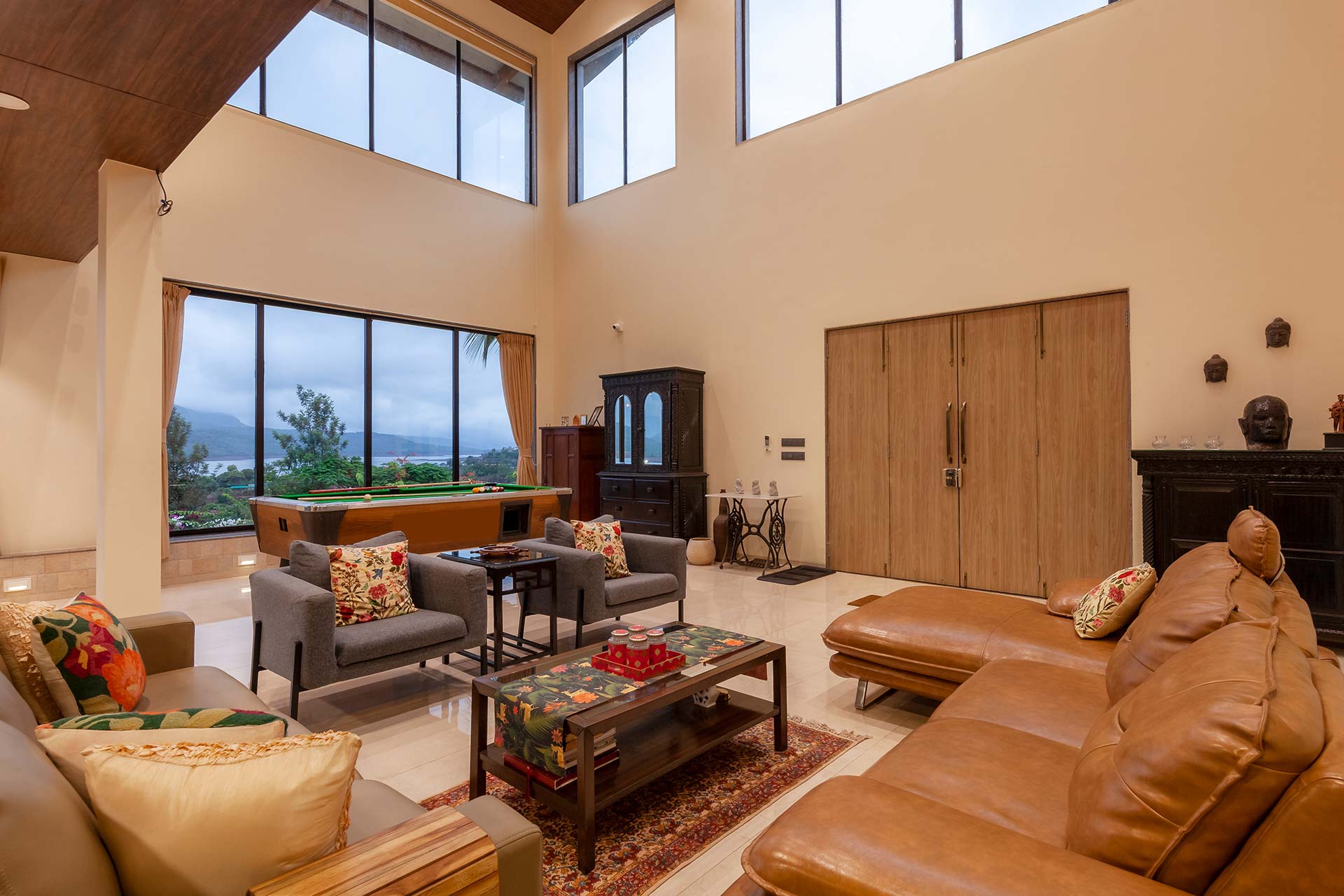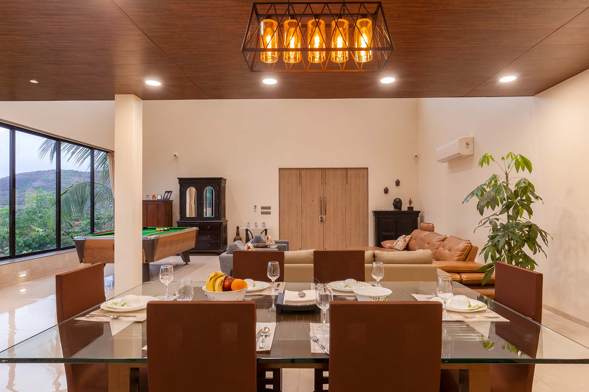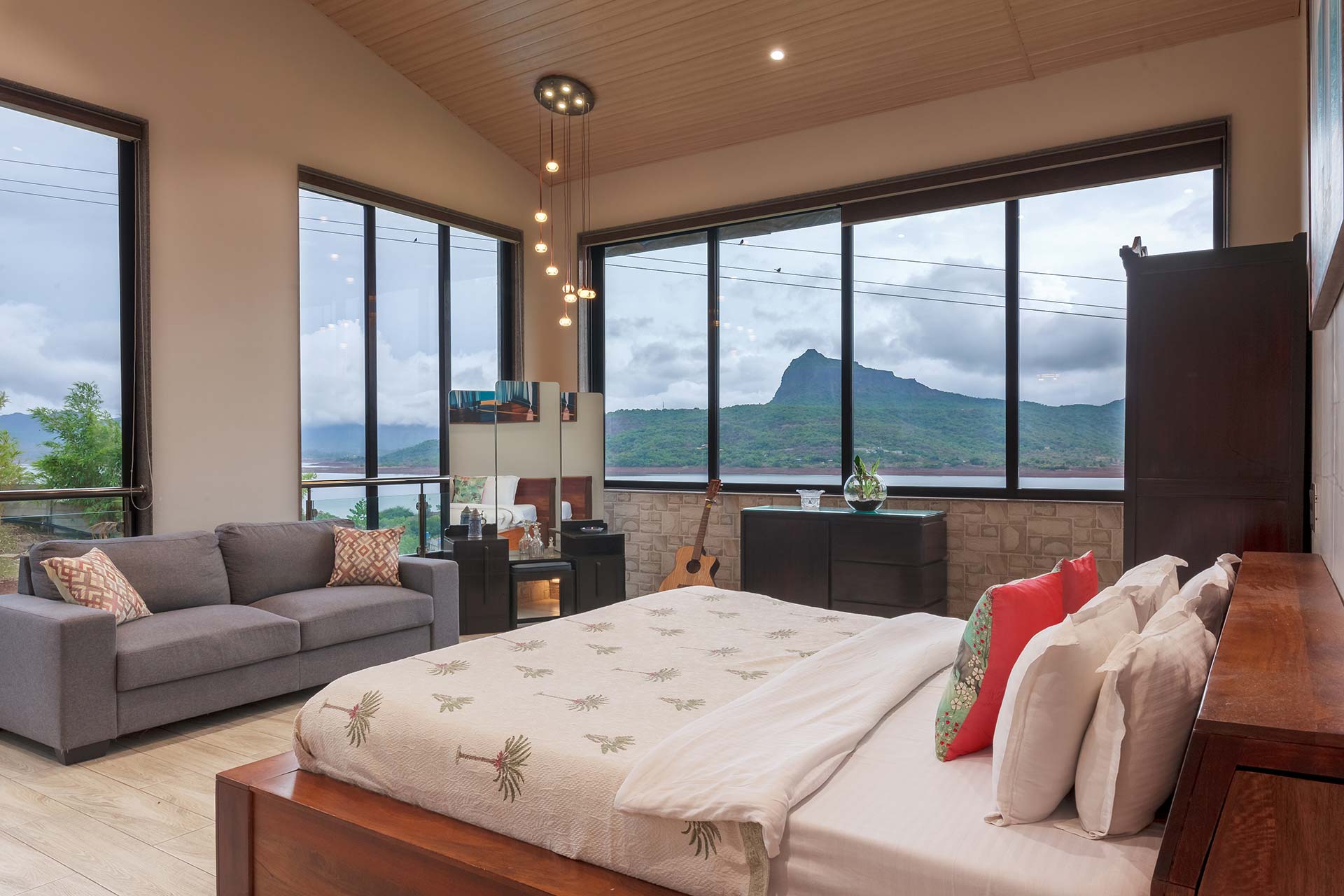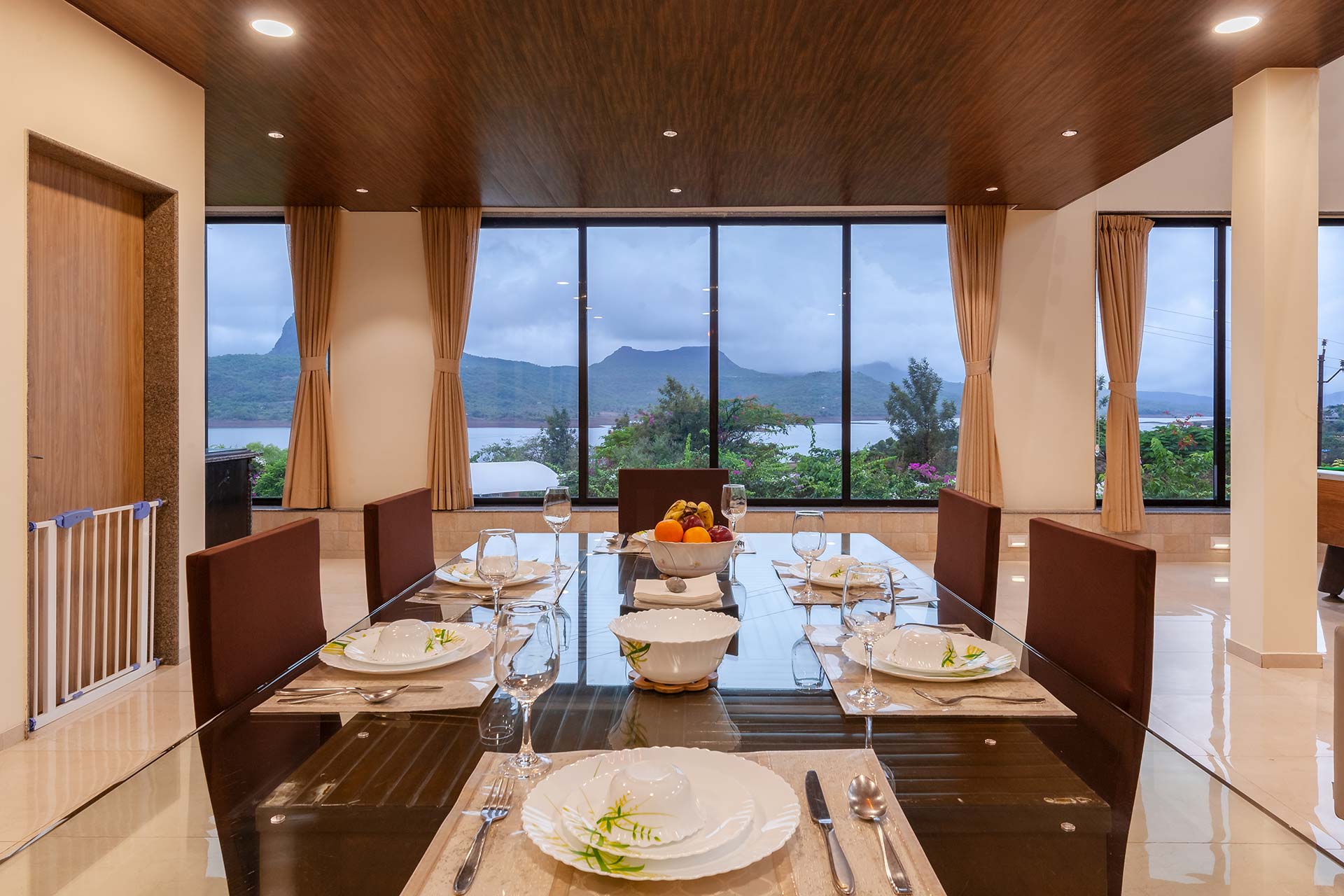 Nestled amidst the unending views of the rising peaks, the calming waters, and lush greenery, Terra Nova is a modern home dripping with luxury. The mornings here begin with sweet birdsongs, swaying trees and refreshing breeze. Start your day with a brisk morning walk in the well-tended gardens, as you savour the misty air. Enjoy a game of badminton or cricket. Devour an elaborate breakfast spread amidst nature. Gather your loved ones and play indoor games like cards and ludo. Reserve the evenings for a relaxing soak in the temperature-controlled swimming pool, whilst soaking in the soothing landscapes of Pawna. Relax and unwind by the deck, and snuggle with a book to read. Go home with a bag of memories.