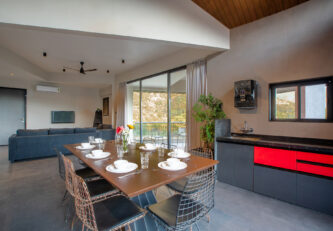 Terra Tints offers a panoramic mountain view from every angle, creating a seamless blend between the villa and its natural surroundings. The outdoor pool, a glistening oasis, invites guests to bask in the sun while taking in the breathtaking scenery. Every corner of the property is a shared space for engaging conversations, whether on the balconies, patio or the inviting games room. Also being conveniently located near Mumbai and Pune, this home is a haven for families seeking a weekend getaway. Terra Tints promises an immersive experience where luxury meets nature, making it the perfect retreat for those in pursuit of relaxation and rejuvenation.