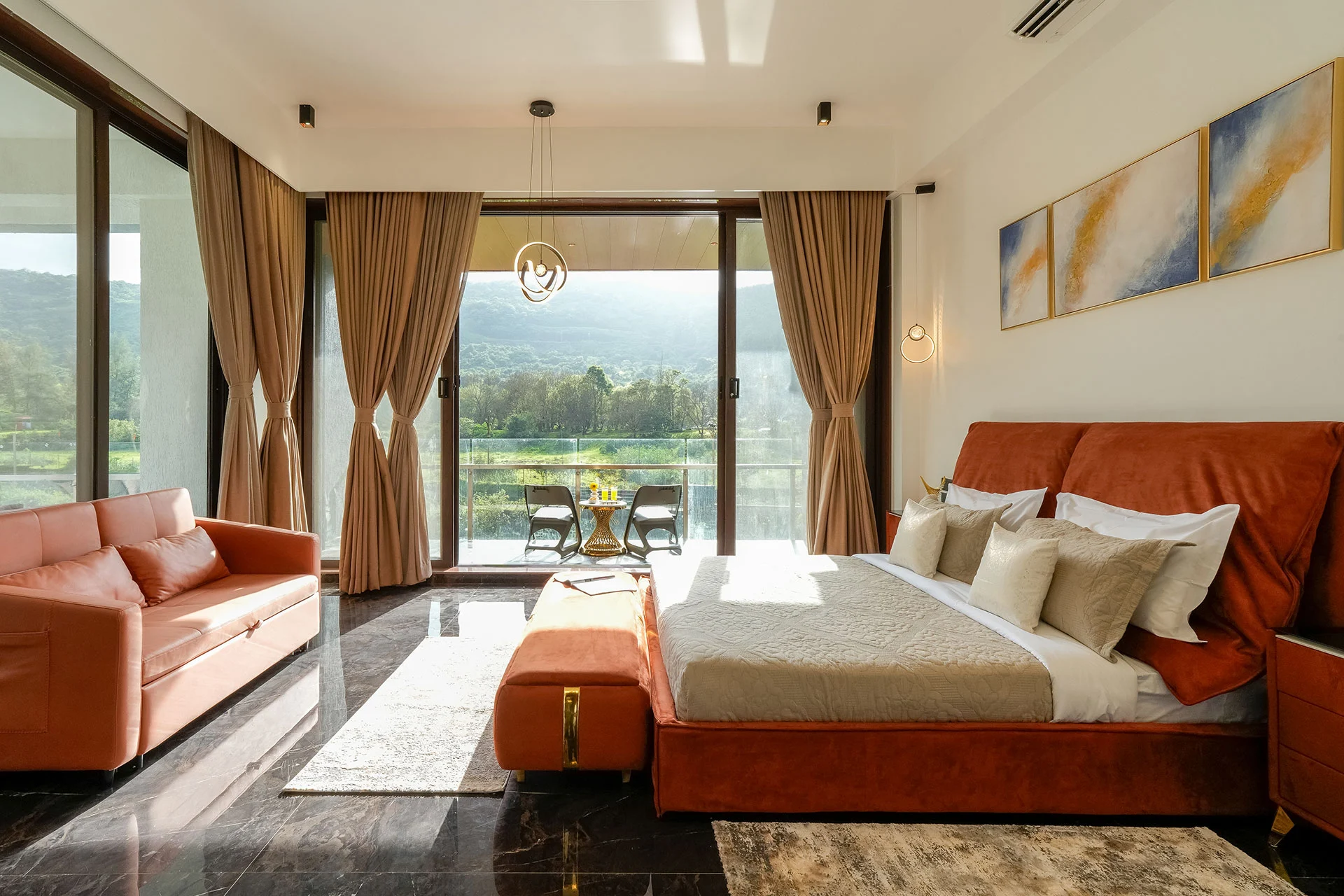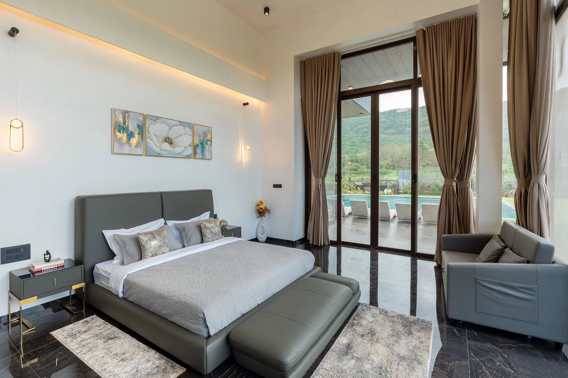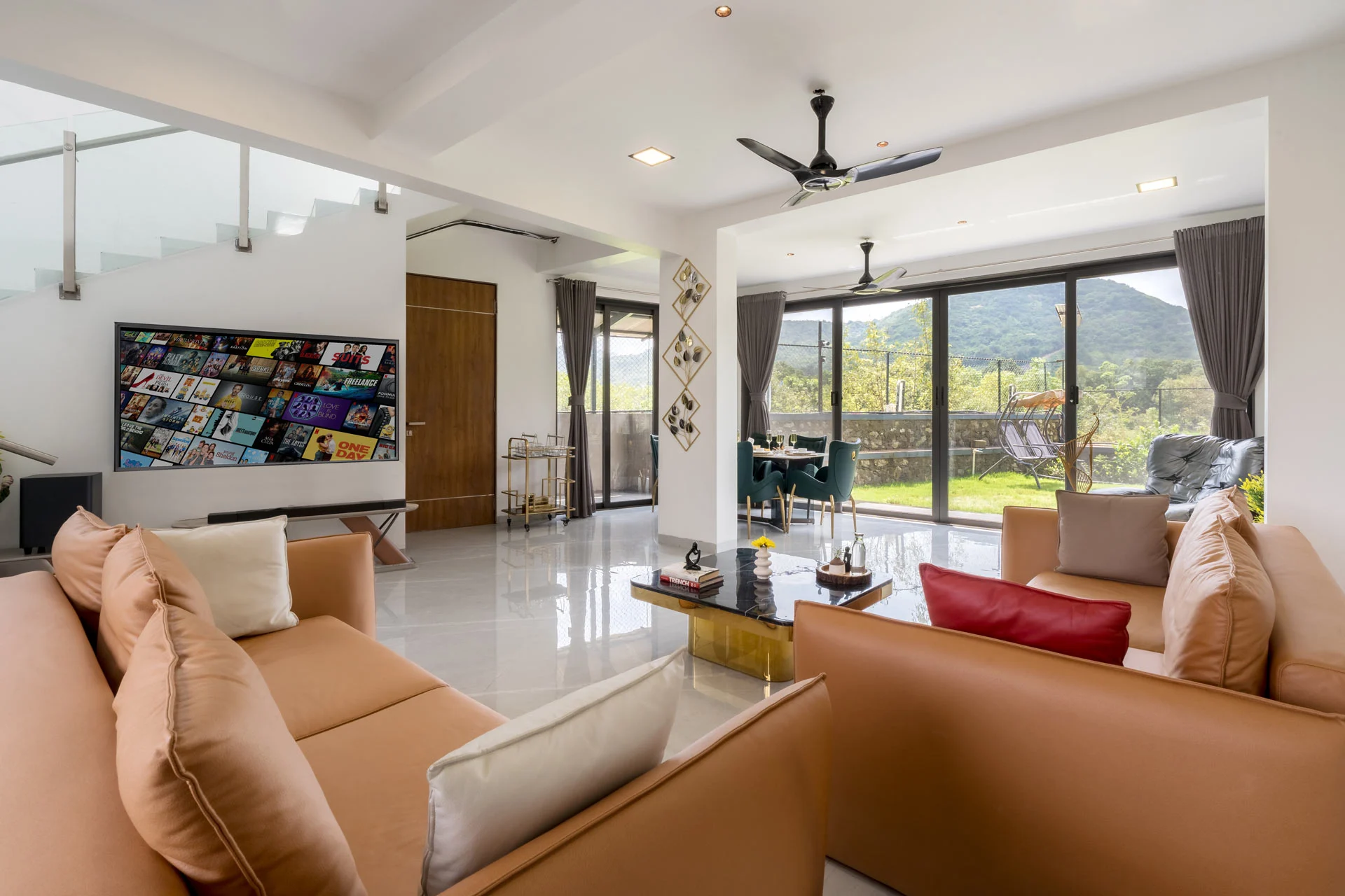 Step outside and you’ll see a sprawling lawn and a massive pool with a jacuzzi. And for those extra special occasions, there’s a second pool on the patio. Explore the nearby nature paths and experience the wonder of Lonavala’s monsoon—waterfalls, birds, and verdant landscapes are just waiting to be discovered.