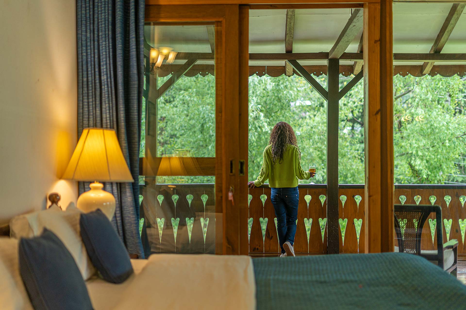 Nestled among apple orchards with stunning views of the Himalayas, the villa overlooks the Beas River. It is a homage to the traditional architectural style of the region, with the interiors housing every modern comfort. The master bedroom is akin to a 5-star suite, while the other two rooms are also equally comfortable and quite spacious. The living room has a warm vibe to it, and the entire group can hang out together here. The views from the patio and balcony are sure to lure you outside, where you can also enjoy a bonfire on chilly evenings. The well-maintained lawn adds a generous touch of green to space and brings you closer to nature. This beautiful villa is bound to put you at ease the moment you get here and will make for a comfortable stay for your group.