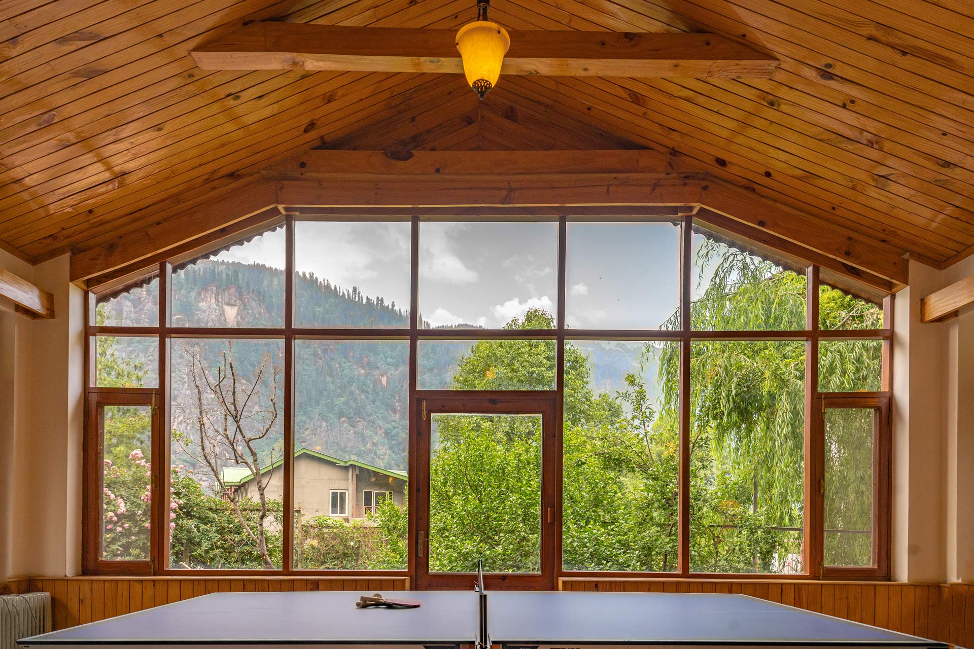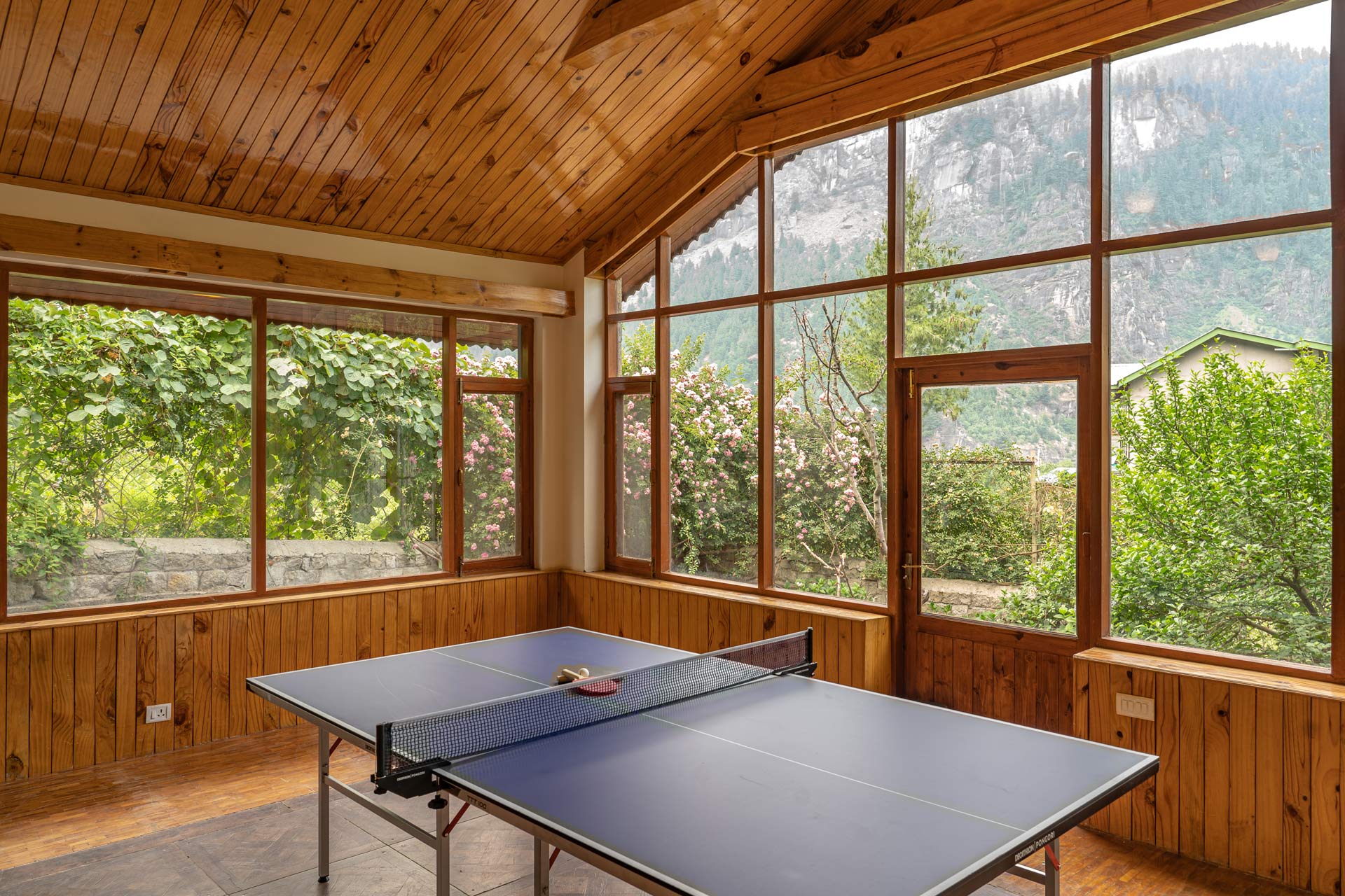 A luxe getaway engulfed in bliss and solace, this holiday home is a nature lover’s paradise. A perfect escape from the mundanity that surrounds every day, within the property, guests can start their day with a leisurely stroll in the green gardens, in the company of sweet birdsong, serving as the perfect soundscape. Enjoy a friendly match of badminton. Gather your loved ones and play indoor games like table tennis. Snuggle with a book to read in the gazebo, amidst the breathtaking mountainscapes.