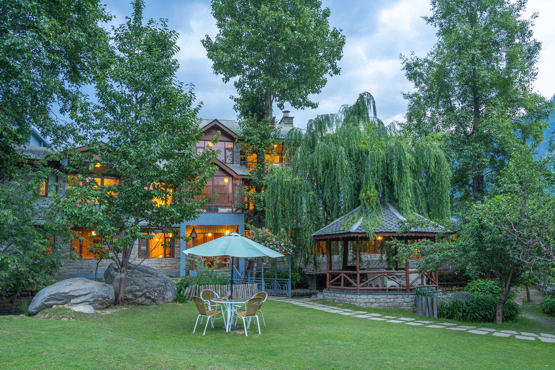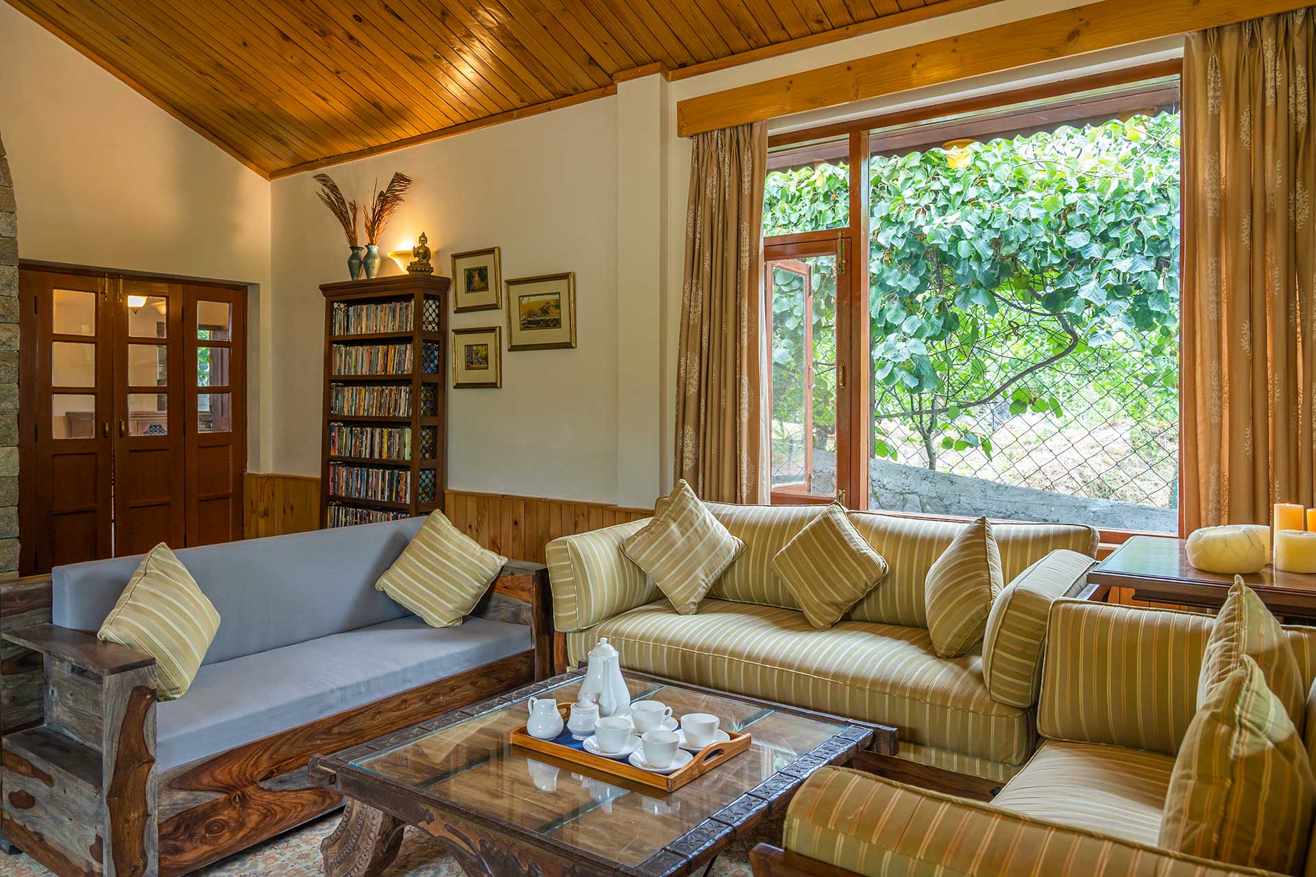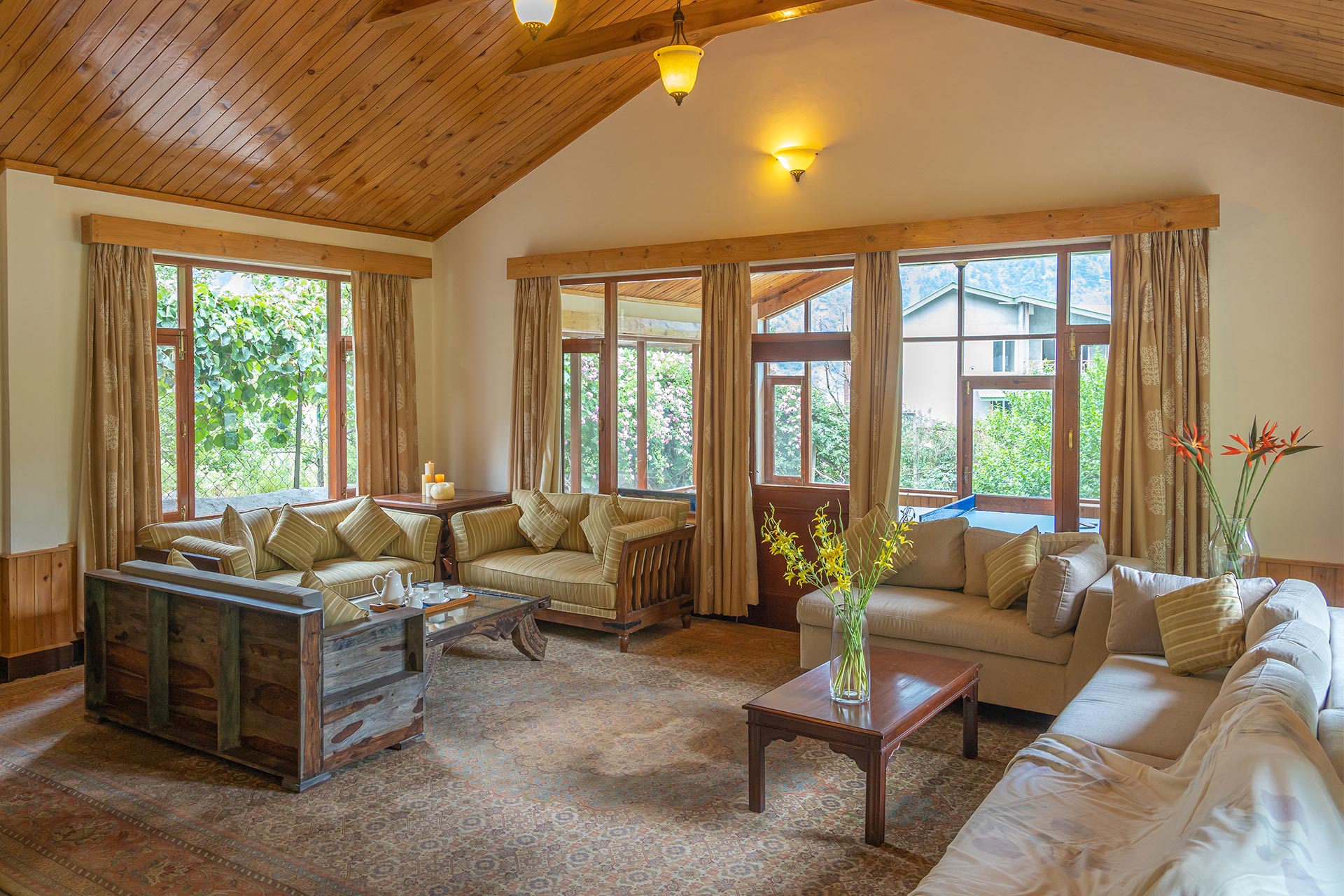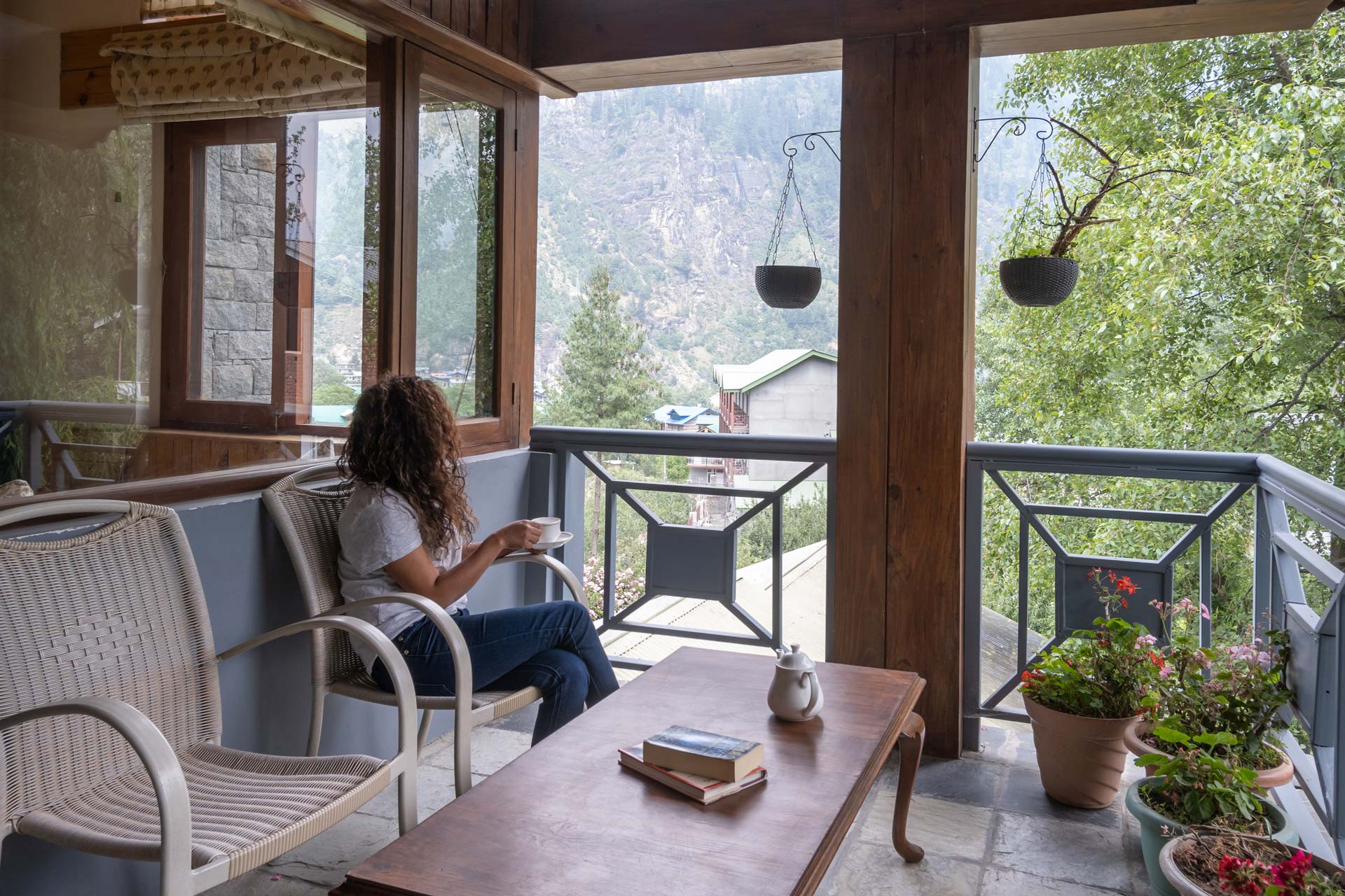 The home’s proximity to gorgeous treks and winding trails is certainly noteworthy, whilst the paragliding pick-up point lies right around the corner, a big draw for adventure enthusiasts. For those who wish to stay in, the enamouring landscapes and the curated selection of reads will keep you ample company. With Old Manali & the Mall road merely 6 kms away, sightseeing will be a breeze. However, the home’s distinct feature is its picturesque sunroom, which offers entrancing views of the soaring peaks, and its awe-inspiring facade that is promised to leave you spell-bound. At The WaterWillow, plunge into an alluring nature escape, swathed in ageless beauty and resplendent views that serve as a tranquil haven.