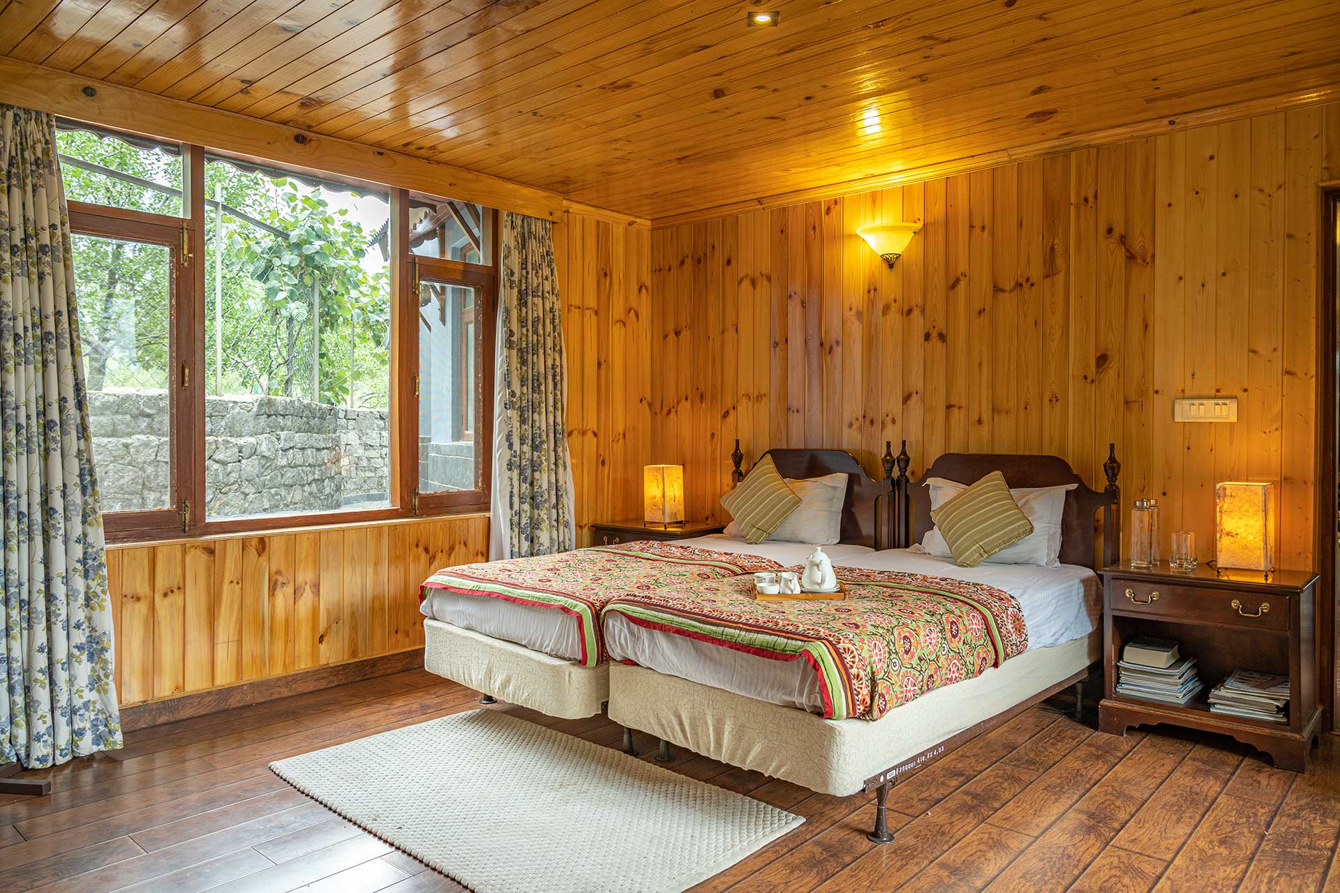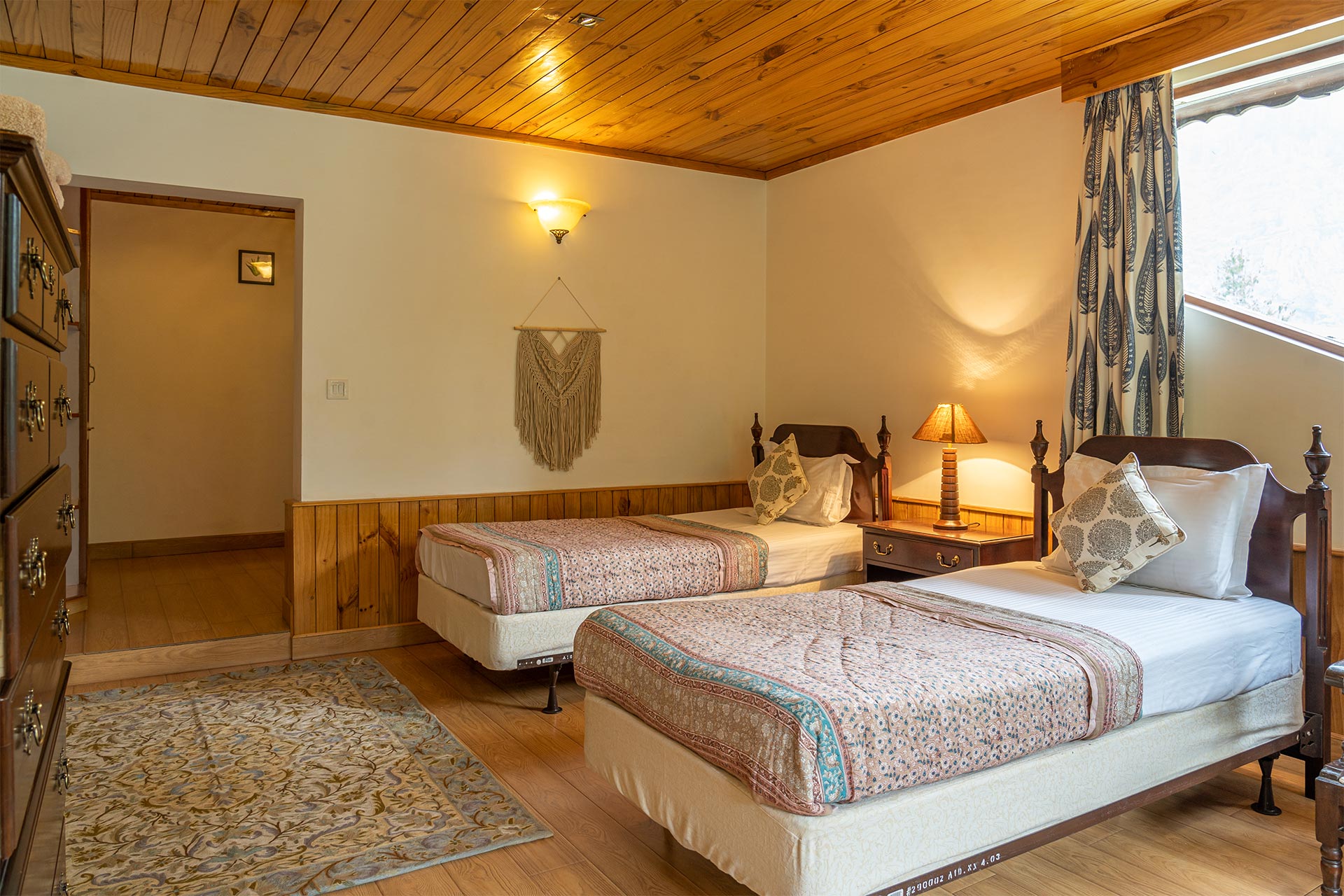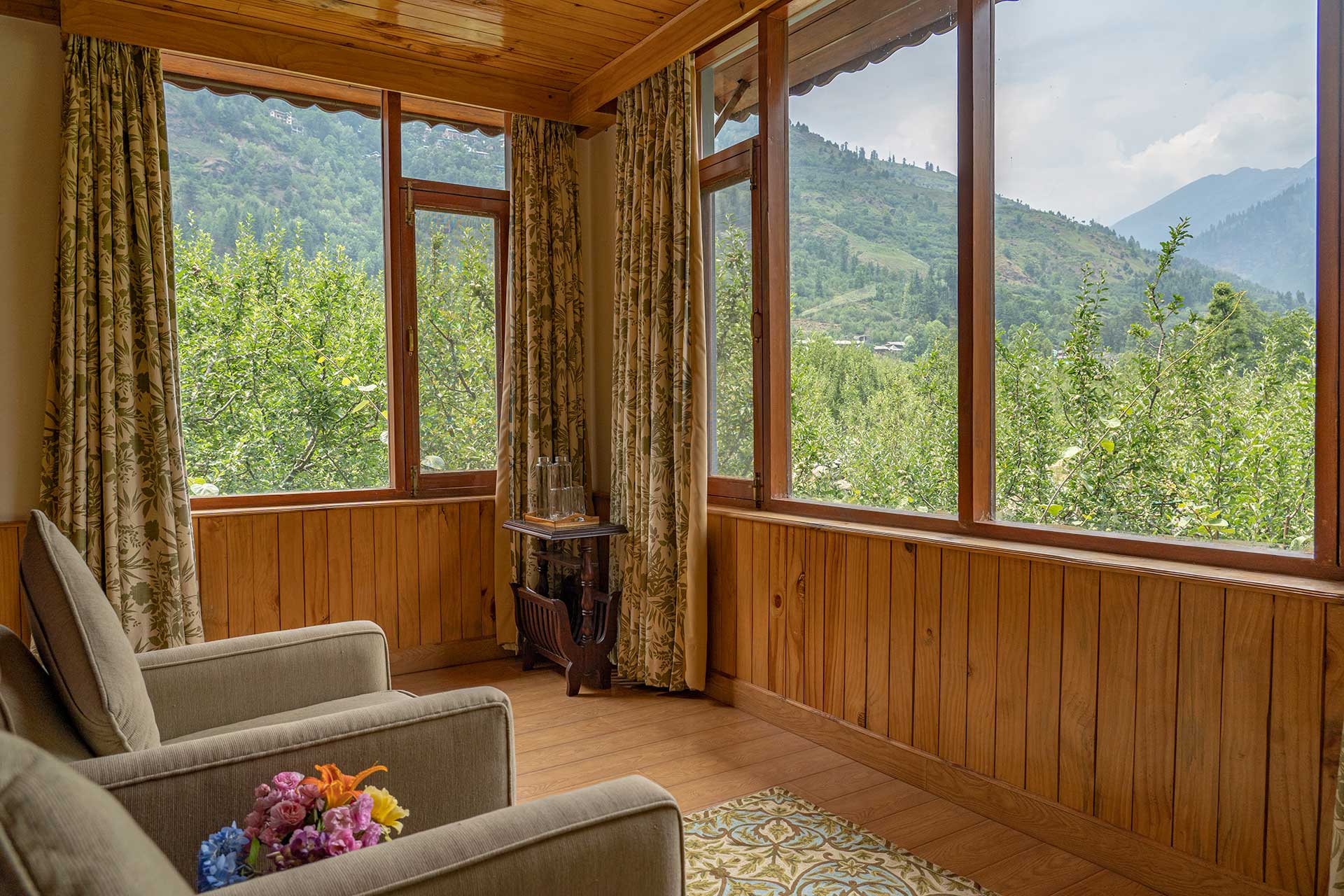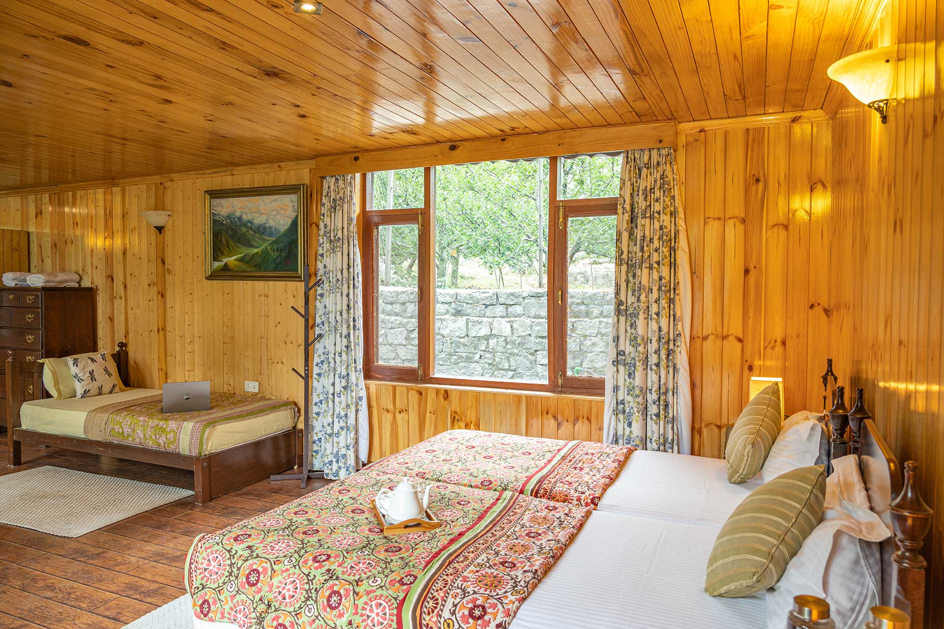 The home’s proximity to gorgeous treks and winding trails is certainly noteworthy, whilst the paragliding pick-up point lies right around the corner, a big draw for adventure enthusiasts. For those who wish to stay in, the enamouring landscapes and the curated selection of reads will keep you ample company. With Old Manali & the Mall road merely 6 kms away, sightseeing will be a breeze. However, the home’s distinct feature is its picturesque sunroom, which offers entrancing views of the soaring peaks, and its awe-inspiring facade that is promised to leave you spell-bound. At The WaterWillow, plunge into an alluring nature escape, swathed in ageless beauty and resplendent views that serve as a tranquil haven.