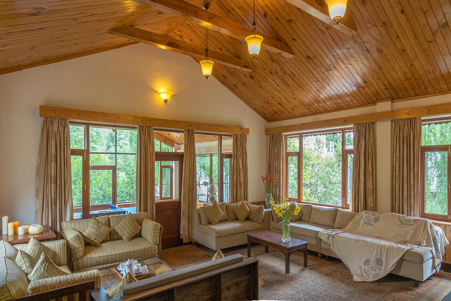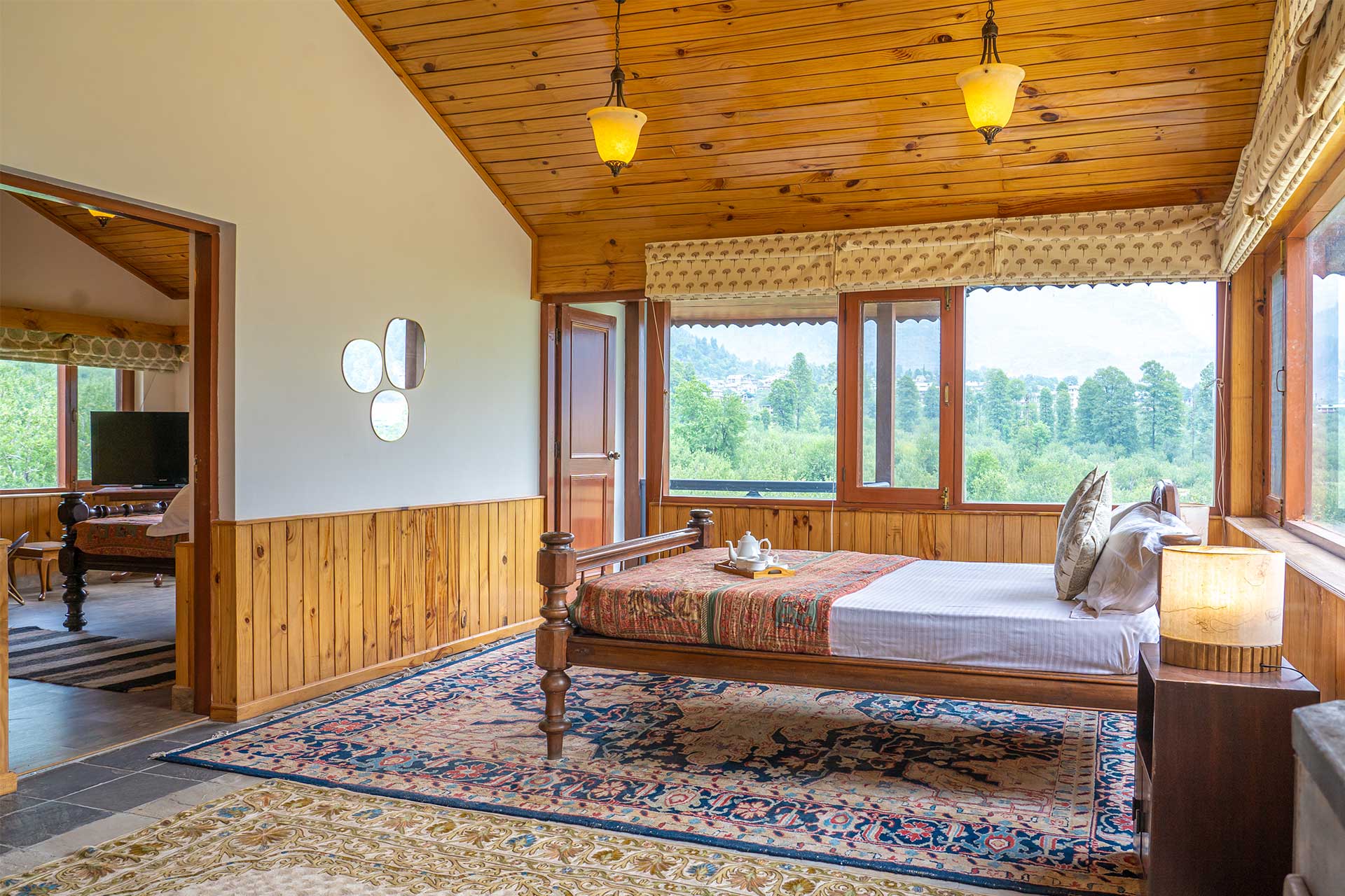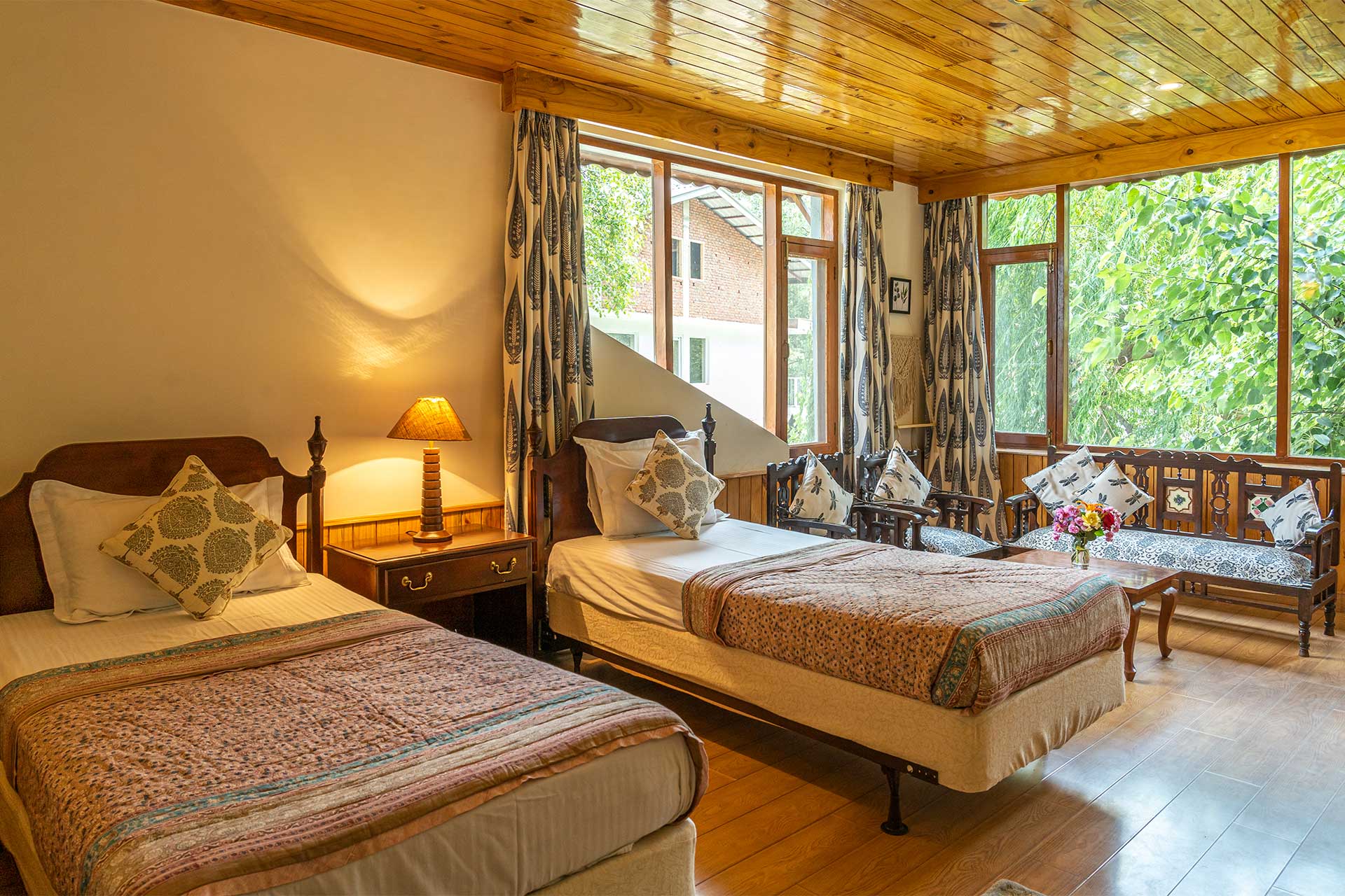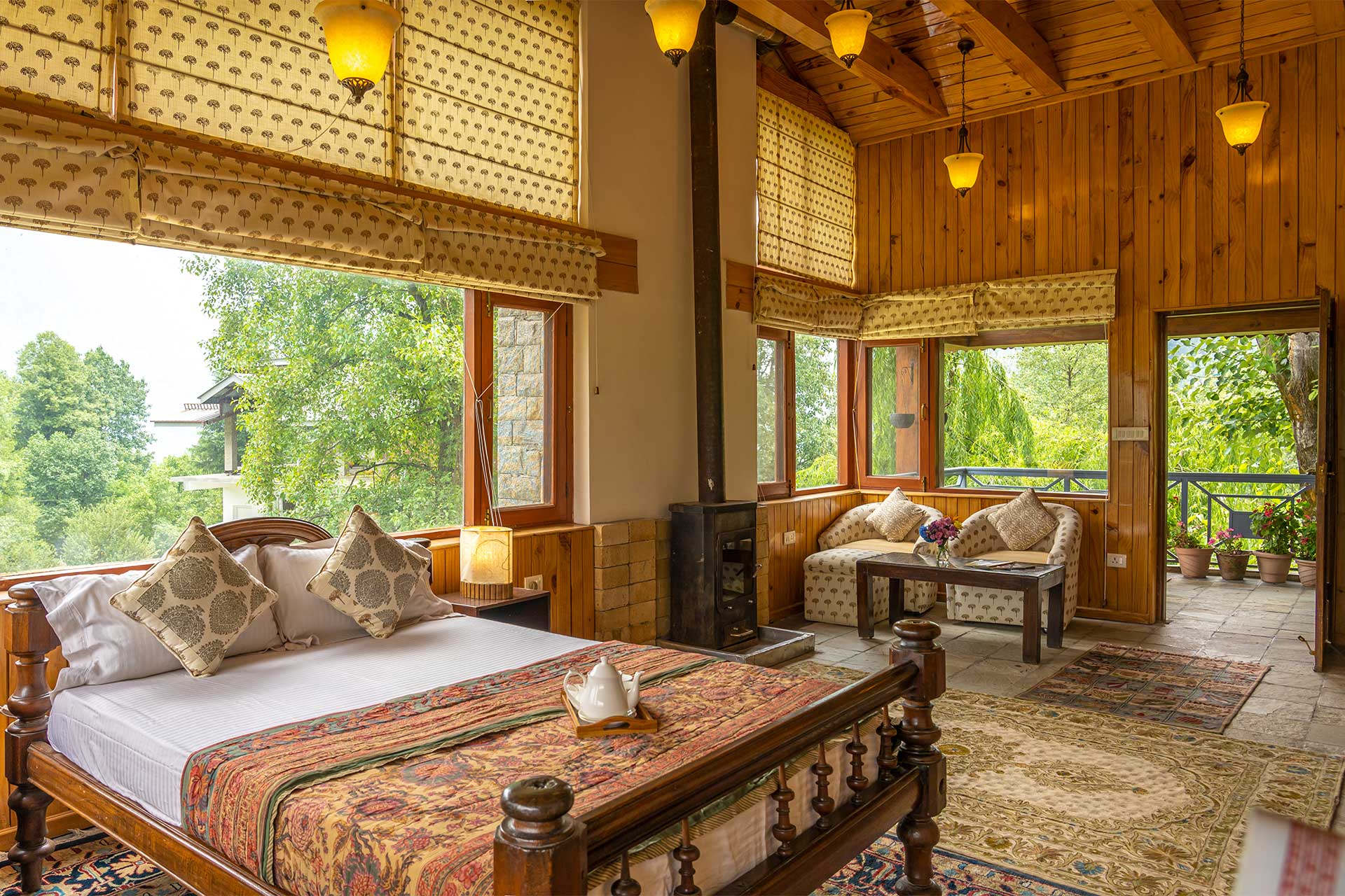 The home’s proximity to gorgeous treks and winding trails is certainly noteworthy, whilst the paragliding pick-up point lies right around the corner, a big draw for adventure enthusiasts. For those who wish to stay in, the enamouring landscapes and the curated selection of reads will keep you ample company. With Old Manali & the Mall road merely 6 kms away, sightseeing will be a breeze. However, the home’s distinct feature is its picturesque sunroom, which offers entrancing views of the soaring peaks, and its awe-inspiring facade that is promised to leave you spell-bound. At The WaterWillow, plunge into an alluring nature escape, swathed in ageless beauty and resplendent views that serve as a tranquil haven.