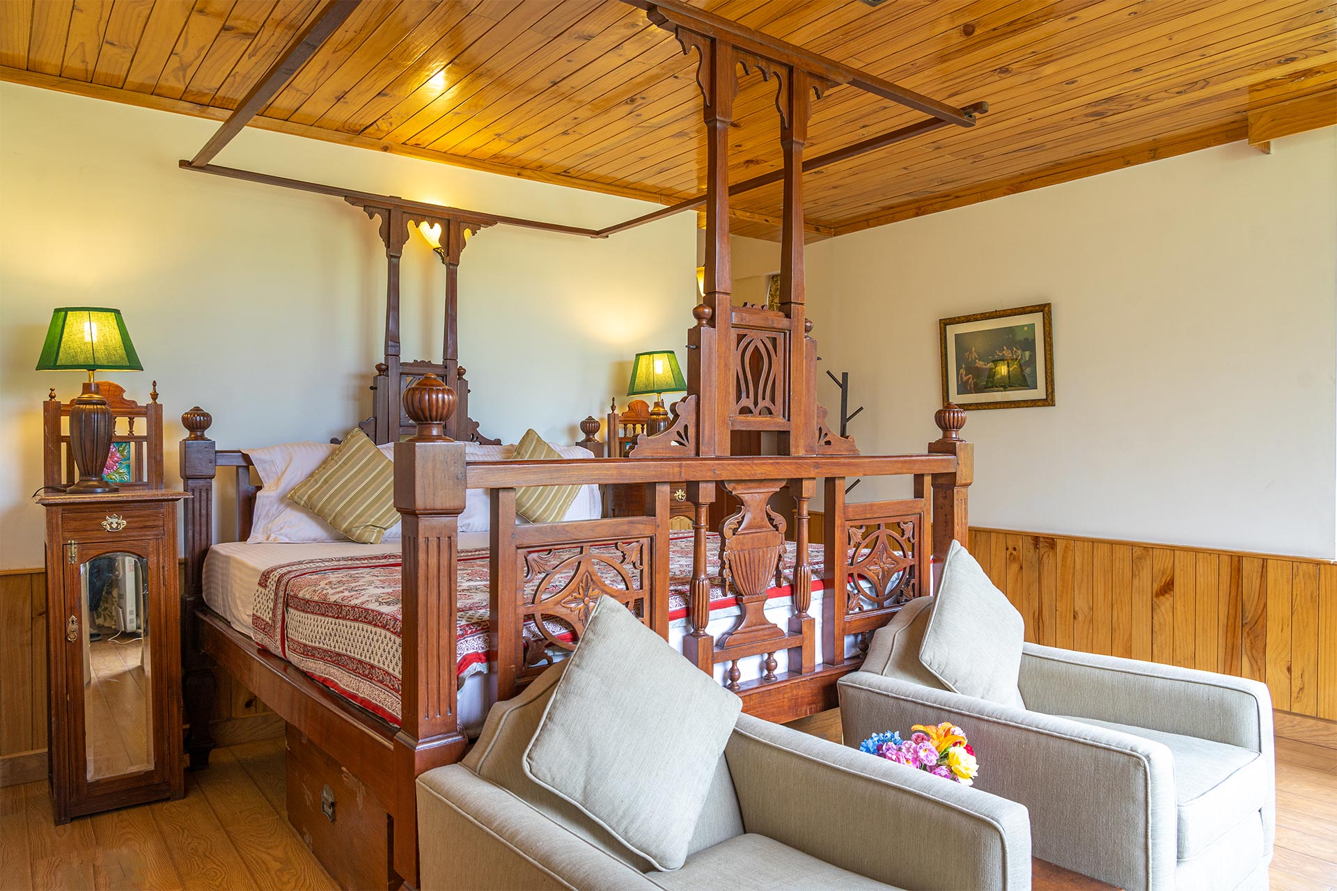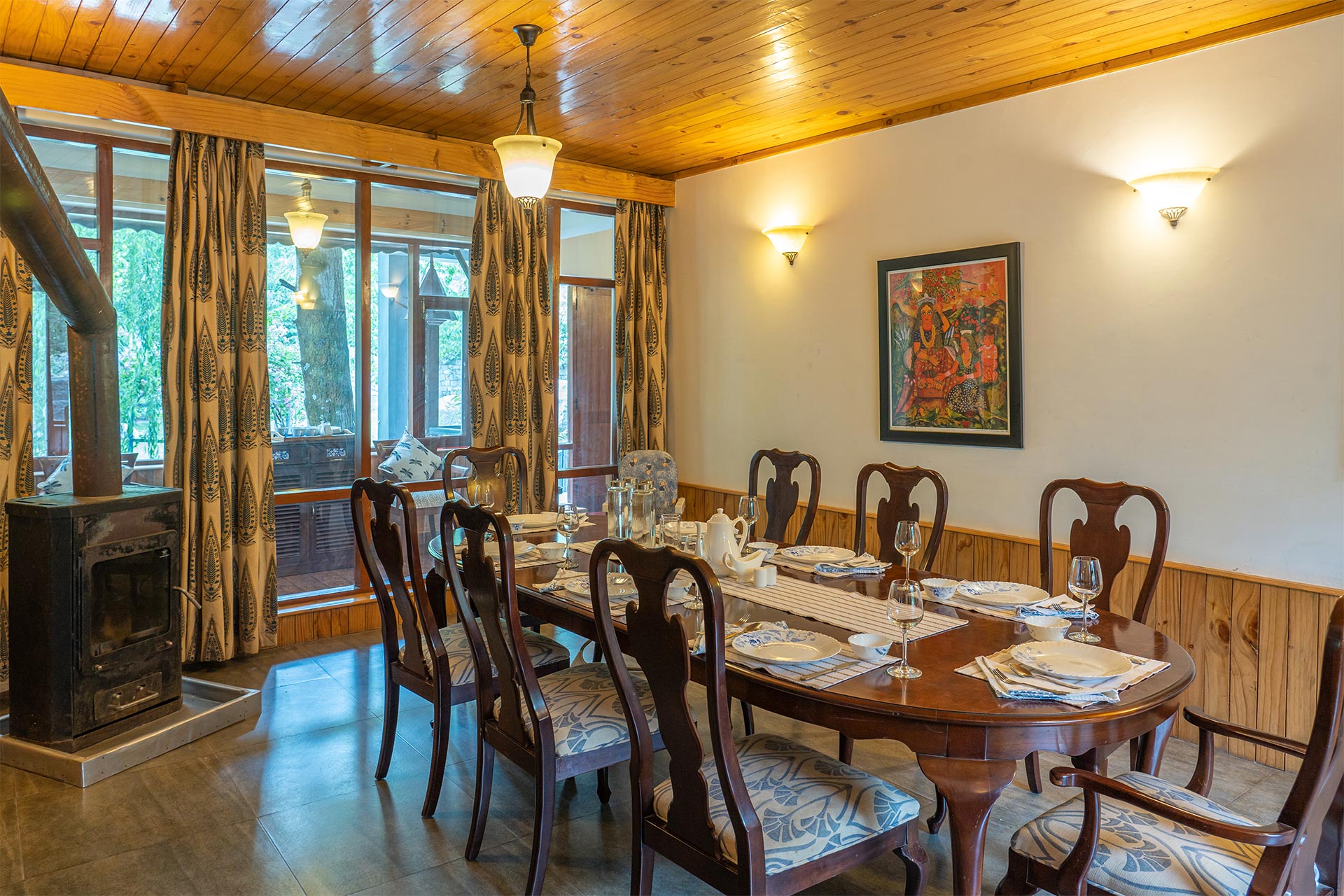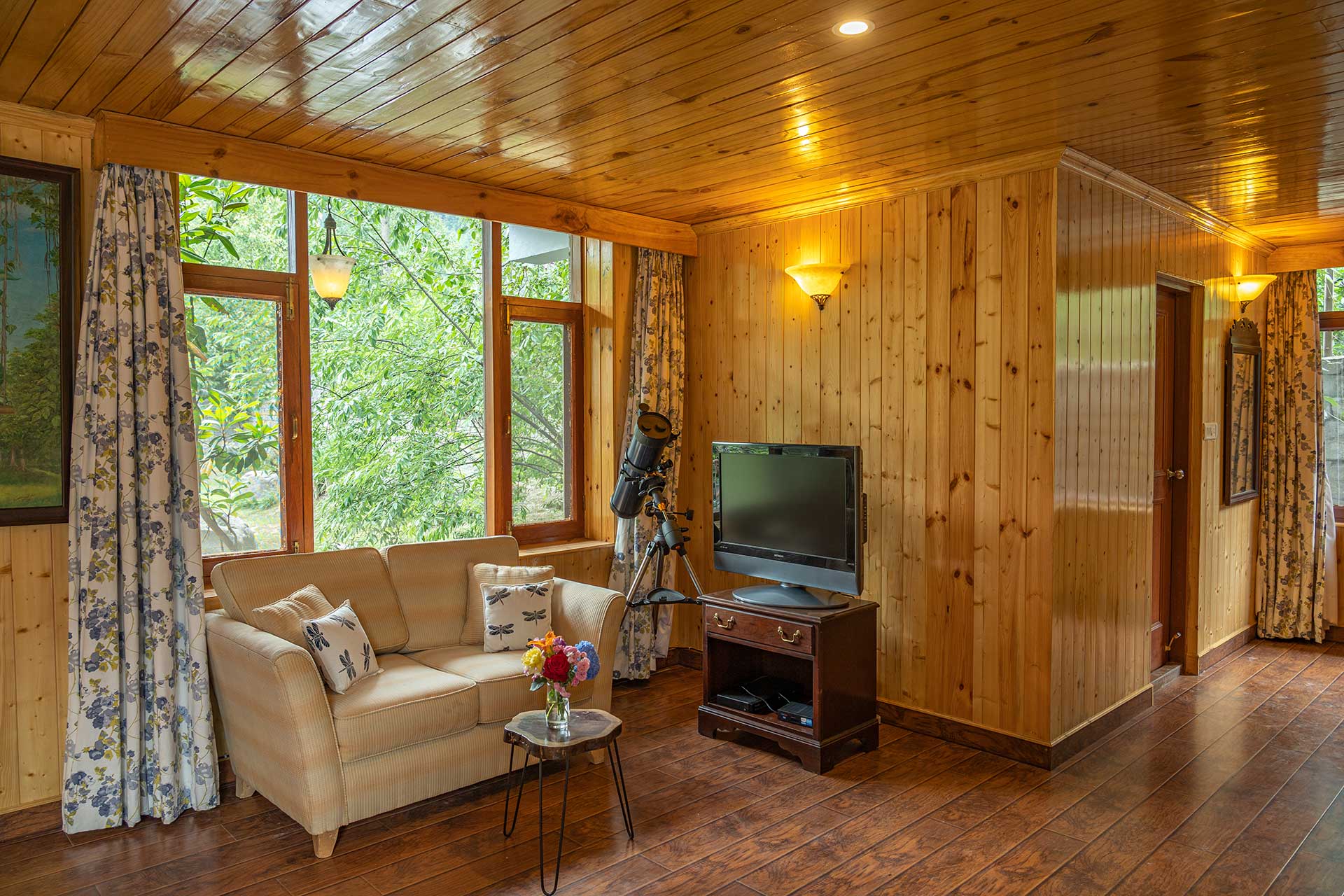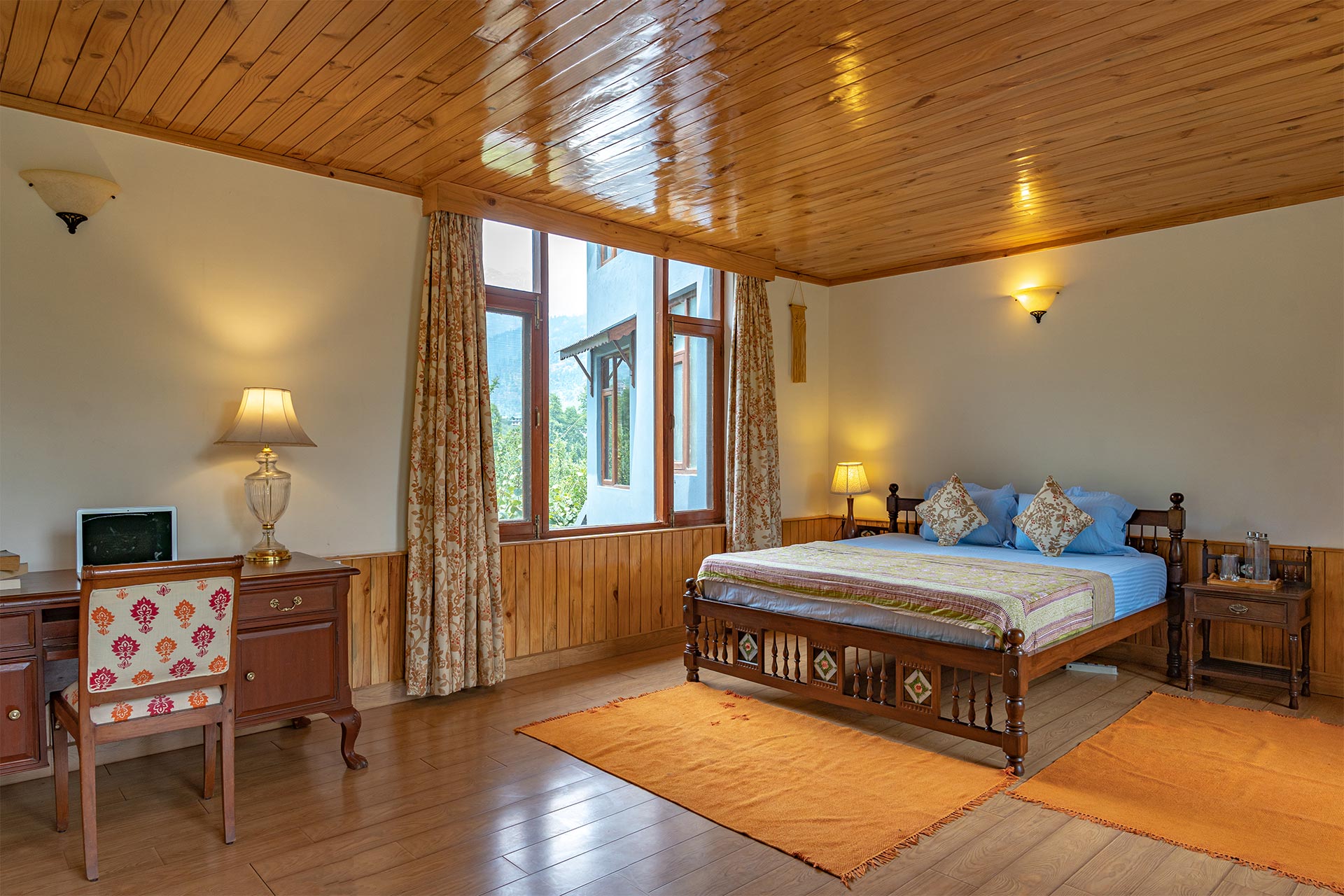 The home’s proximity to gorgeous treks and winding trails is certainly noteworthy, whilst the paragliding pick-up point lies right around the corner, a big draw for adventure enthusiasts. For those who wish to stay in, the enamouring landscapes and the curated selection of reads will keep you ample company. With Old Manali & the Mall road merely 6 kms away, sightseeing will be a breeze. However, the home’s distinct feature is its picturesque sunroom, which offers entrancing views of the soaring peaks, and its awe-inspiring facade that is promised to leave you spell-bound. At The WaterWillow, plunge into an alluring nature escape, swathed in ageless beauty and resplendent views that serve as a tranquil haven.