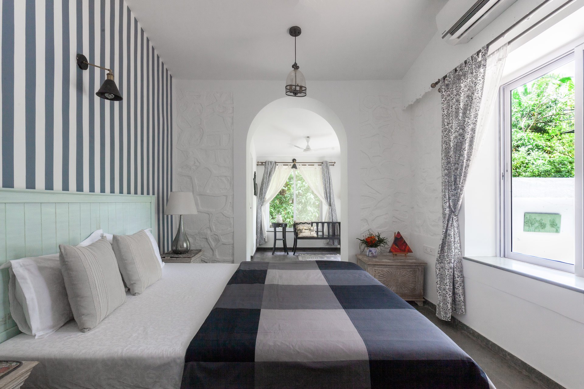 Embraced by the lush woodlands of Alibaug, Vanya Farms is an escape into an old world charm where every moment spent is rejuvenating. This 3-bedroom villa in Alibaug is decorated with vintage aesthetics along with a hint of timeless amenities that makes every morning delightful. The enchanting forest that hugs the villa must be explored as it provides a break from the hustle and bustle of life. One can even take a blissful swing in the hammock on the verandah. Living in the villa is a rustic experience in itself with its closely woven interiors that are designed to provide warmth and comfort.
