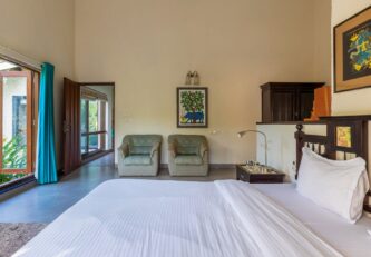 Nestled in unending expanses of green verdancy and foliage, Villa Amaaya is a spacious holiday home in the coastal town of Alibaug. Approximately 5 km. away from Kihim beach, this villa has everything you would need for a sun-kissed getaway, be it the huge oval-shaped swimming pool or the vast, beautiful lawns complete with cane chairs. Whilst, the spacious indoor spaces serve as the ideal sanctuary after a day spent outdoors. Retire in the comfortable bedrooms boasting modern furnishings, lounge in the drawing-room and take home a bag of memories!