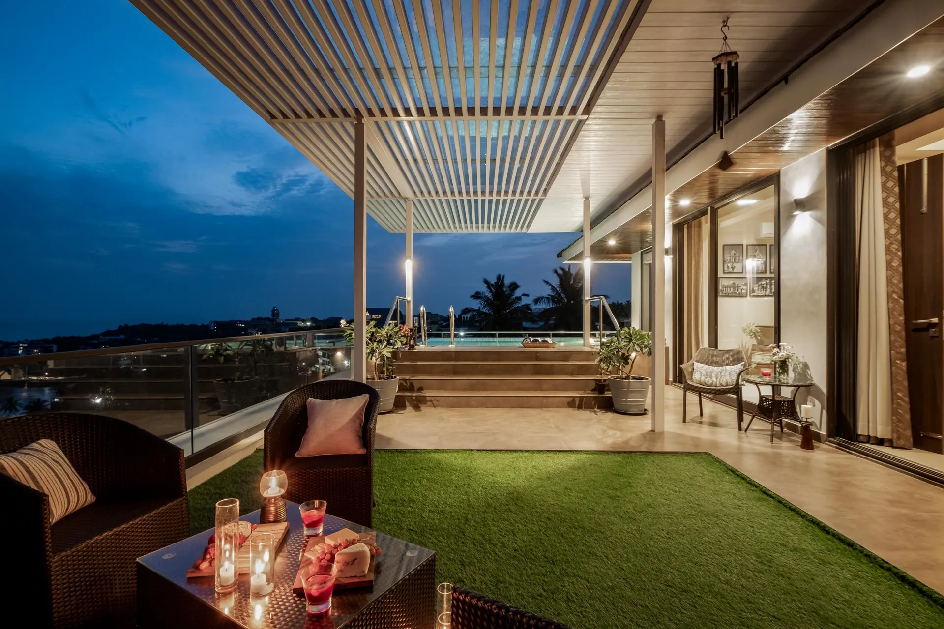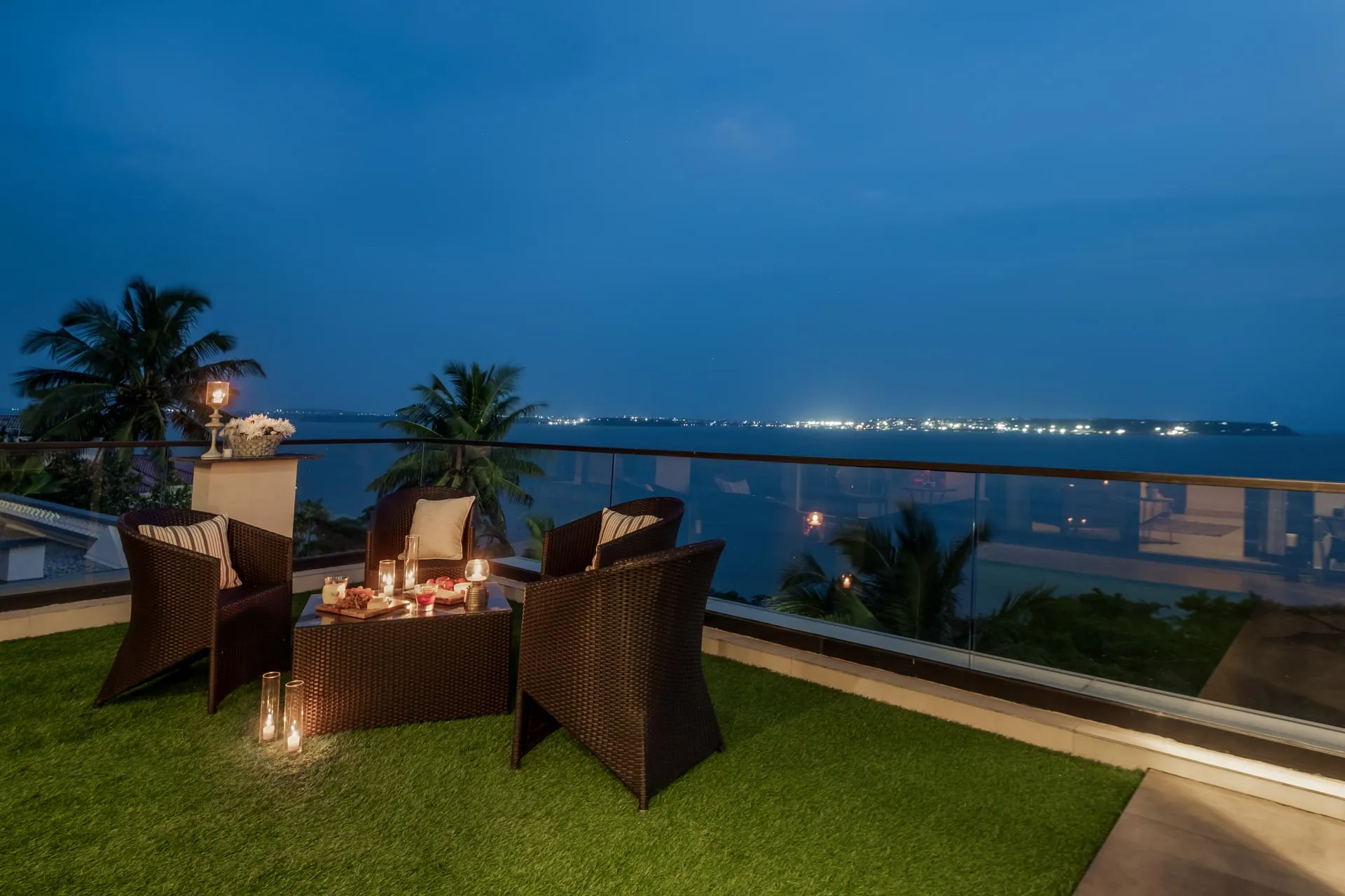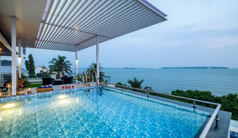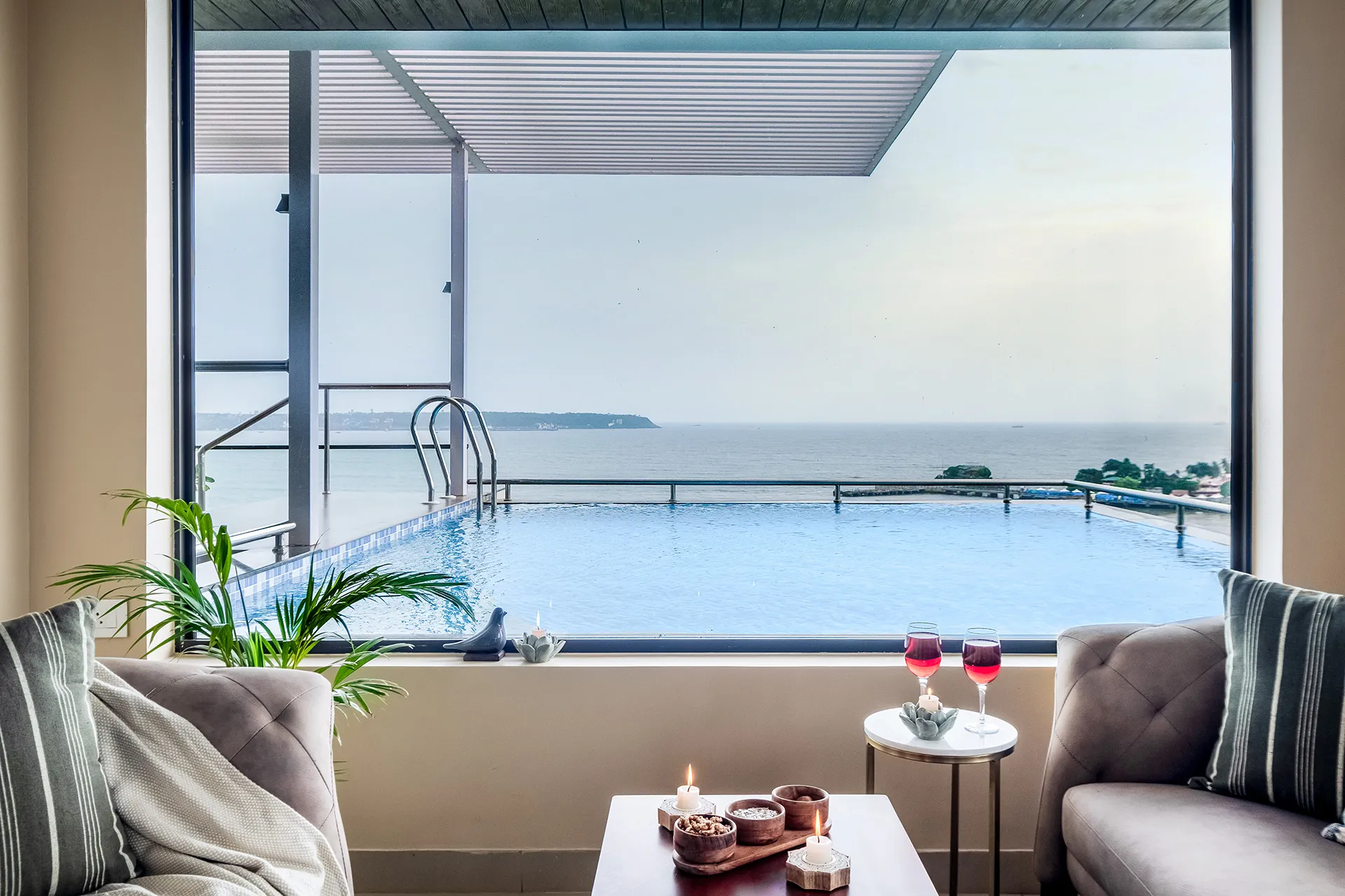 A rooftop pool with breathtaking views of the sea. Need we say more? Overlooking the vast Arabian Sea, Villa Solace is a modern four-bedroom home offering world-class amenities and  warm hospitality. The chic living and dining area is the perfect place to spend quality time with loved ones and devour freshly prepared meals. Make the most of the balmy, tropical breeze as you unwind on the balcony. Take the elevator up to the roof where you can jump straight into your private pool or simply sit back and sip on a refreshing cooler. As the sun sets, watch the sky put on a dramatic display of hues before giving way to twinkling lights and stars.