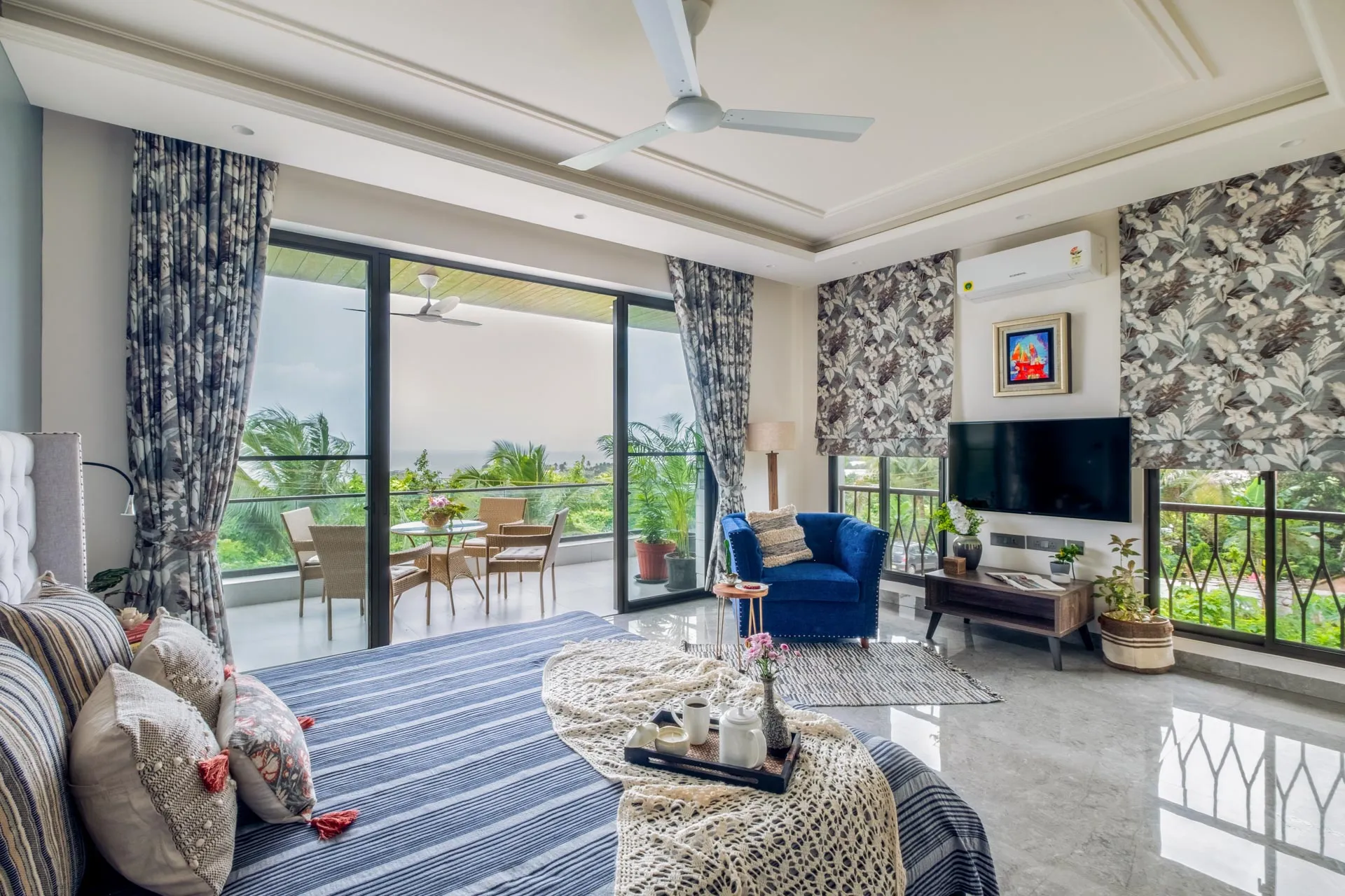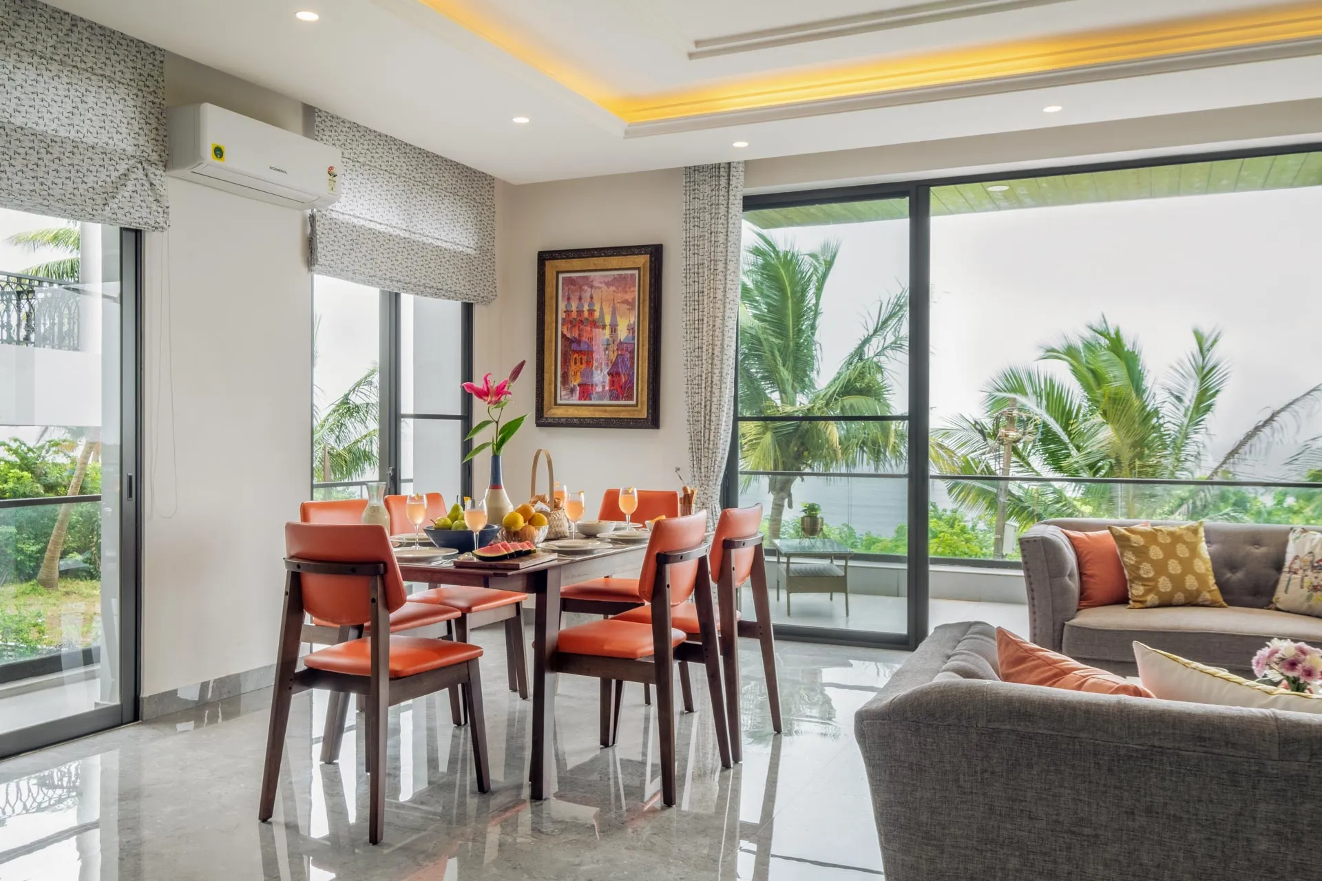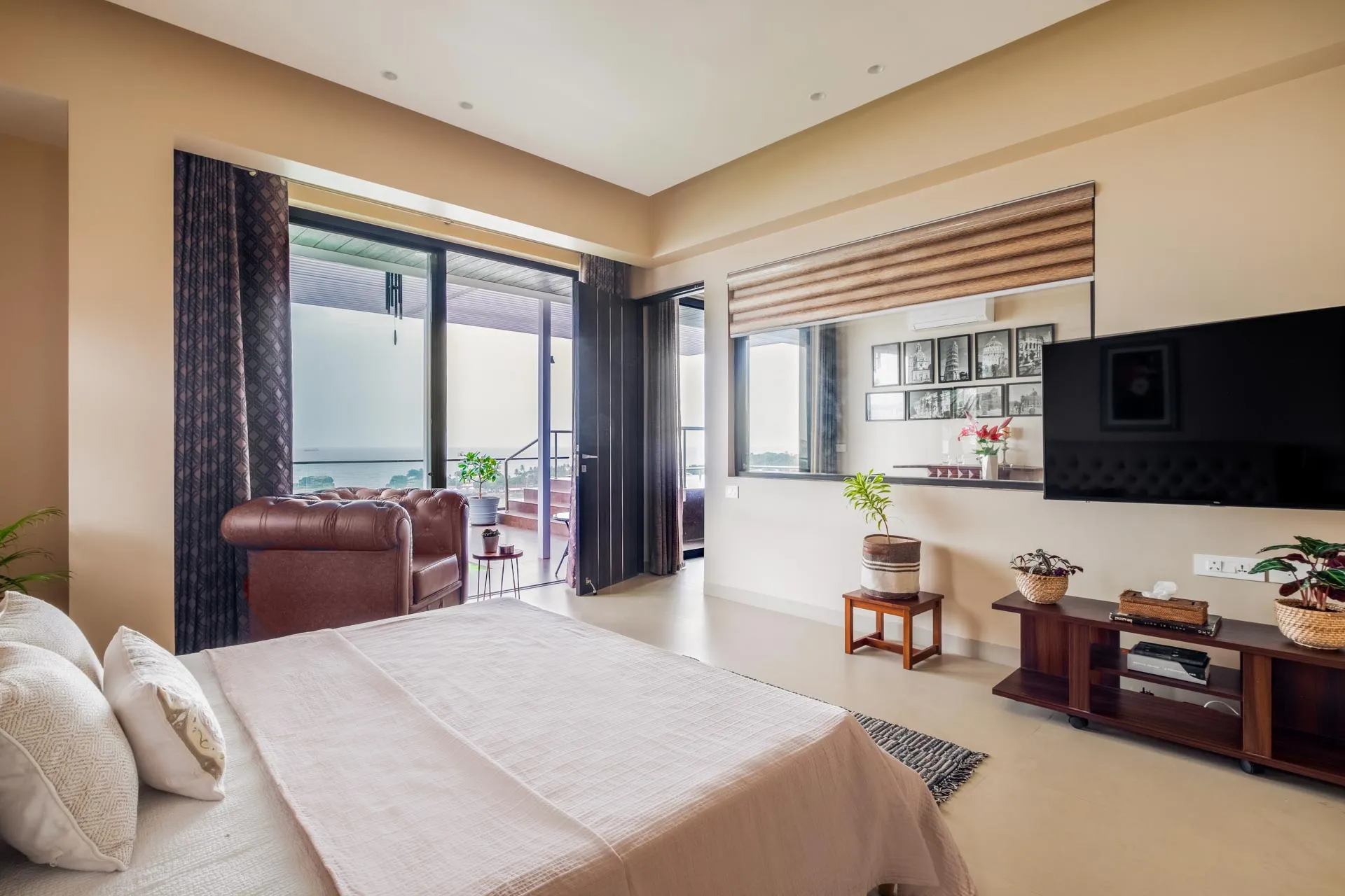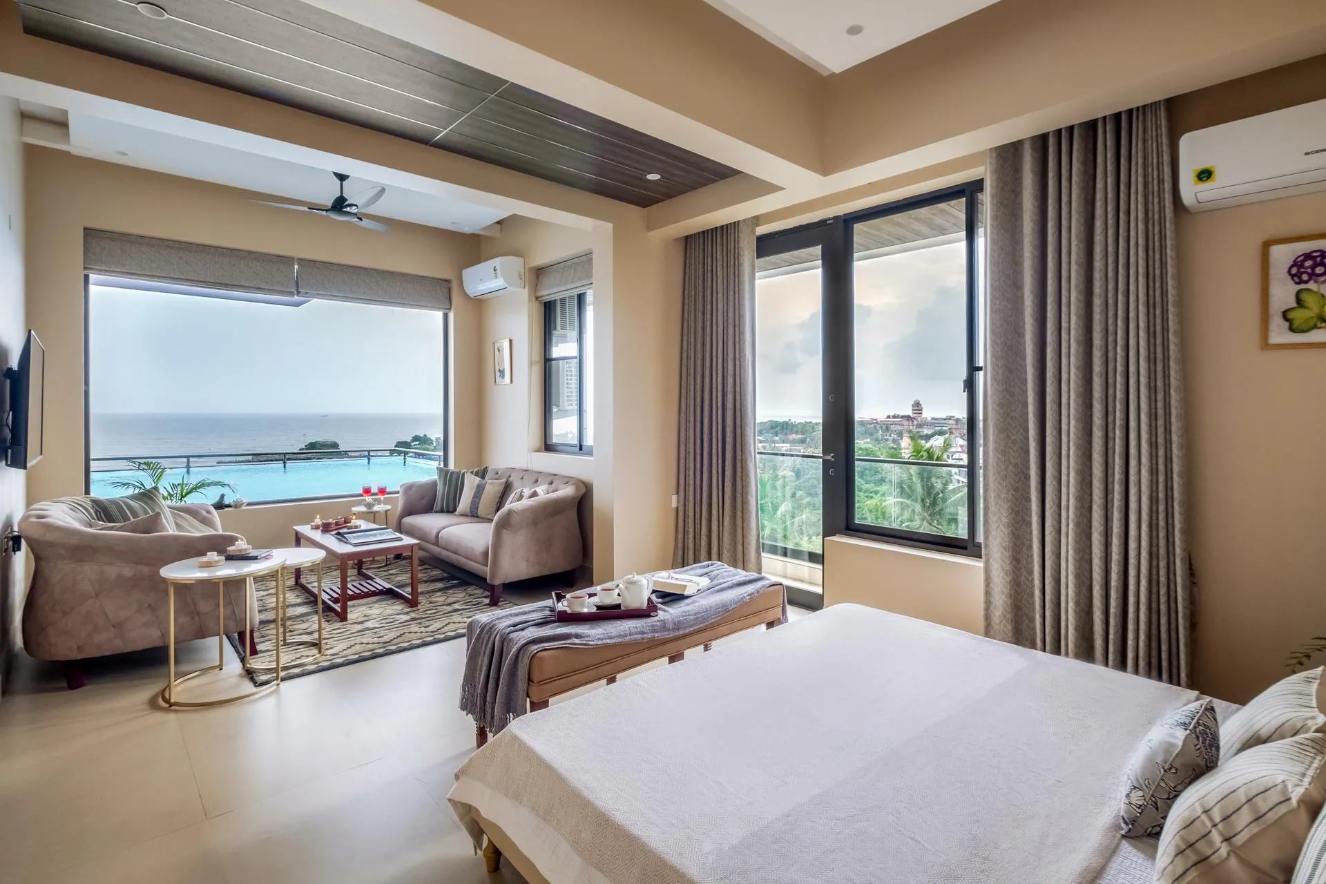 A rooftop pool with breathtaking views of the sea. Need we say more? Overlooking the vast Arabian Sea, Villa Solace is a modern four-bedroom home offering world-class amenities and  warm hospitality. The chic living and dining area is the perfect place to spend quality time with loved ones and devour freshly prepared meals. Make the most of the balmy, tropical breeze as you unwind on the balcony. Take the elevator up to the roof where you can jump straight into your private pool or simply sit back and sip on a refreshing cooler. As the sun sets, watch the sky put on a dramatic display of hues before giving way to twinkling lights and stars.