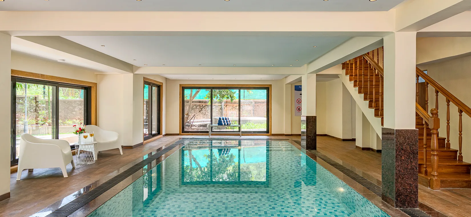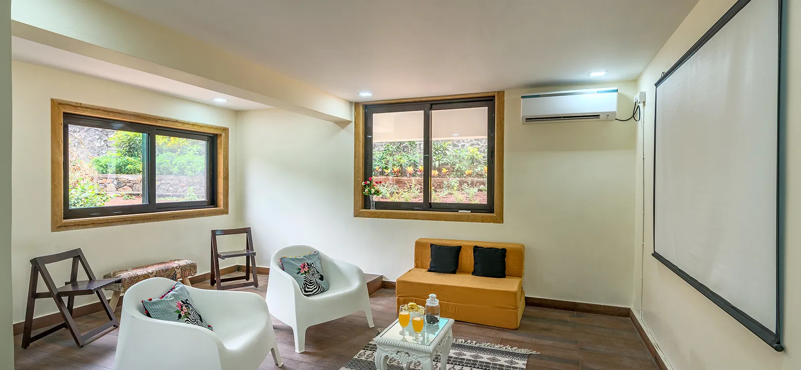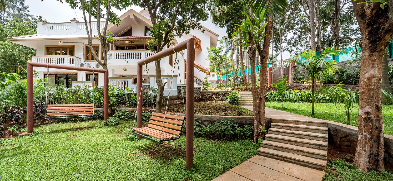 Pet friendly villa in khandala with a temperature controlled indoor pool, spacious lawns, gazebo and a large terrace. Tastefully designed with artistic interiors. Farm to table experience with home cooked gourmet meals & BBQ on the lawns. Swing chairs and cozy nooks and corners for some “me time”