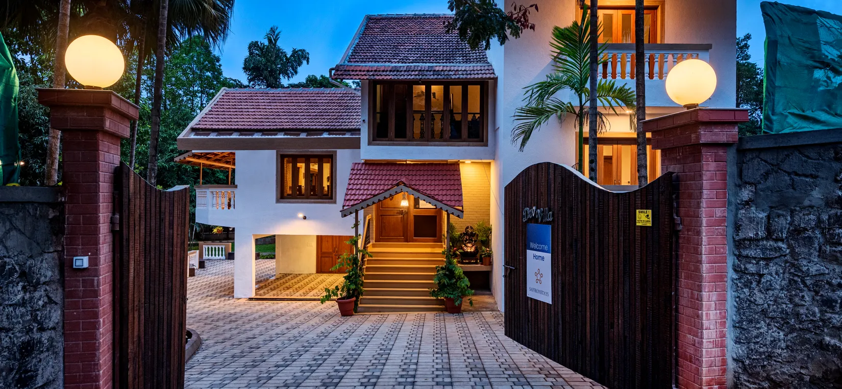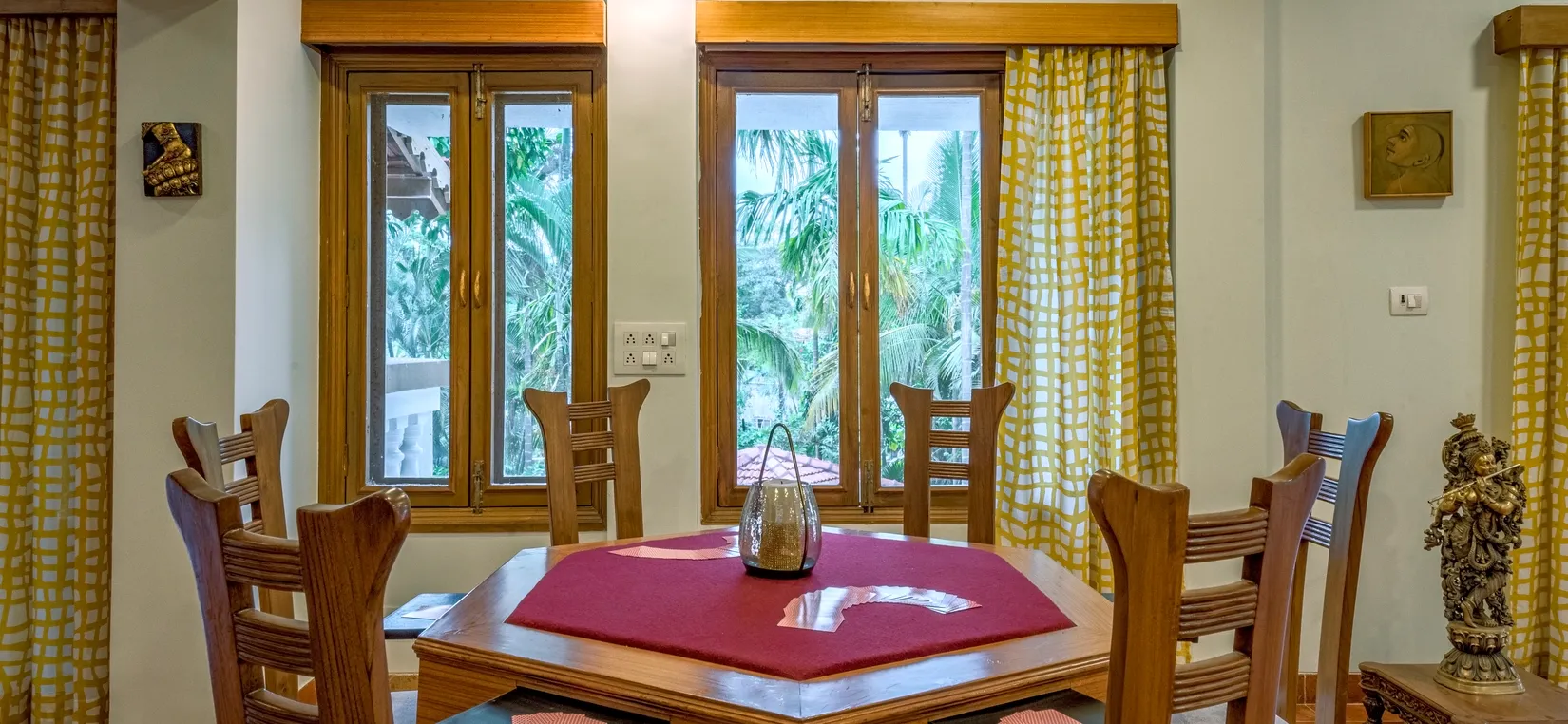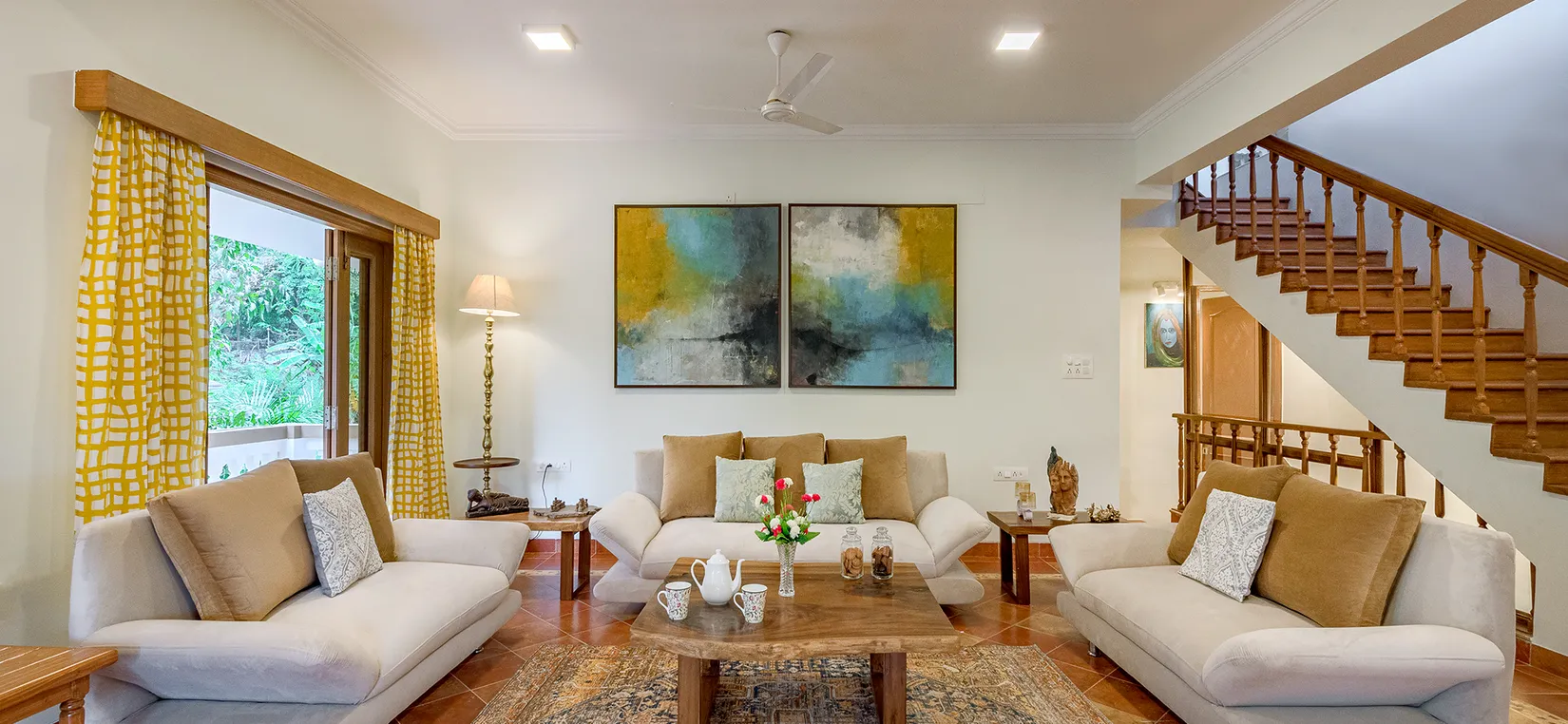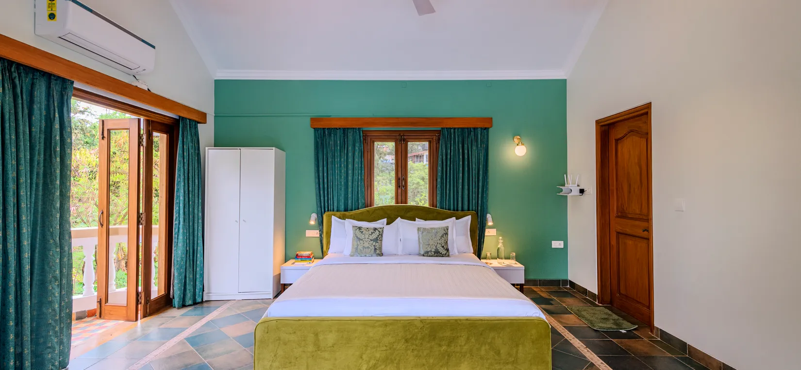 - This luxurious vacation villa is tastefully designed with artistic interiors and contemporary French windows aligning with the walls. The villa overlooks the surrounding greenery and mango trees that are planted on the estate.