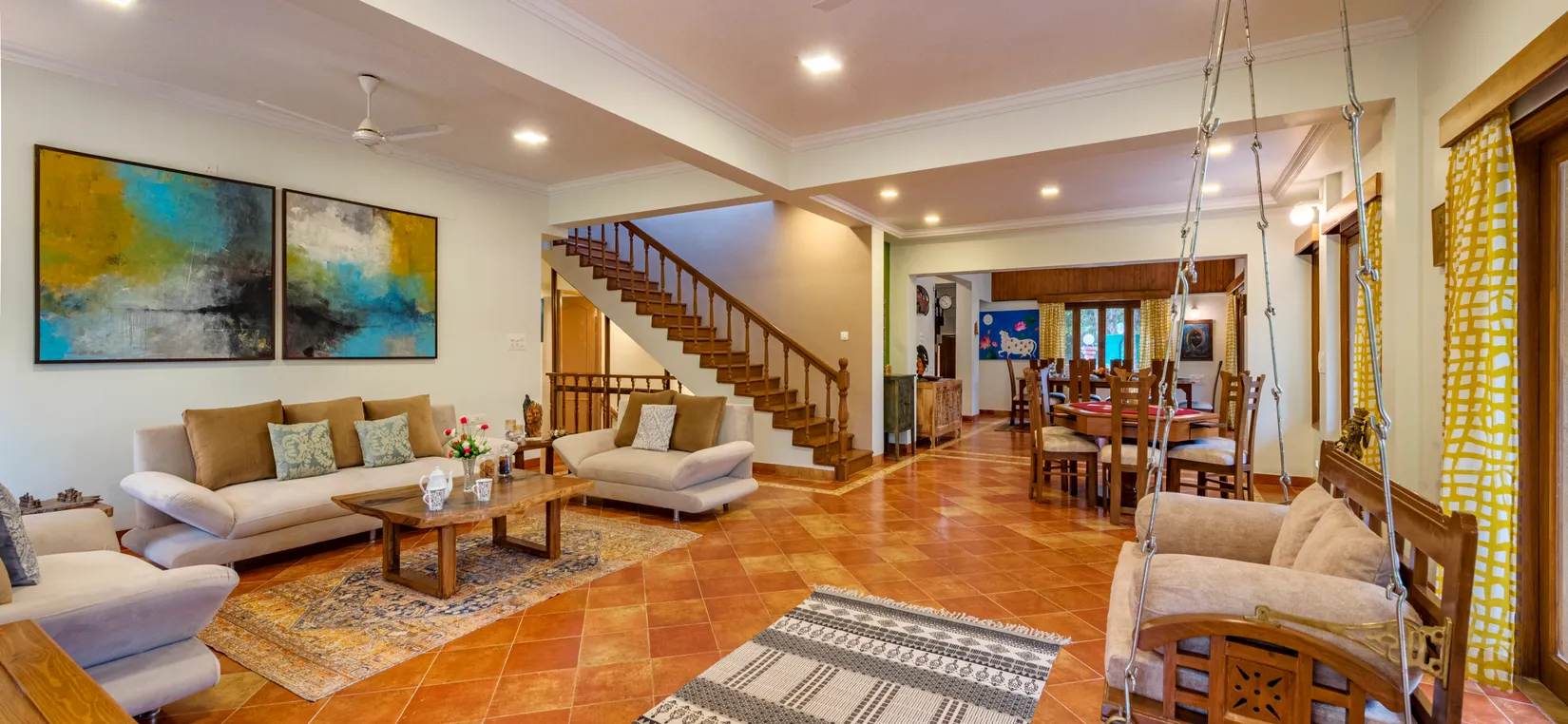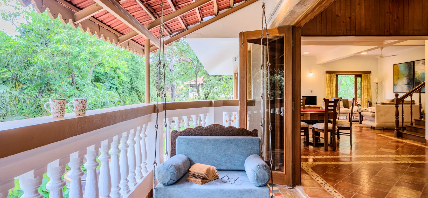 - Missing some me-time? Grab a book of your choice from the cosy reading corner and curl up in one of the swing chairs at every nook and corner of the property!